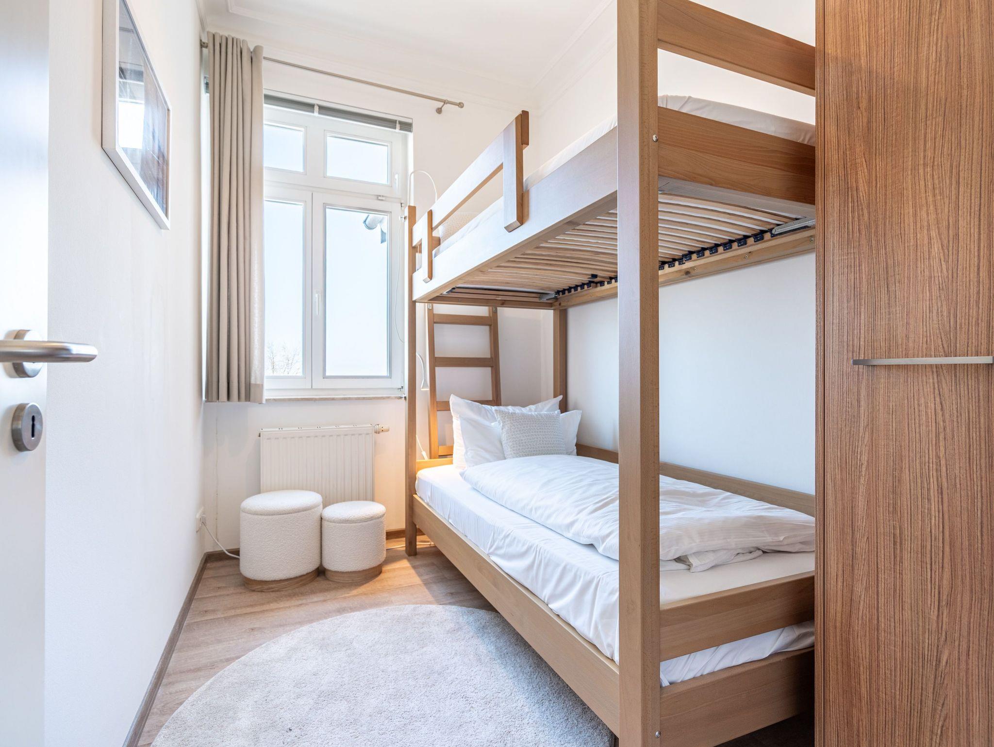 Die 3-Raum-Ferienwohnung Nr. C12 in der Villa Seedüwel bietet auf 52 qm Platz für 2 bis 4 Personen und befindet sich im 2. Obergeschoss. Der offene Wohnbereich besticht durch einen traumhaften Blick auf die Seebrücke und die Ostsee. Hier finden Sie eine gut ausgestattete Küchenzeile mit einem Induktionskochfeld, einer Mikrowelle und einem Kühlschrank mit Gefrierfach sowie einen Essplatz für vier Personen, eine gemütliche Sitzgruppe und einen Flat-TV. Das erste Schlafzimmer verfügt über ein komfortables Doppelbett (1,80 m x 2,00 m) und einen Kleiderschrank. Von hier aus gelangen Sie auf den kleinen Nord-Ost-Balkon, der einen schönen Blick auf die Ostsee bietet. Das zweite Schlafzimmer ist mit einem Etagenbett (0,90 m x 2,00 m) ausgestattet. Das innenliegende Bad umfasst eine Dusche und ein Waschbecken, zudem gibt es ein separates WC. Ein Stellplatz in der Tiefgarage ( Einfahrthöhe 2,03m) des benachbarten Hauses „Strandterrasse“ ist für Sie reserviert. WLAN steht Ihnen kostenfrei zur Verfügung.