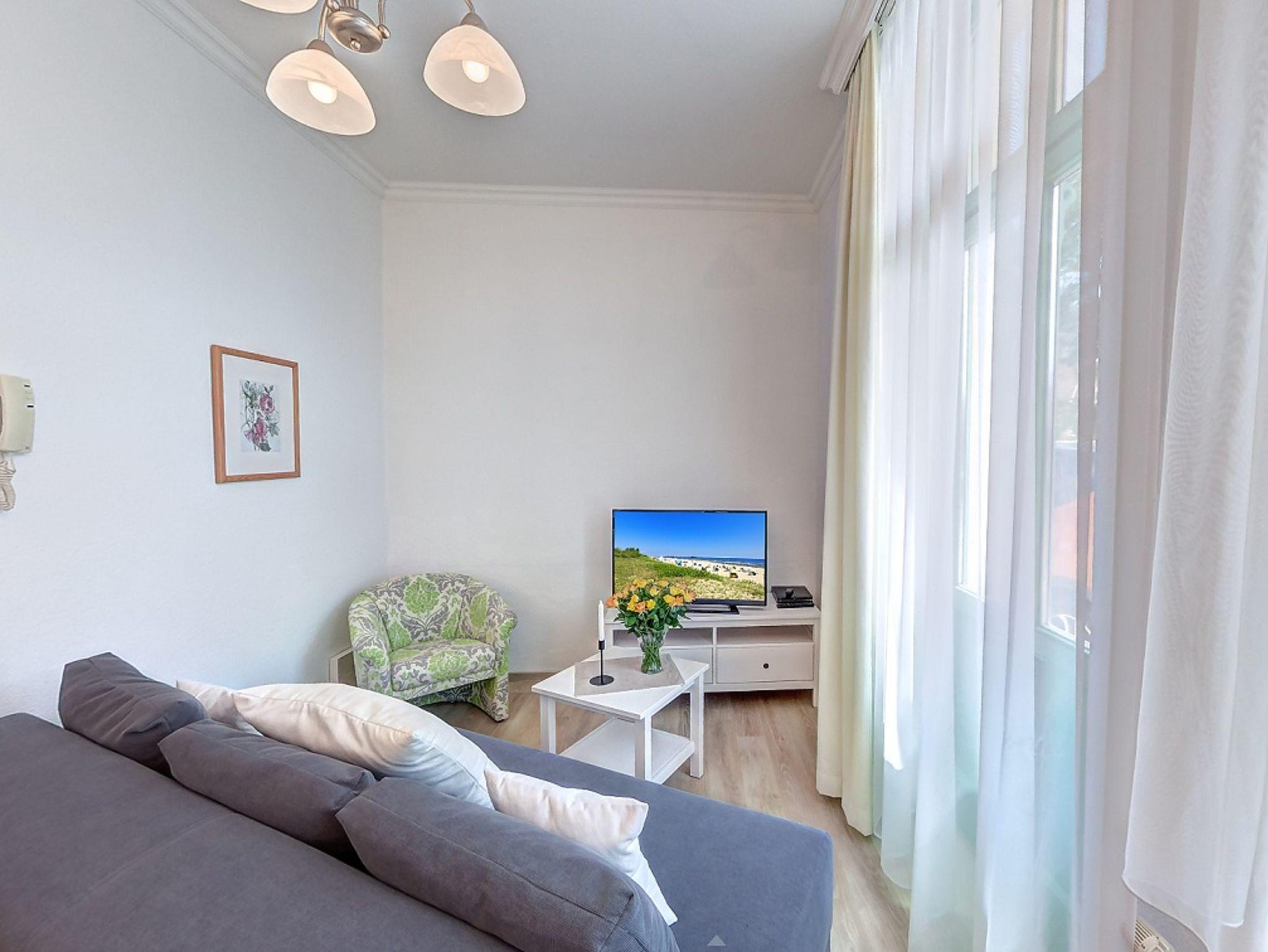 STRANDNAH! Nur ca. 100 m zur Strandpromenade mit TERRASSE und KLEINEM GARTEN! Schönes 2-Zimmer-Apartment mit gemütlicher Ausstattung. Separates Schlafzimmer, Wohnzimmer mit zus. Schlafcouch, separate Küche mit Essplatz, geräumiges Duschbad, kleiner Vorflur, Terrasse mit Gartenmöbeln und 2 Ruheliegen, separater Eingang. Küche zusätzlich mit Minibackofen, Wasserkocher, Eierkocher und Mixer. W-LAN-DSL (kostenpflichtig. Die Wohnung verfügt über einen Pkw-Stellplatz . Abstellraum für Fahrräder und ähnliches ist vorhanden. Eine Sauna in der Villa Germania kann kostenpflichtig genutzt werden. Vom Haus aus können Sie das Ortszentrum und die bekannte Ahlbecker Seebrücke in ca. 3 bzw. 5 Minuten zu Fuß erreichen.