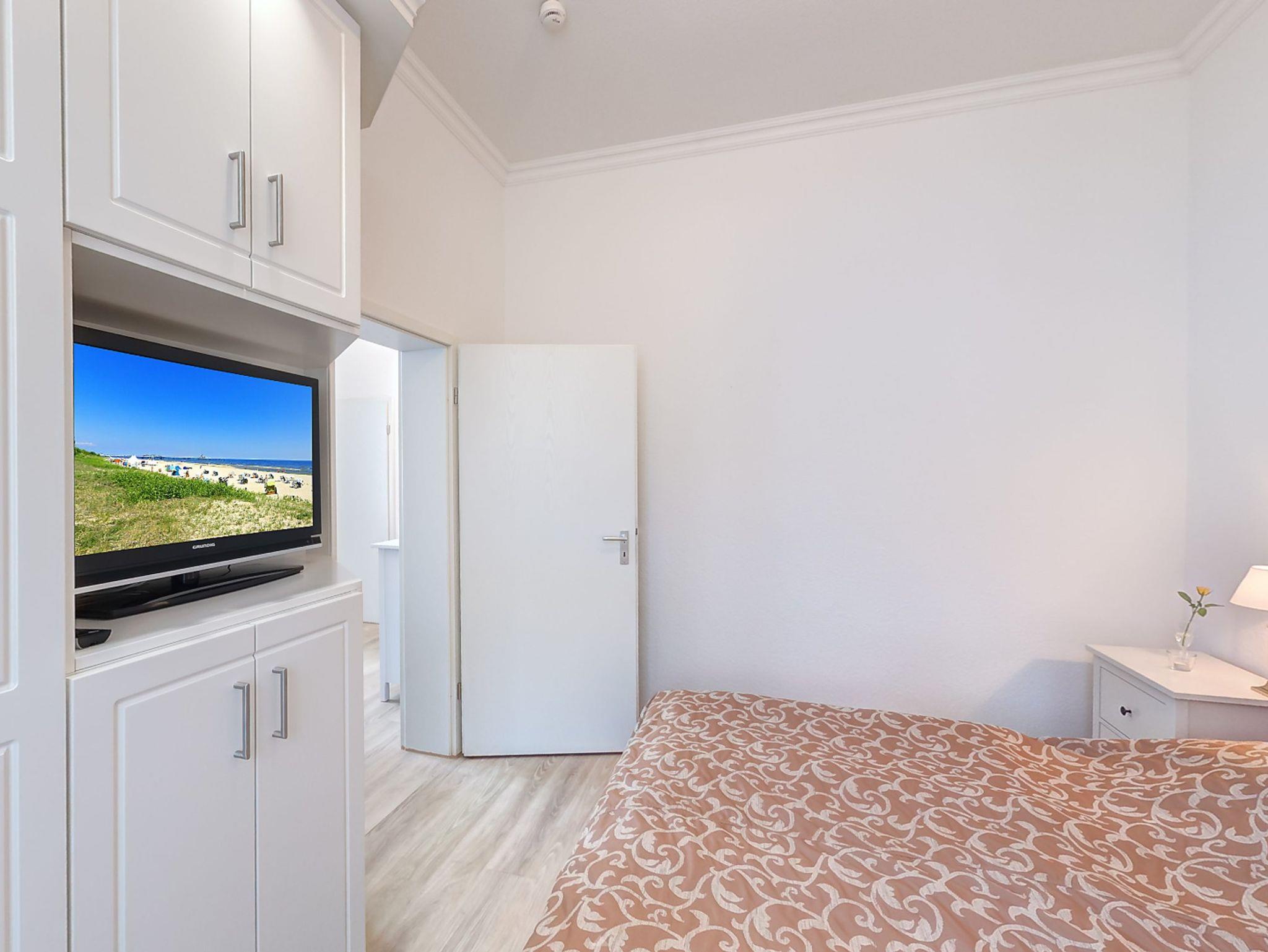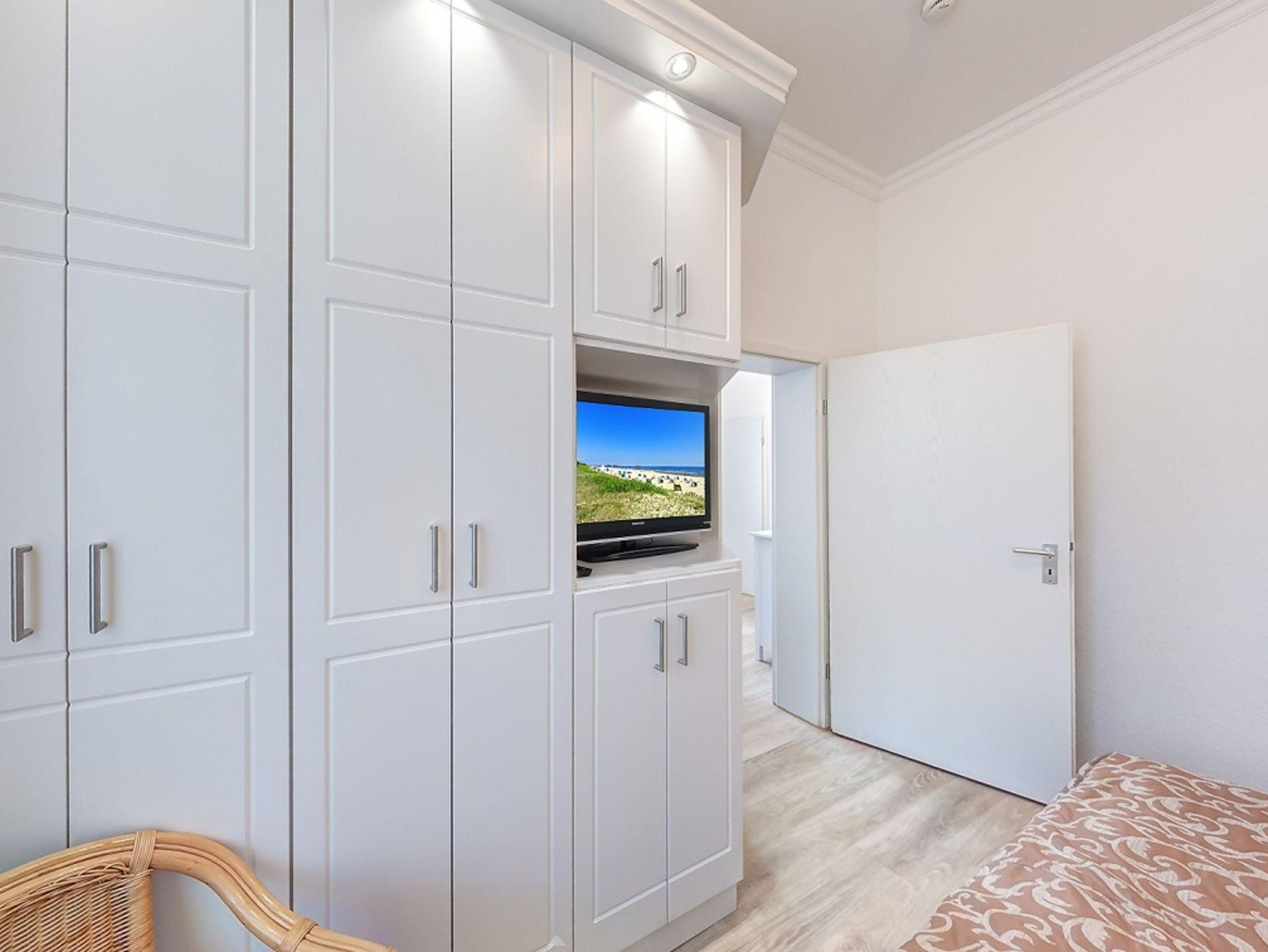 Das gemütliche 2-Zimmer-Appartement Nr. 6 befindet sich im Erdgeschoss der Villa Ostseewarte nur 100m vom Ostseestrand entfernt. Es verfügt über ein separates Schlafzimmer mit einem Doppelbett und einen Wohnbereich mit gemütlicher Sitzgruppe, auf welcher eine Aufbettung für eine dritte Person vorgenommen werden kann. In der separaten voll ausgestatteten Küche mit Kaffeemaschine, Wasserkocher, Toaster, sowie Geschirrspüler befindet sich außerdem ein gemütlicher Essplatz. Das Bad ist mit Dusche und WC ausgestattet. Zum Appartement gehört darüber hinaus eine große Terrasse mit Gartenmöbeln. Ein Pkw-Stellplatz steht Ihnen auf dem Grundstück kostenfrei zur Verfügung und Ihre Fahrräder können Sie ebenfalls auf dem Grundstück in einem separaten Abstellraum unterbringen. Dort können Sie auch gegen Gebühr eine Waschmaschine nutzen (Münzgerät). Alle Wohnungen in der Villa Ostseewarte haben passwortgeschütztem DSL-WLAN Internetzugang (gerätegebunden, Euro 1,50 pro Tag und Gerät).