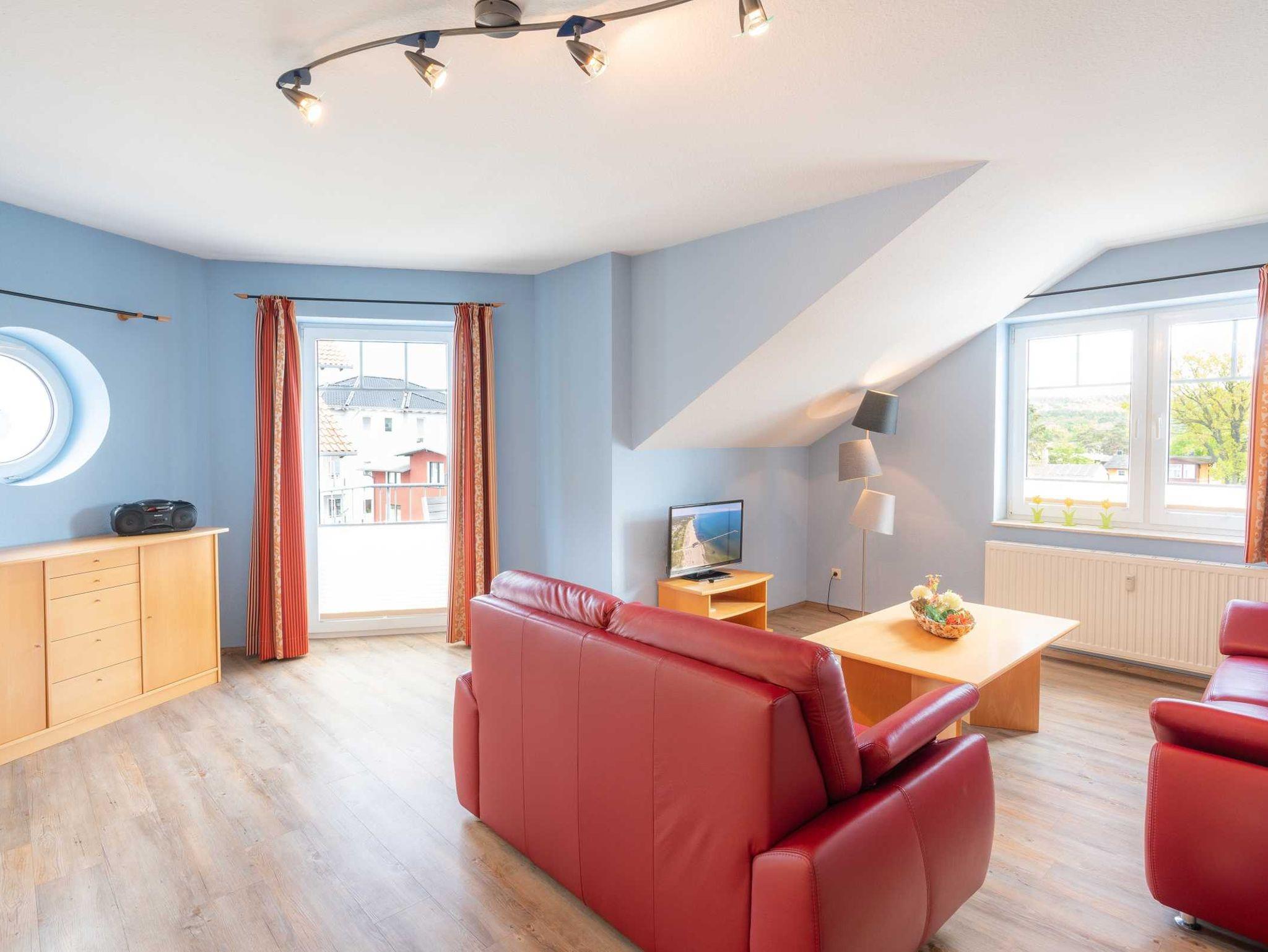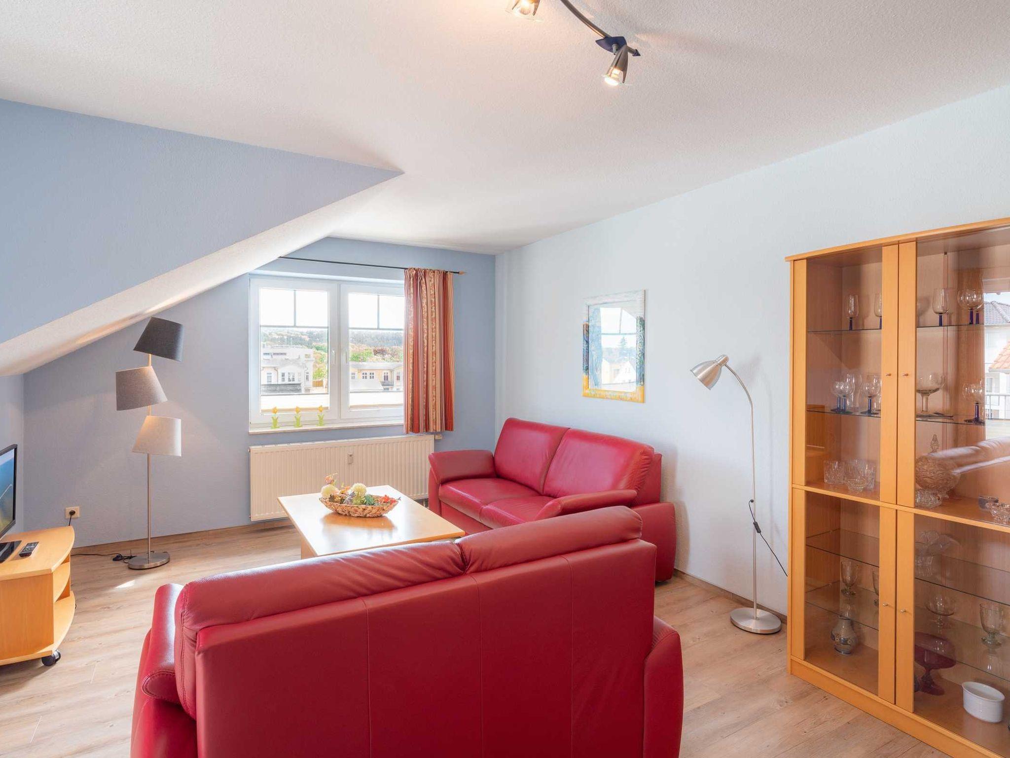 Gemütliche 2-Zimmer-Dachgeschosswohnung nahe dem weißen Sandstrand in Ahlbeck mit Balkon und kostenfreiem WLAN.