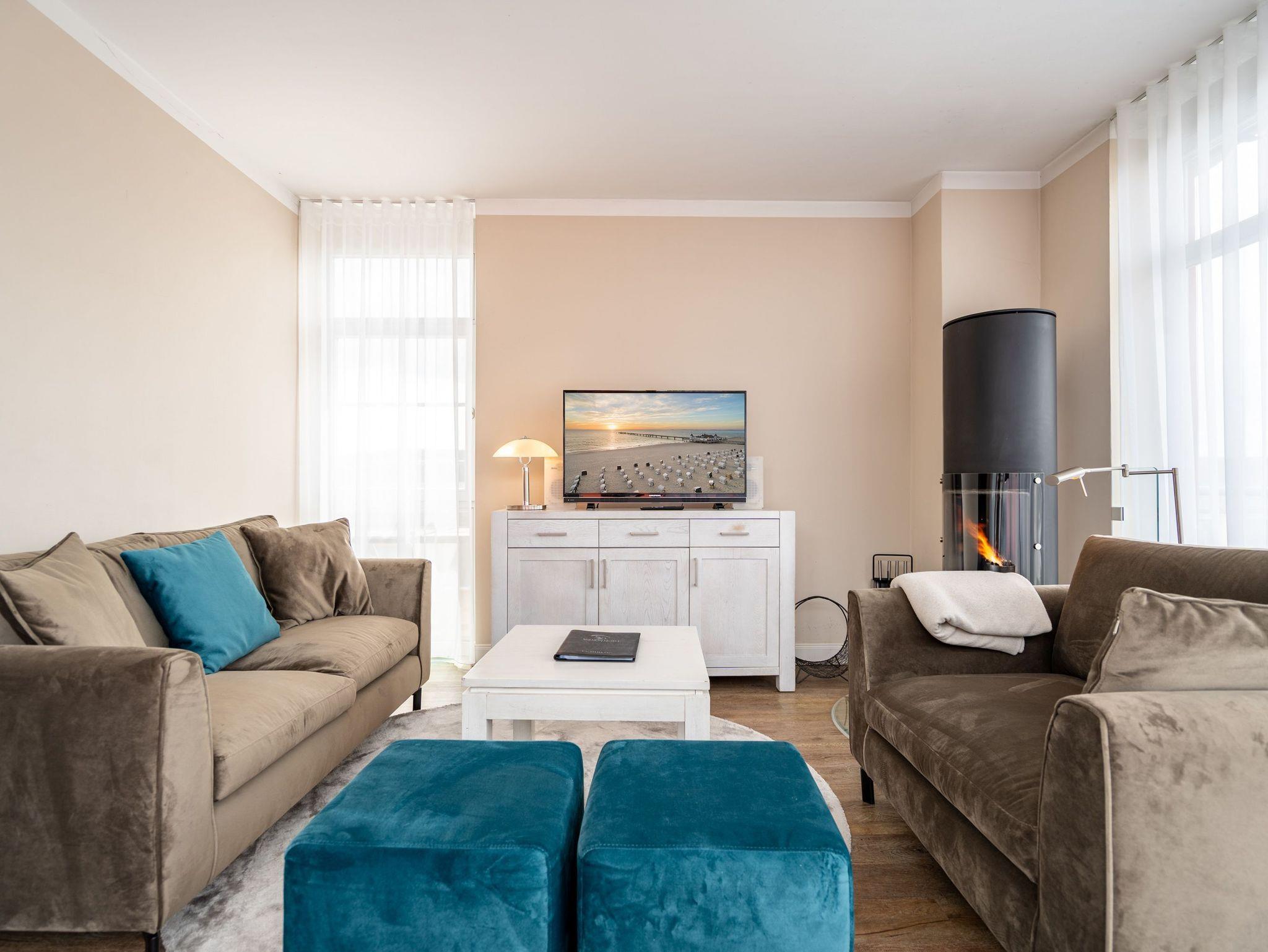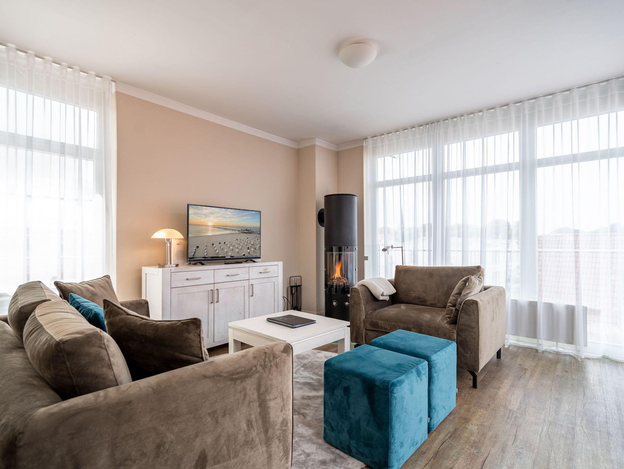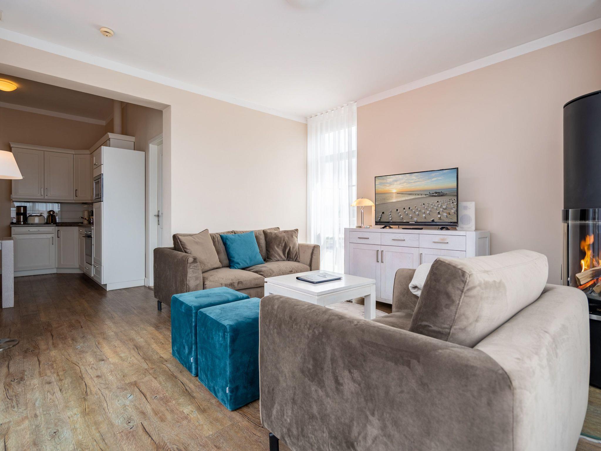 Moderne Ferienwohnung im landhausstilnah am weißen Sandstrand von Ahlbeck mit Kamin und großzügigem Balkon.