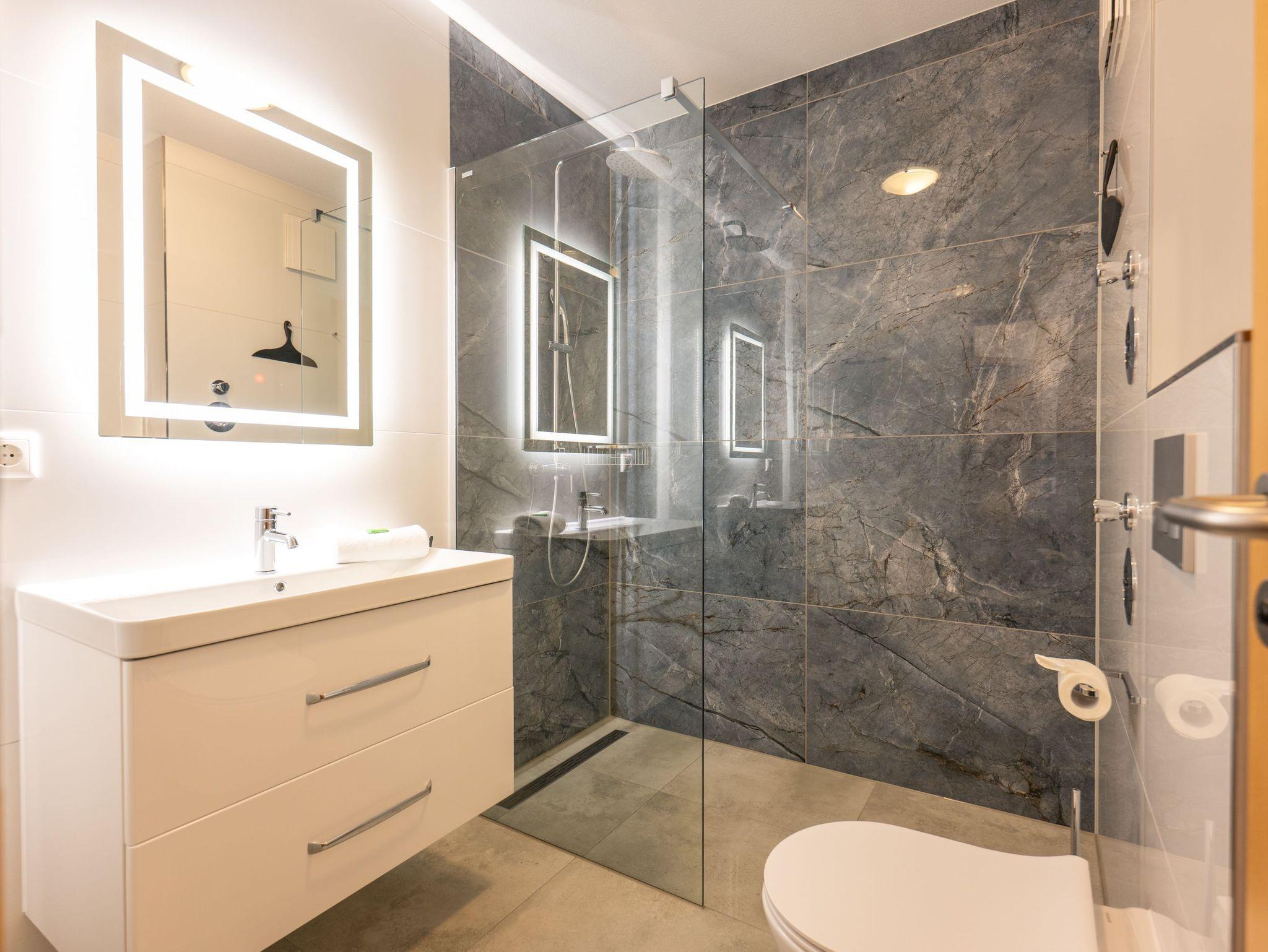 Schlafmöglichkeiten: Hauptschlafzimmer mit zweitem TV, hochwertigem Boxspringbett; zweites Schlafzimmer mit zwei Einzelbetten