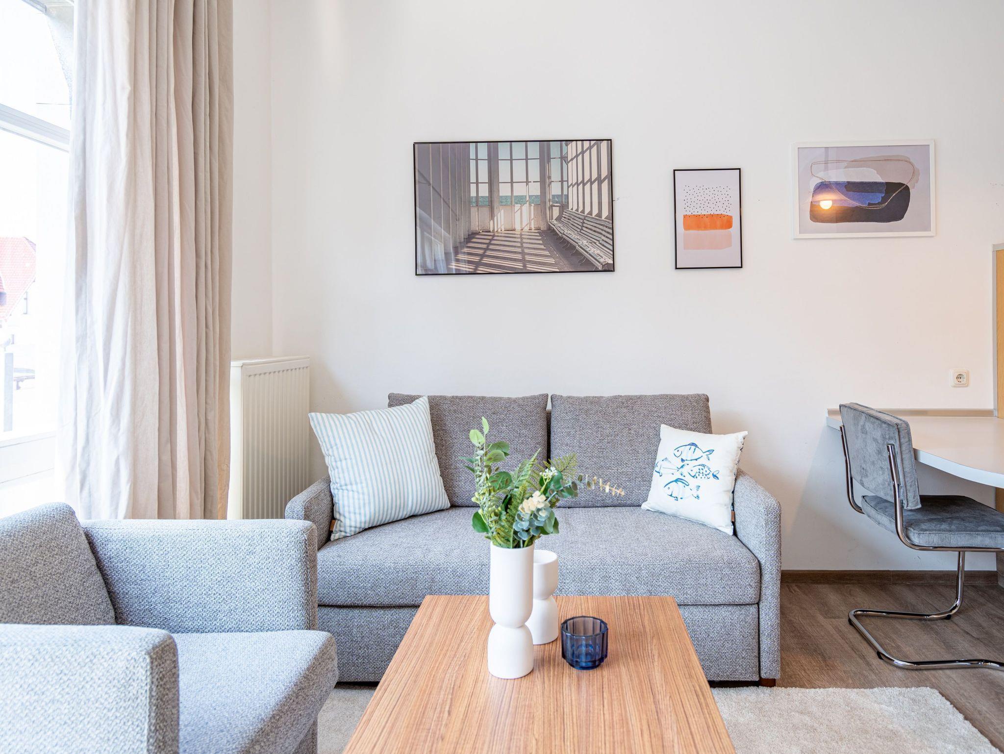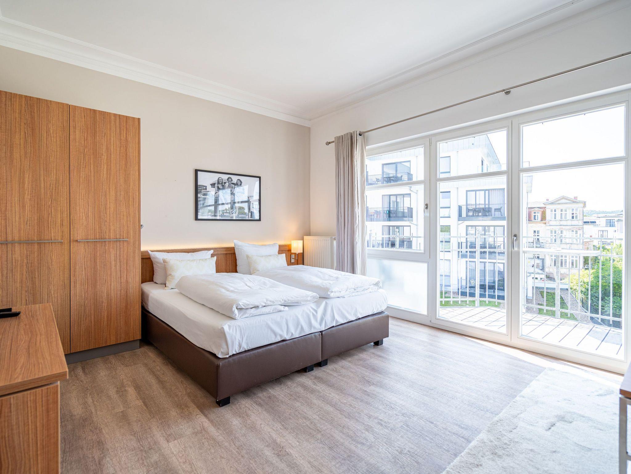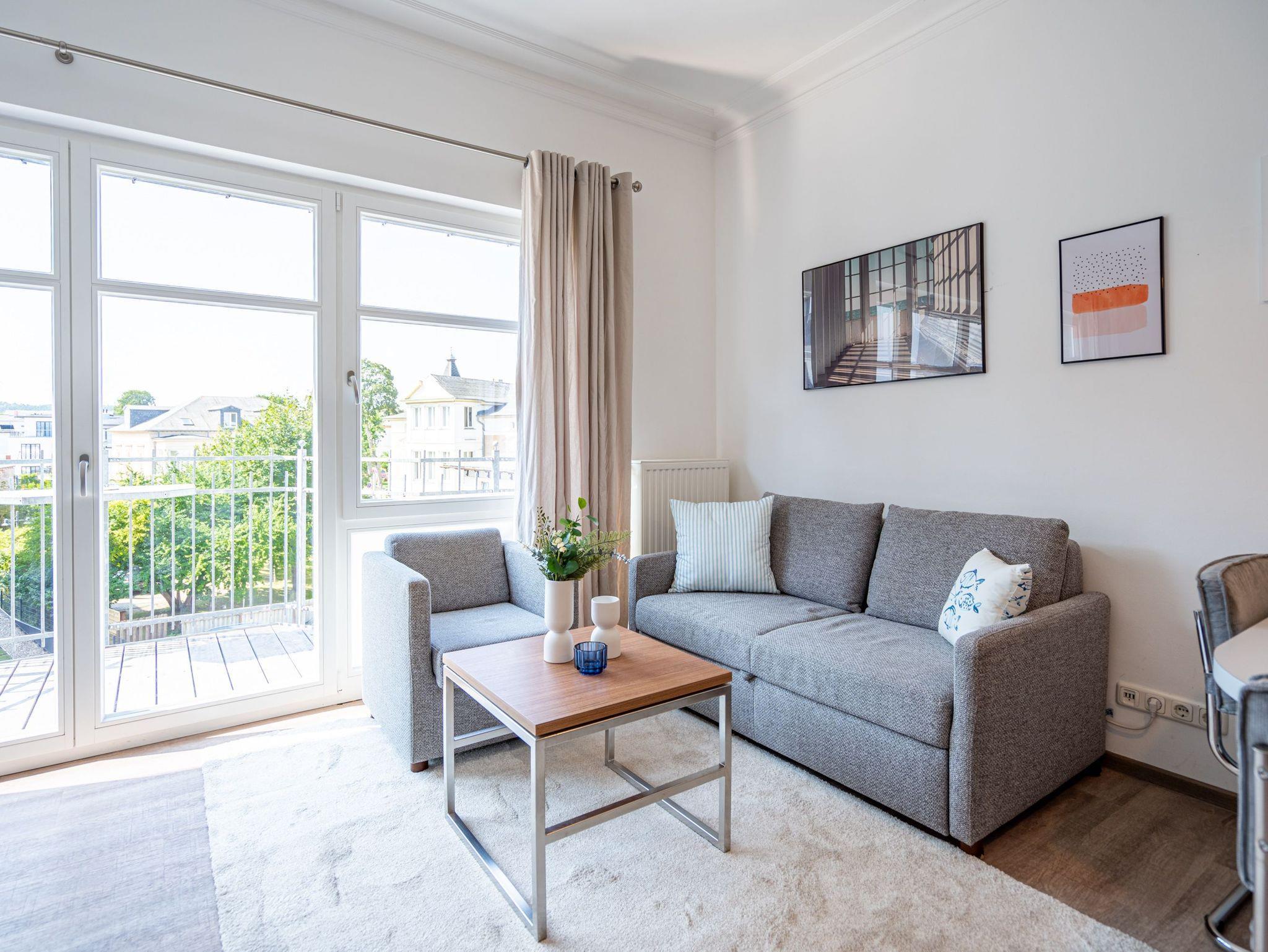 Die Dachgeschosswohnung Villa Seedüwel C09 in Ahlbeck bietet Komfort, Balkon und WLAN nur wenige Schritte vom Strand entfernt.