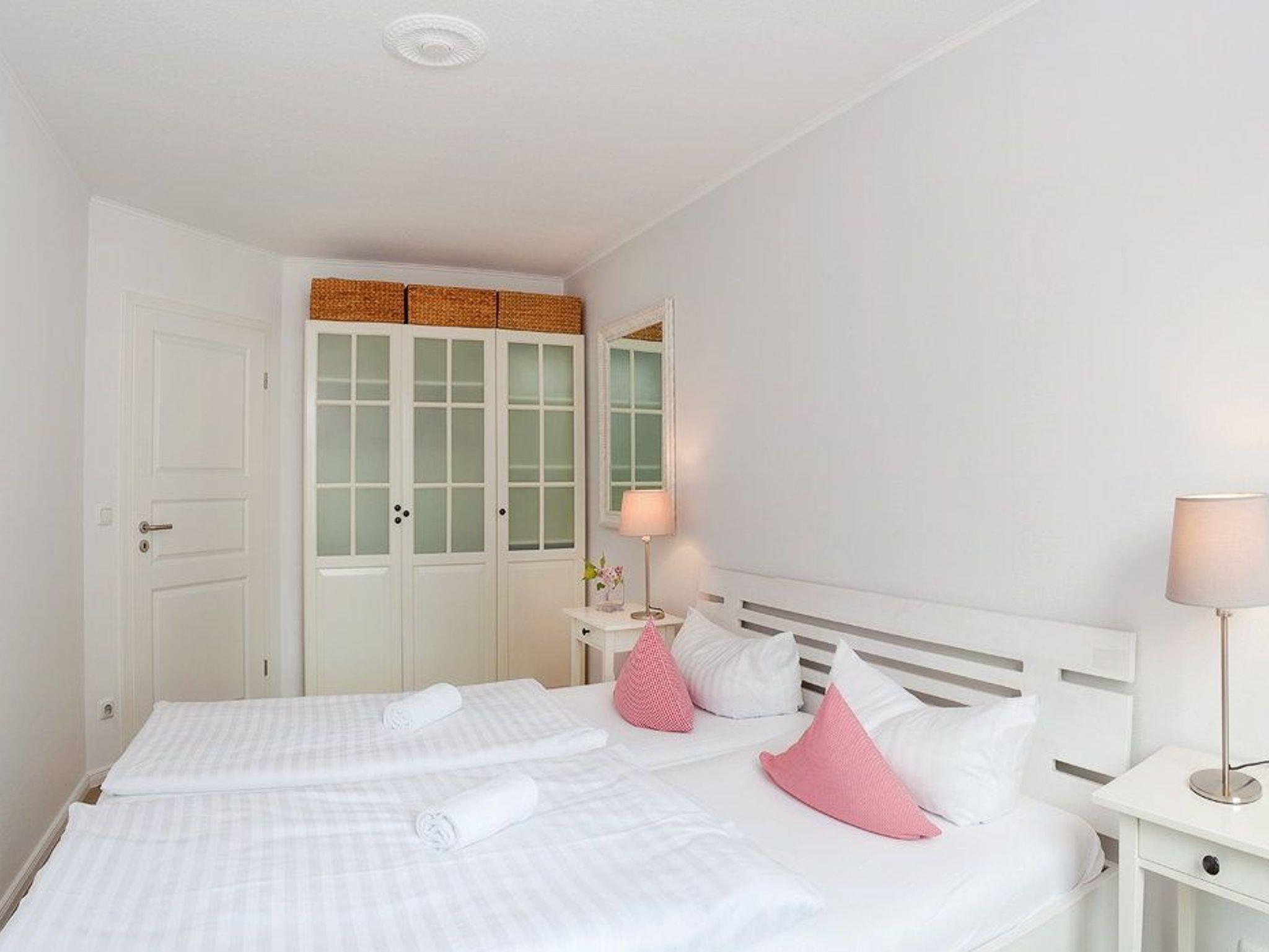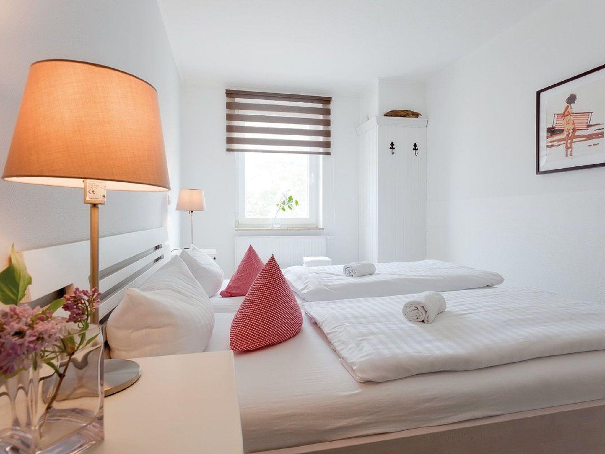 Vom Wohnzimmer erreichen Sie den möblierten Südostbalkon, der Ihnen nicht nur Entspannung verspricht, sondern auch einen Hauch von seitlichem Ostseeblick gewährt. Die Küchenzeile mit Essecke für 4 Personen lässt keine Wünsche offen: Kühlschrank mit Gefrierfach, 4fach Ceran-Kochfeld, Backofen, Geschirrspülmaschine, Kaffeemaschine, Toaster und Wasserkocher, u.v.m. Das freundlich eingerichtete Schlafzimmer mit komfortablem Doppelbett (180 x 200cm / zwei getrennte Matratzen) und Kleiderschrank lädt Sie zu erholsamer Nachtruhe ein.