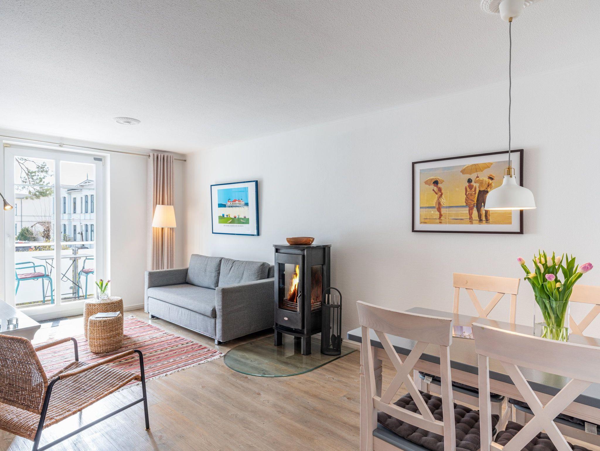 Gemütliche 2-Zimmer-Ferienwohnung mit Kamin und Balkon nur 50 m vom Strand in Ahlbeck.