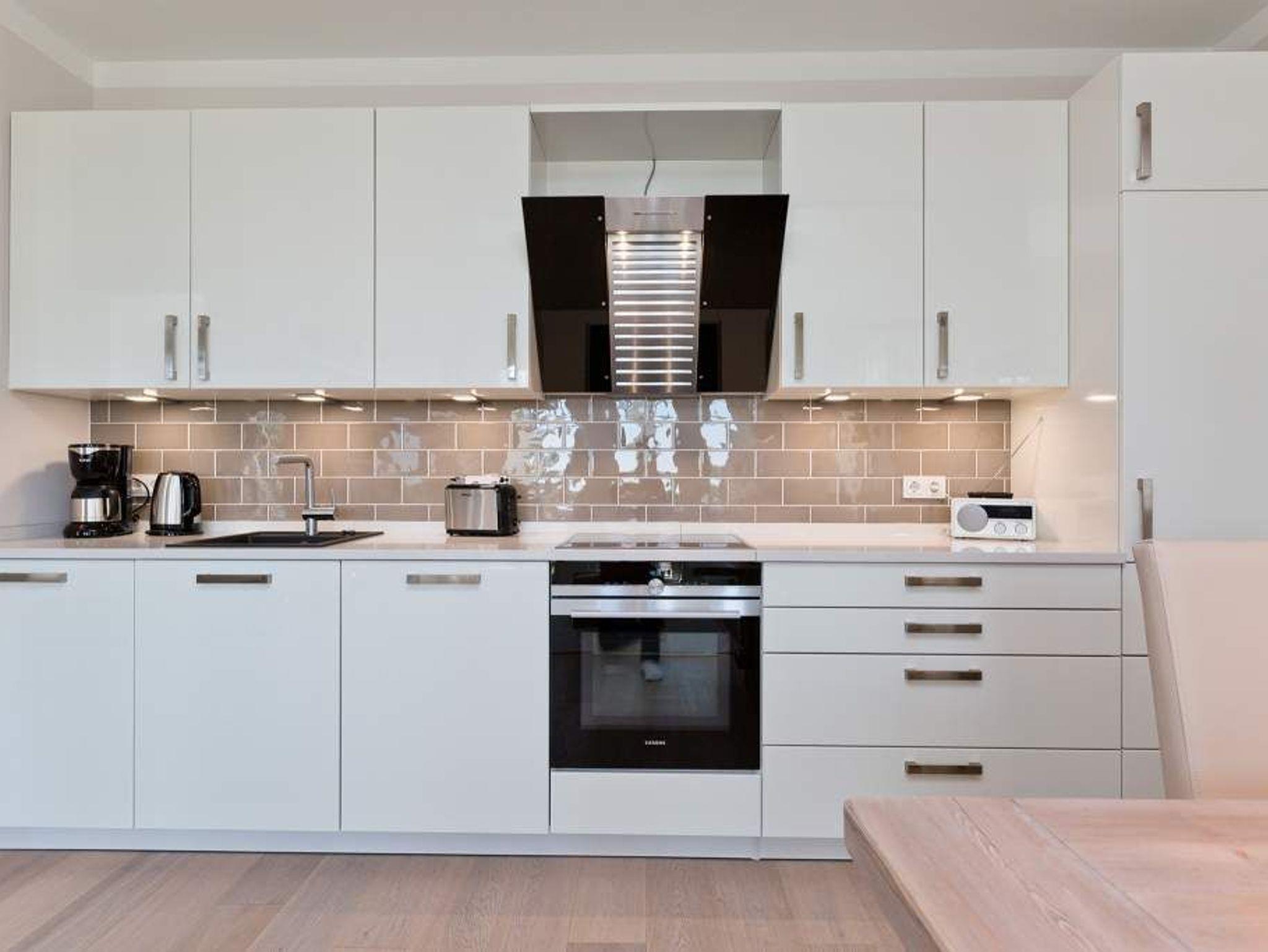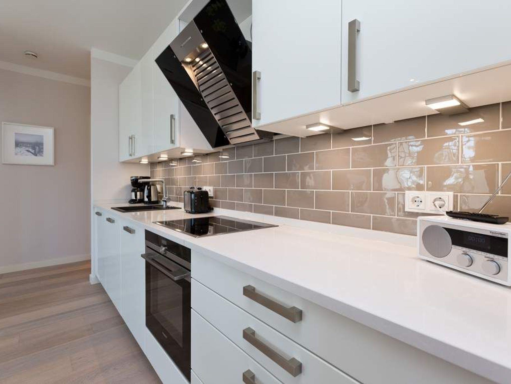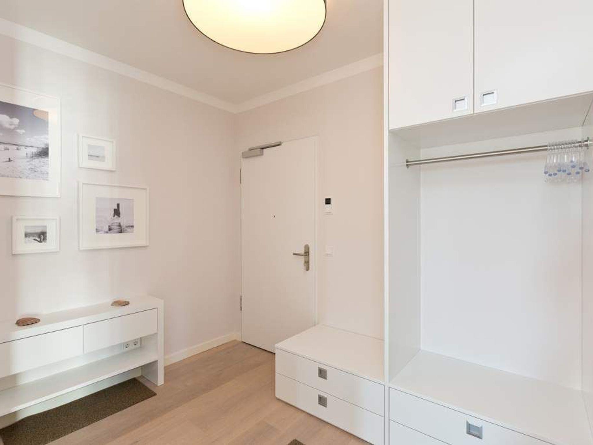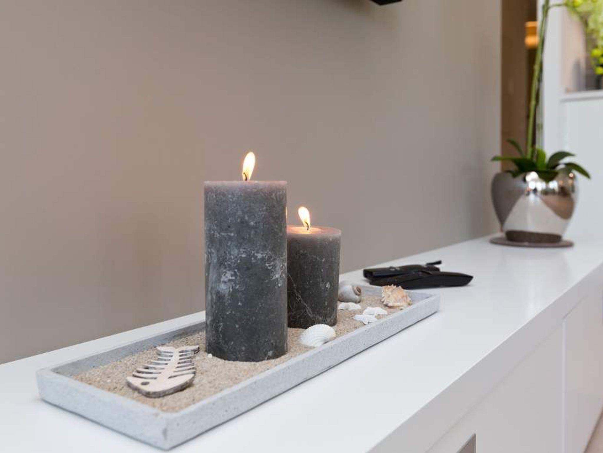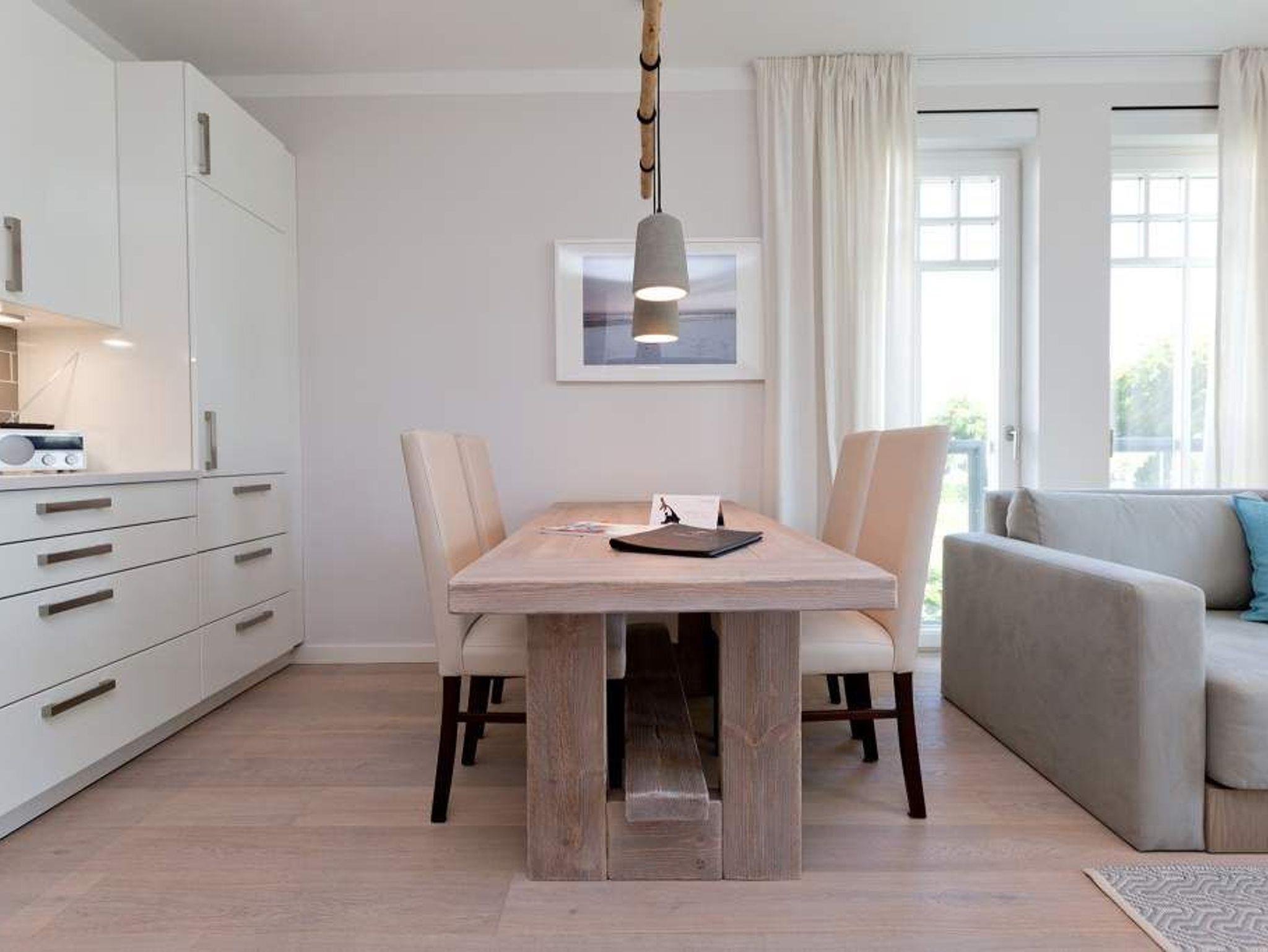 Die Freiheit ist Blau. Schon beim Aufwachen legt sich Ostseeweite in den Blick. 78 Quadratmeter Wohlfühlwelt bieten die 3 Räume der Wohnung Nummer 6 im ersten Obergeschoss der Villa Westend. Meerblick gibt es hier jedoch nicht nur aus einem der beiden Schlafzimmer. Auch der großzügige Wohnbereich mit offener Küche und angrenzendem Balkon wartet mit Weite bis an den Horizont auf. Eingerichtet vom Innenarchitekten mit eleganten Möbeln und stylischen Wohn-Accessoires sorgt das Appartement für Urlaubsgefühl pur. Highlight nicht nur im Winter ist der Elektro-Kamin. Kühle Abende werden damit zu wohligen Augenblicken. Zwei Schlafzimmer bieten in hochwertigen Boxspringdoppelbetten (1,80 m x 2,00 m) Platz für 4 Personen. Zum Verdunkeln können Außenjalousien heruntergelassen werden: hierbei handelt es sich lediglich um einen Sonnenschutz, der automatisch bei schlechtem Wetter einfährt und nicht um Außenjalousien. Alle drei Zimmer verfügen über Flat-TVs. Wie wäre es mit einem eigenen kleinen Spa-Bereich? Zwei Bäder mit exklusivem Baddesign, Tropendusche und einer Panorama-Sauna im Masterbad lassen den Urlaub zur Wellness-Auszeit werden. Und damit Sie sich wirklich um nichts kümmern müssen, liegen bereits Handtücher für Sie bereit und auch die Betten sind bezogen. Zu dieser Wohnung gehören 2 Stellplätze ( Nr. 26 [&] 27) in der Tiefgarage.