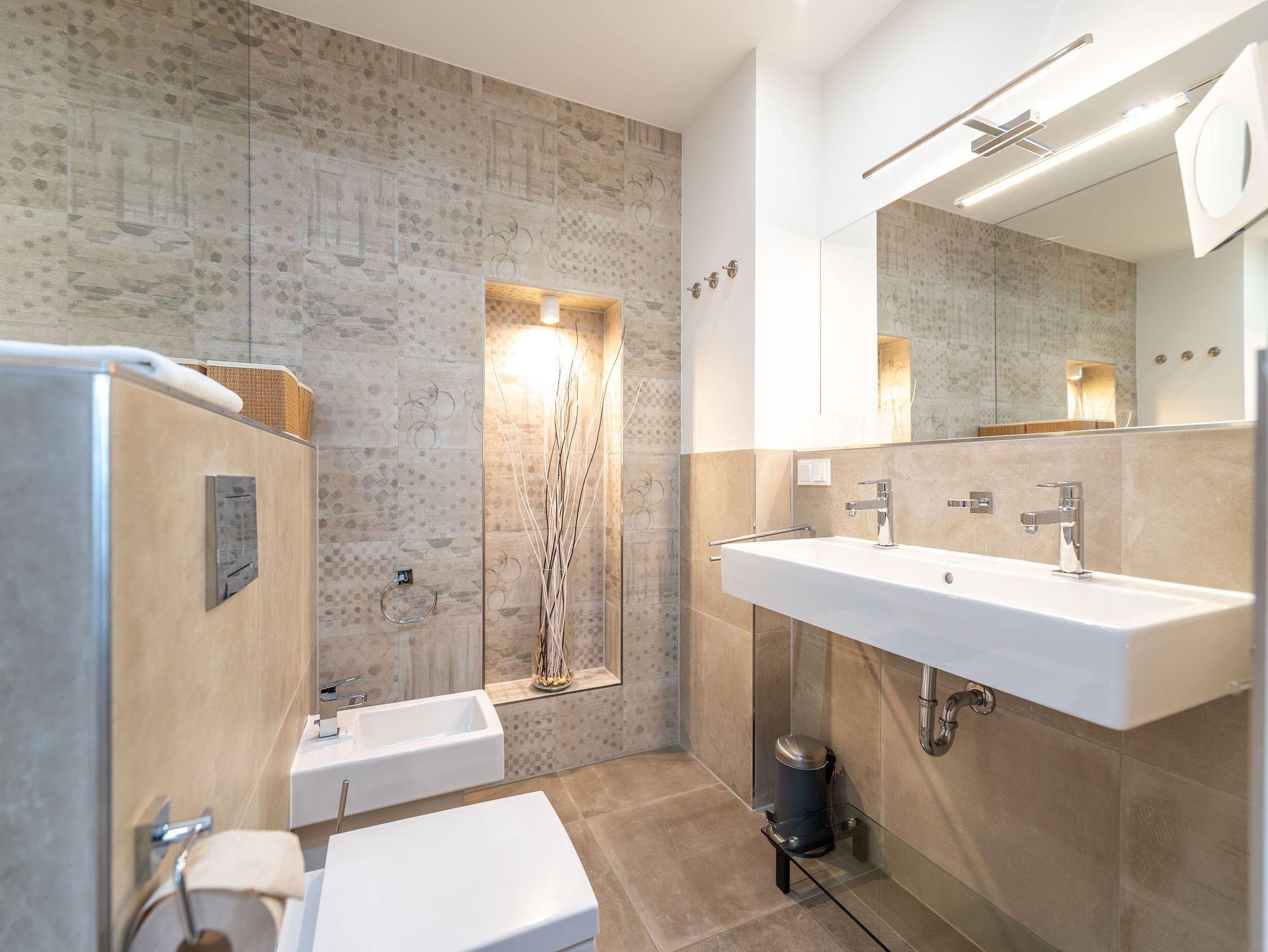 Urlaub beginnt da, wo Sie bereits beim Frühstück aufs Meer blicken! Das 77 Quadratmeter große Appartement 7 im 1. OG erfüllt Ihnen diesen Urlaubstraum. Lichtdurchflutete, helle 3 Zimmer und eine großzügige Raumaufteilung versprechen eine exklusive Auszeit am Meer für bis zu 4 Personen. Dafür sorgt auch der offene Wohn-Essbereich. Genießen Sie vom Balkon oder Design-Sofa aus den direkten Blick auf die Ostsee oder entspannen Sie vor dem Flat-TV. Ein Elektro-Kamin sorgt auch an kühleren Tagen für ein stimmungsvolles Ambiente und dient als Raumtrenner zum angrenzenden Küchenbereich mit Design-Küche. Zur Erleichterung Ihres Küchendienstes wurden hochwertige Geräte verbaut, die keine Wünsche beim Zubereiten Ihrer Speisen offen lassen. Hier befindet sich ebenfalls ein Essplatz für bis zu 4 Personen. Die dezent gestalteten Schlafzimmer sind jeweils mit Flat-TV und offenen Möbeln ausgestattet. Ein Doppelbett im Master-Schlafzimmer (1,80m x 2,00m) und ein Boxspringbett (1,60m x 2,00m) im zweiten Schlafzimmer sorgen für angenehmen Schlafkomfort. Das absolute Highlight bildet das Badezimmer mit Finnischer Sauna und XXL-Regendusche. Ein Bidet und WC sowie ein Doppelwaschtisch runden das Masterbad ab. Ein Gäste-WC ist darüber hinaus ebenfalls vorhanden. Ein Platz in der Tiefgarage ist bei Anreise für Sie reserviert. Für einen sorgenfreien Urlaubsstart sind die Betten bereits bezogen und Handtücher liegen für Sie bereit. Kostenfreies WLAN rundet dieses Appartement ab.
