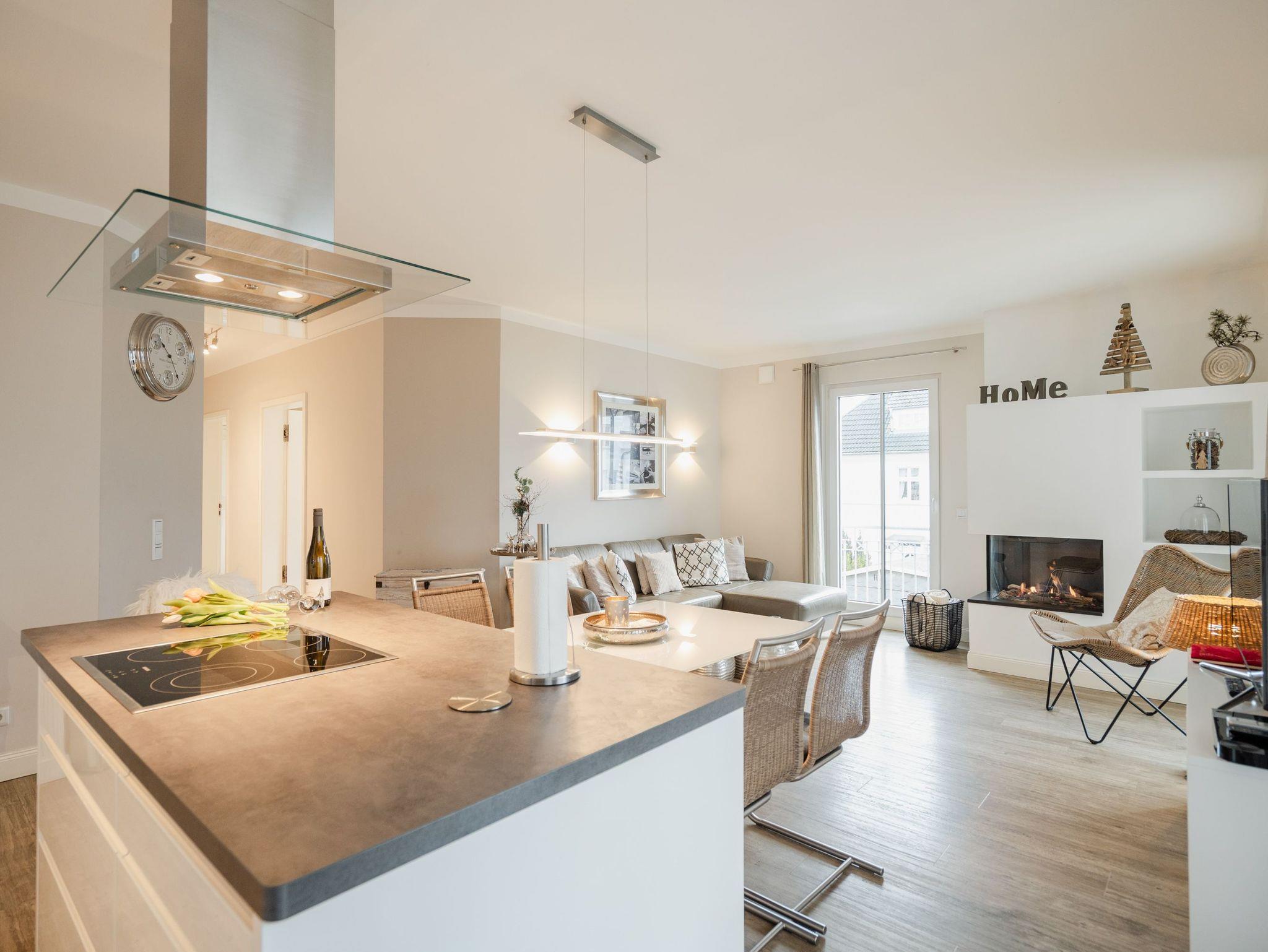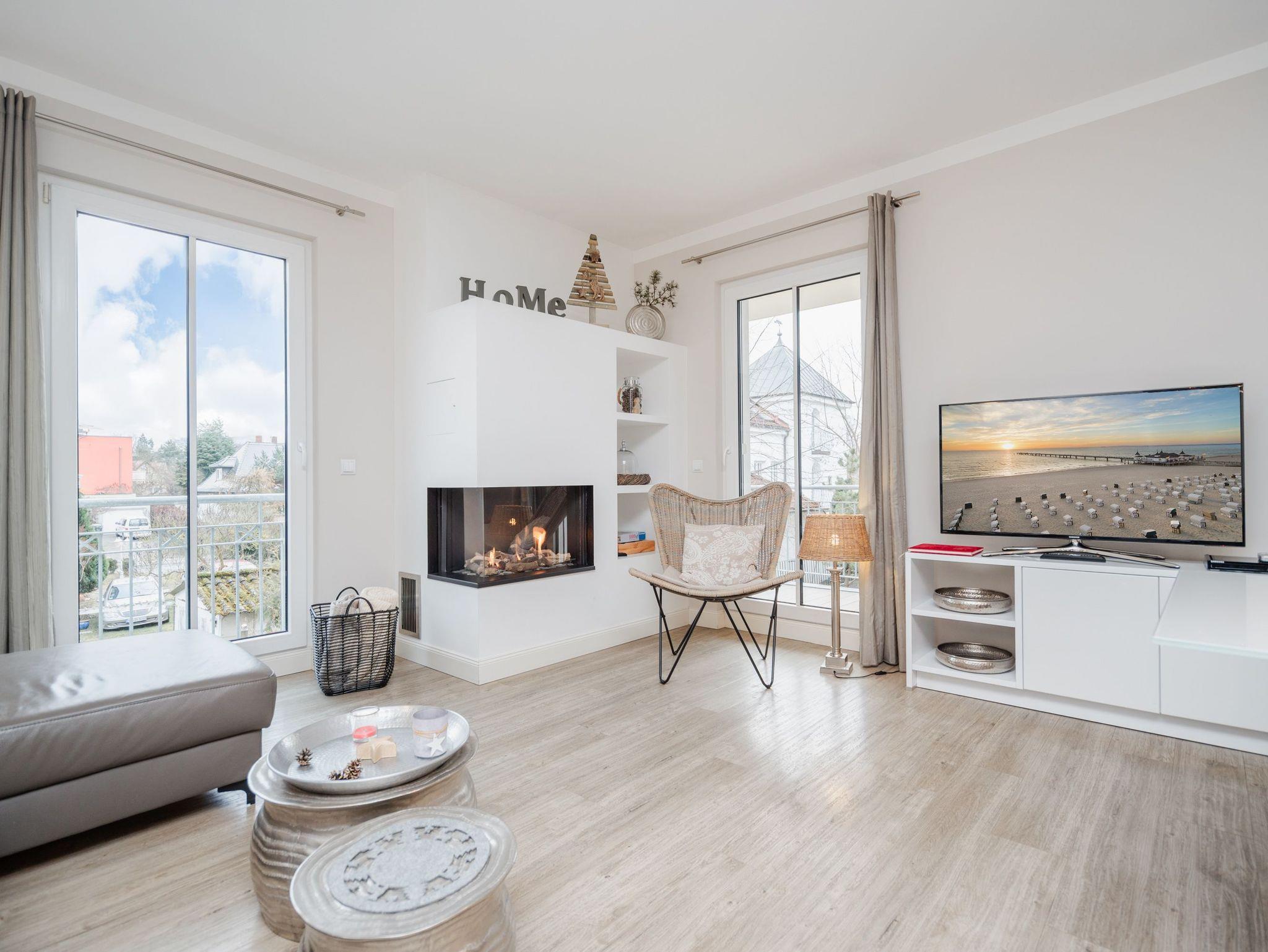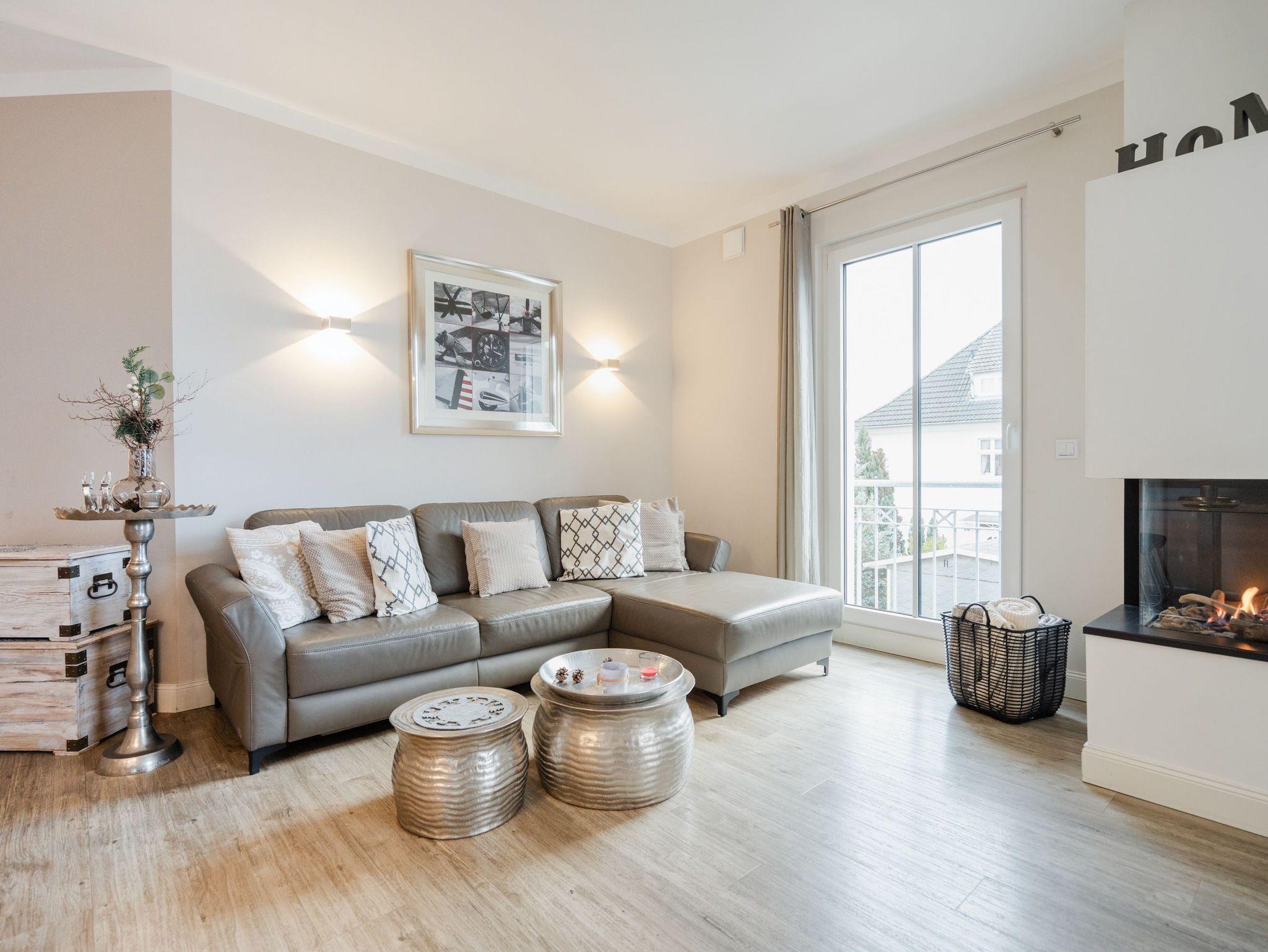 Stilvolle 3-Raum-Ferienwohnung mit eigenem Balkon, Sauna und modernem Gaskamin nahe Strand in Ahlbeck.