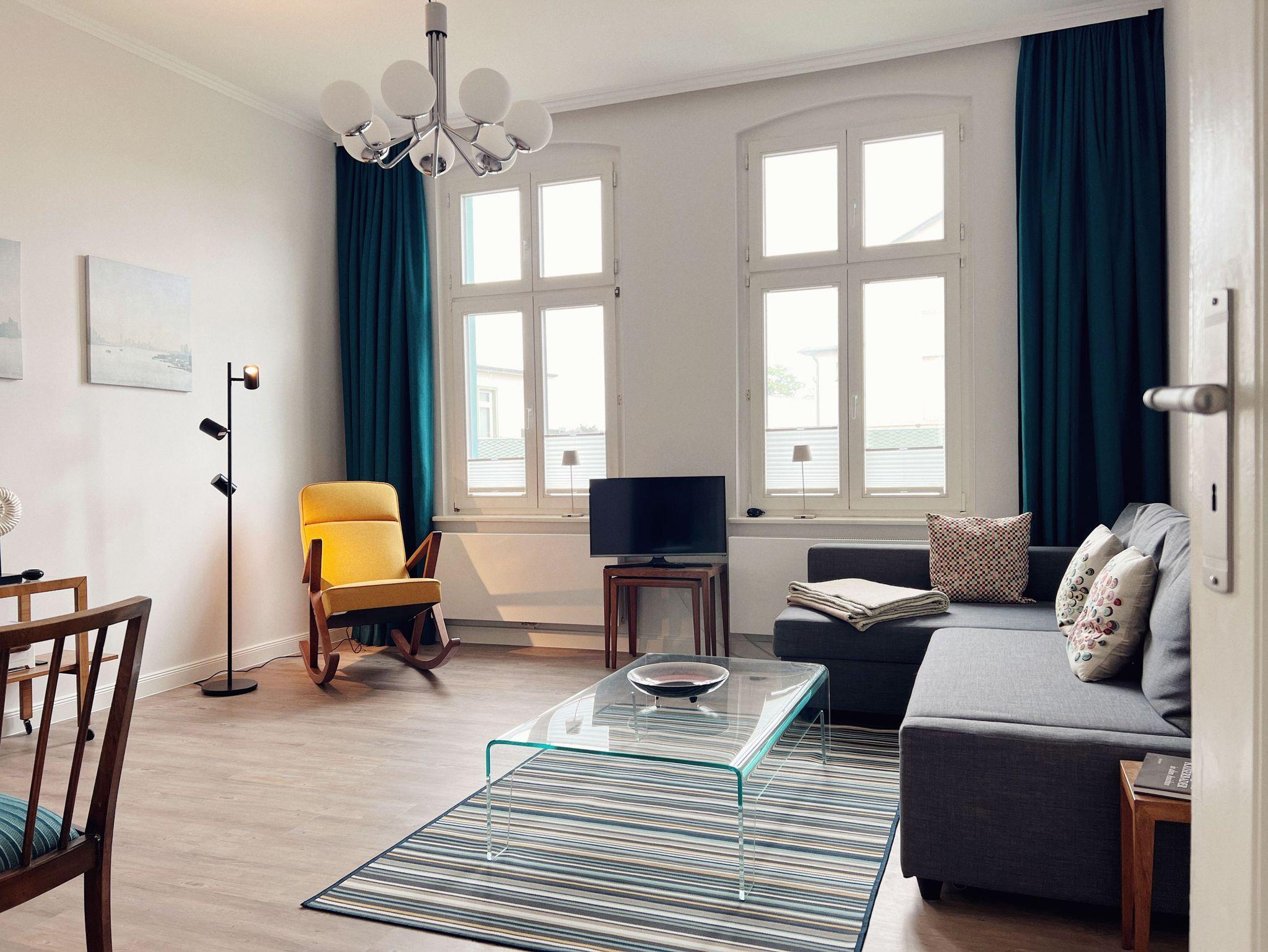 Die Ferienwohnung 4 im denkmalgeschützten Haus Seebär in Ahlbeck bietet Komfort, Stil und zentrale Lage nur 200 m vom Strand entfernt.