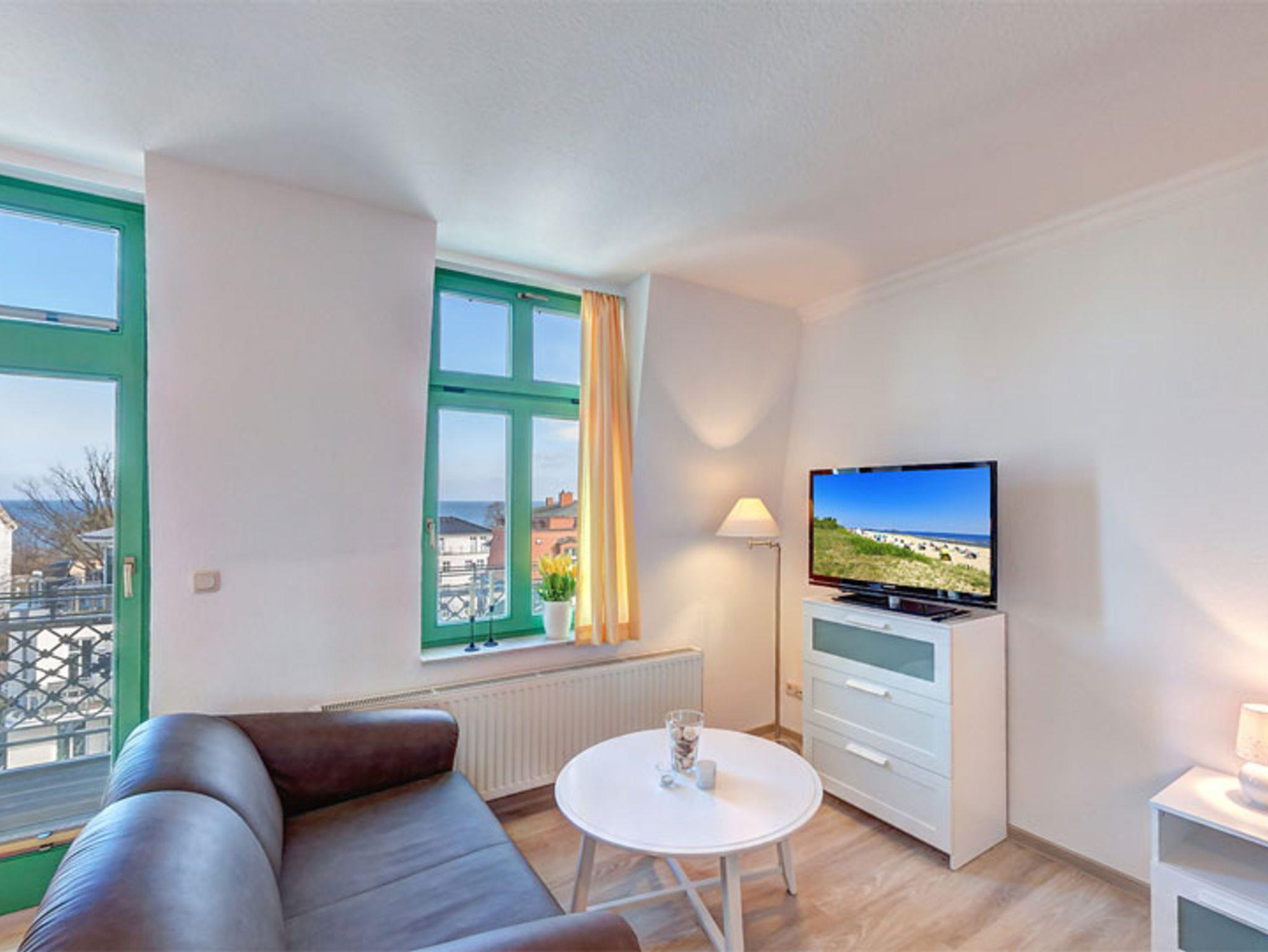STRANDNAH mit SEEBLICK UND BALKON! Nur ca. 100 m zur StrandpromenadE! Gemütliches 1-Zimmer-Apartment mit guter Ausstattung. Geräumiger Wohn-/Schlafraum mit Doppelbett und Sitz-/Sofaecke, separate Küche mit Essplatz, Duschbad, kleiner Vorflur, Balkon zur Seeseite mit Blick über die vorstehenden Häuser hinweg zum Meer. Die Wohnung verfügt über einen Pkw-Stellplatz . Abstellraum für Fahrräder und ähnliches ist vorhanden. Eine Sauna in der Villa Germania kann kostenpflichtig genutzt werden. Vom Haus aus können Sie das Ortszentrum und die bekannte Ahlbecker Seebrücke in ca. 3 bzw. 5 Minuten zu Fuß erreichen.