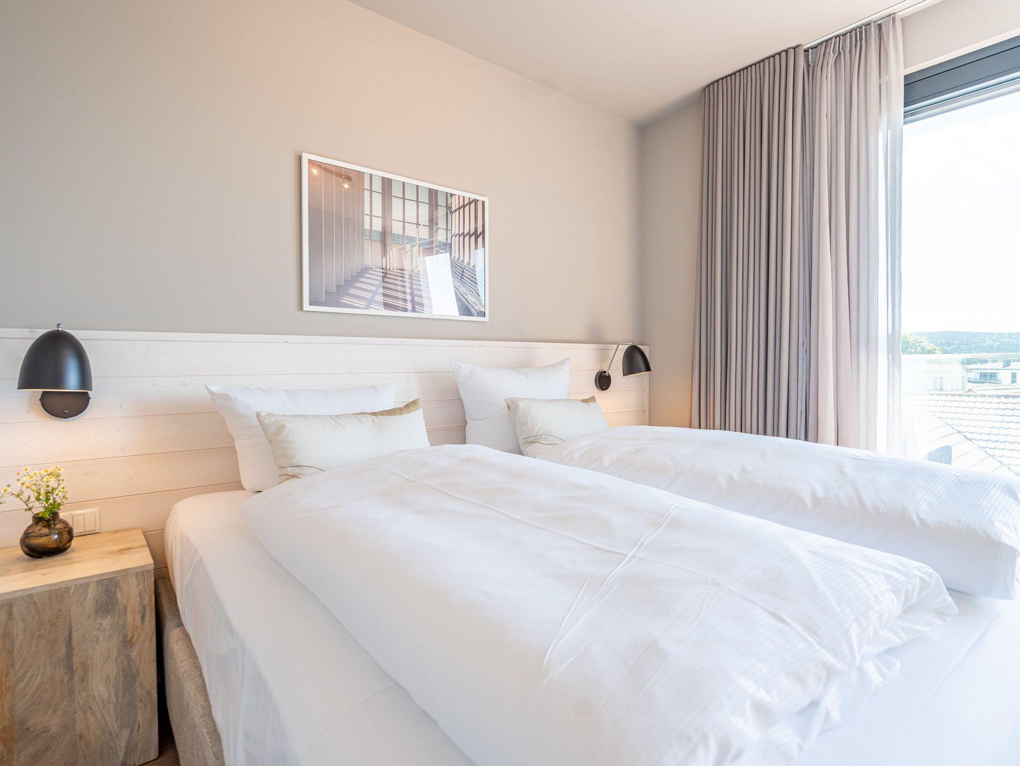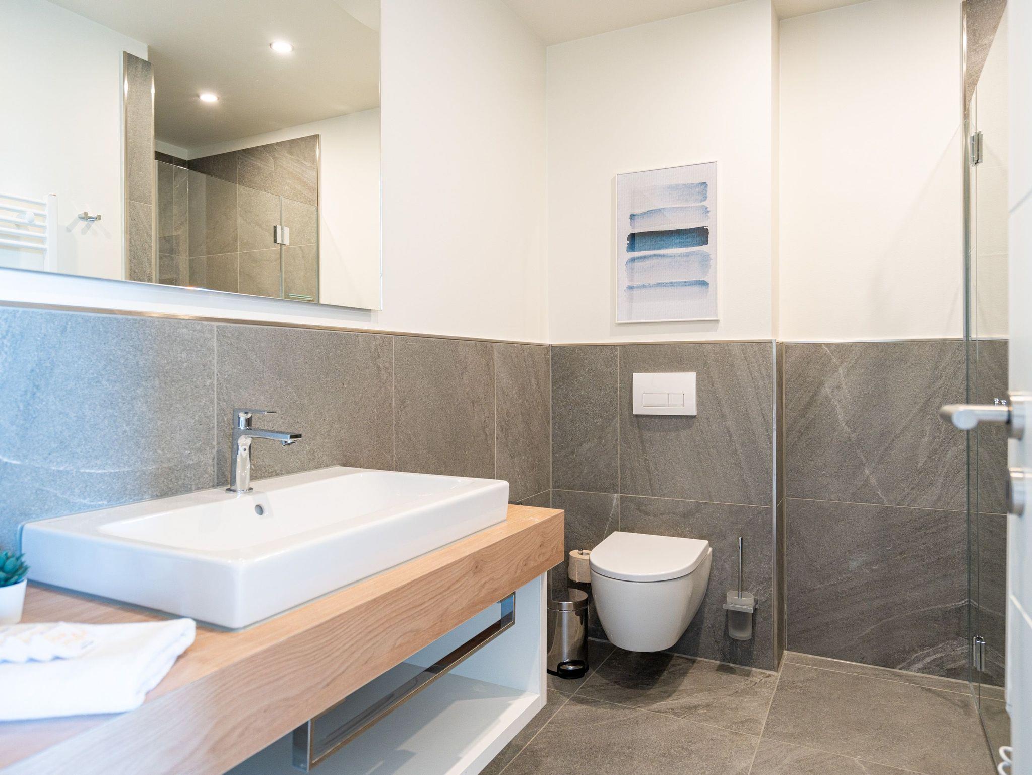 Die 2024 fertig gestellte Strandterrasse liegt direkt an der belebten Strandpromenade und bietet einen einzigartigen Ausblick auf die Grand Dame der historischen Seebrücken sowie die historische Konzertmuschel, einem beliebten Treffpunkt für Kunst und Kultur. Dahinter liegt die Ostsee ? ein Panorama, das zu den schönsten in den Kaiserbädern gehört. Es ist wie das Abtauchen in eine andere Zeit. In eine Zeit, in der man mit Stock, Sonnenschirm und Hut fürs „Sehen und gesehen werden“ über die Promenade schlenderte; aber auch in eine Zeit, in der ? damals wie heute ? Zeit einmal für eine kurze Weile keine Rolle spielt. Weil man angekommen ist im Loslassen, Entspannen und Genießen. Es ist dieser besondere Geruch nach Meeresluft und Freiheit, der in Erinnerung bleibt. Dazu die Bilder, die man mitnimmt. Von langen Strandspaziergängen, vom Lachen in fröhlich schäumenden Ostseewellen, von der Zeit in einem wunderschönen Urlaubsdomizil. Denn genau das ist die Strandterrasse mit ihren 56 modernen und exklusiven Ferienappartements direkt gegenüber der Ahlbecker Seebrücke. Die Ein-, Zwei- oder Dreizimmerwohnungen ? zwischen 40 und 70 Quadratmeter groß ? sind von einer Innenarchitektin gemeinsam mit unserem Erfahrungsschatz an Gästewünschen mit viel Liebe zum Detail und ganz individuell konzipiert worden. Entspannung und Wohlfühlen stehen an erster Stelle. Alles ist aufeinander abgestimmt und sorgt für eine gemütliche Atmosphäre. Wählen Sie zwischen einem Domizil in einem hellen, sandfarbenen Designkonzept oder einem Appartement mit anthrazitfarbenen Farbakzenten. Alle Appartements verfügen gleichermaßen über eine stilvolle und komfortable Einrichtung, die passgenau angefertigt worden ist, sowie über moderne Küchen und Bäder. Jedem Schlafzimmer ist ein eigenes Bad mit Dusche zugeordnet (außer App. B4.5). Die Appartements besitzen fast alle einen Balkon ? viele schauen sogar zur Ostsee hinaus. Die meisten Feriendomizile haben einen Elektrokamin und Infrarotsaunen. Im Erdgeschoss befindet sich ein separater Gemeinschaftsraum für Fahrräder. Außerdem besteht die Möglichkeit, im Gemeinschaftswaschraum 2 Waschmaschinen [&] Trockner zu nutzen. Ergänzt wird das Angebot durch eine Gemeinschaftssauna, die täglich von 11:00 bis 22:00 Uhr nutzbar ist. In der Tiefgarage (Einfahrtshöhe 2,03 Meter) steht für jede Wohnung 1 Pkw-Stellplatz zur Verfügung. Ist alles zur Zufriedenheit untergebracht? Dann kann der Urlaub ja beginnen. Und beim Blick vom Balkon über die Ostsee treffen sich zum Sonnenaufgang das Heute und das Damals. Gelassenheit legt sich beim Gang hinunter an den Strand auf die Seele. Jetzt darf die Zeit stehenbleiben.