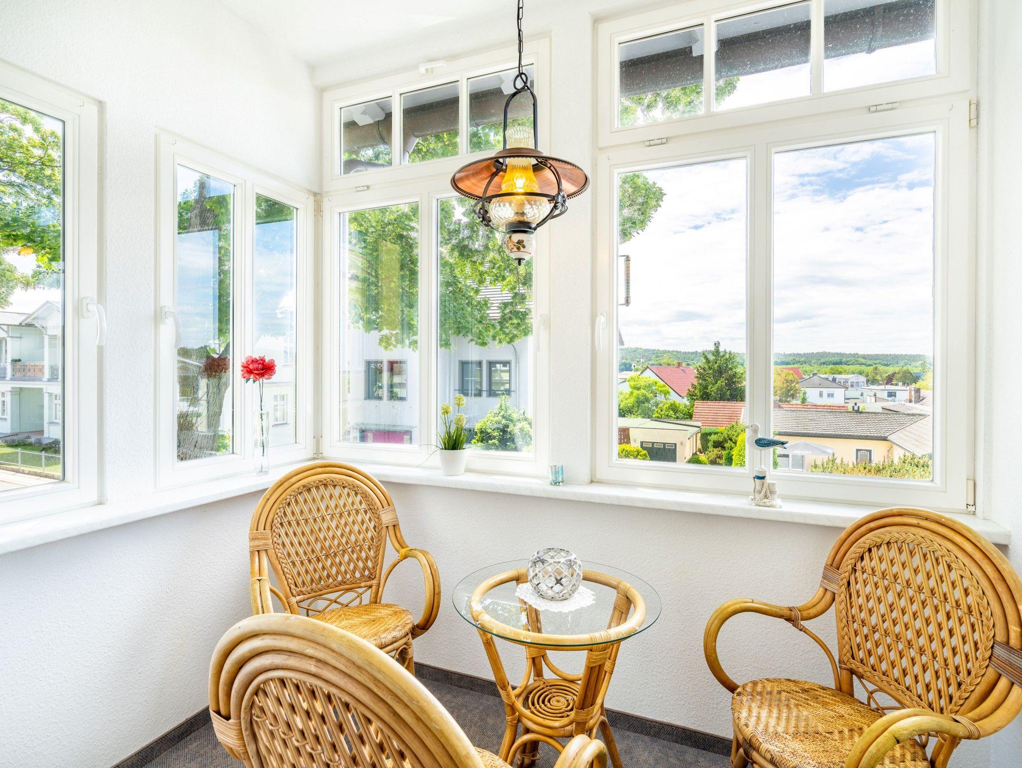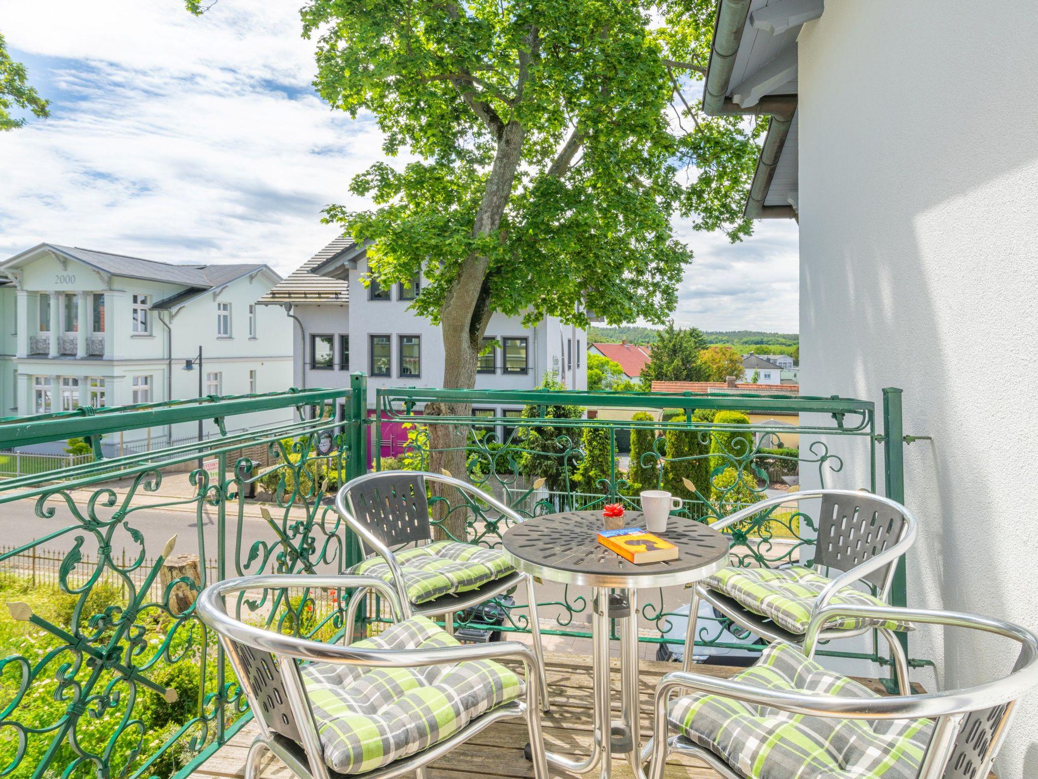 Zentrale Ferienwohnung in Ahlbeck, 300 m vom Ostseestrand und Promenade entfernt, mit Balkon und moderner Ausstattung.