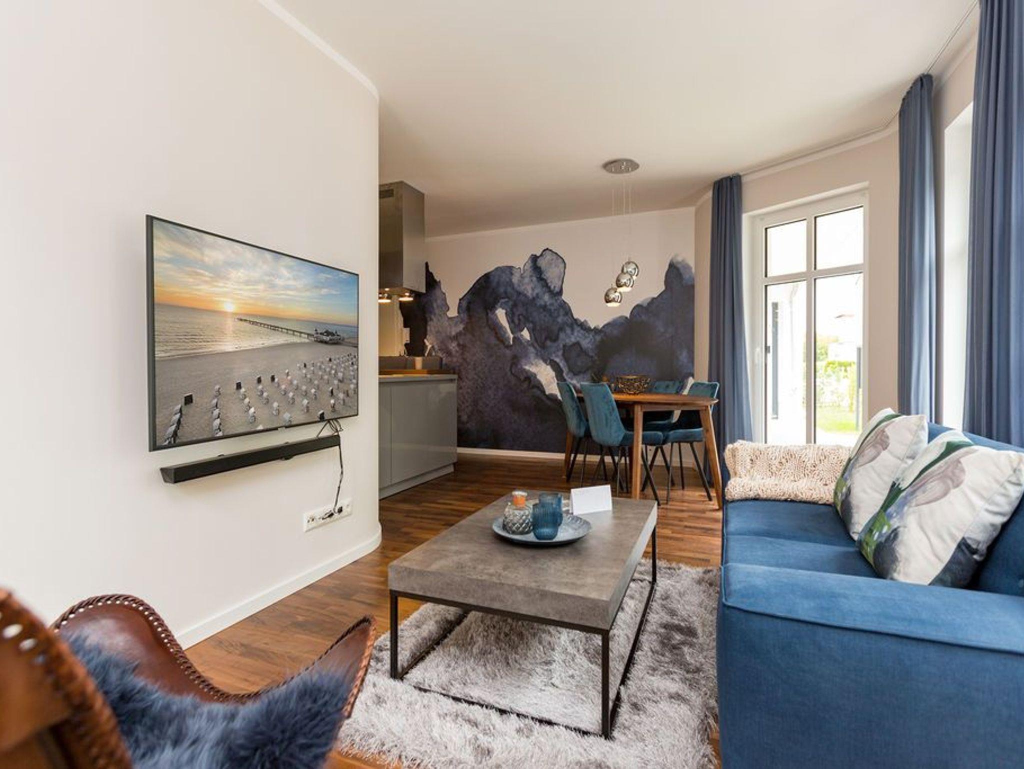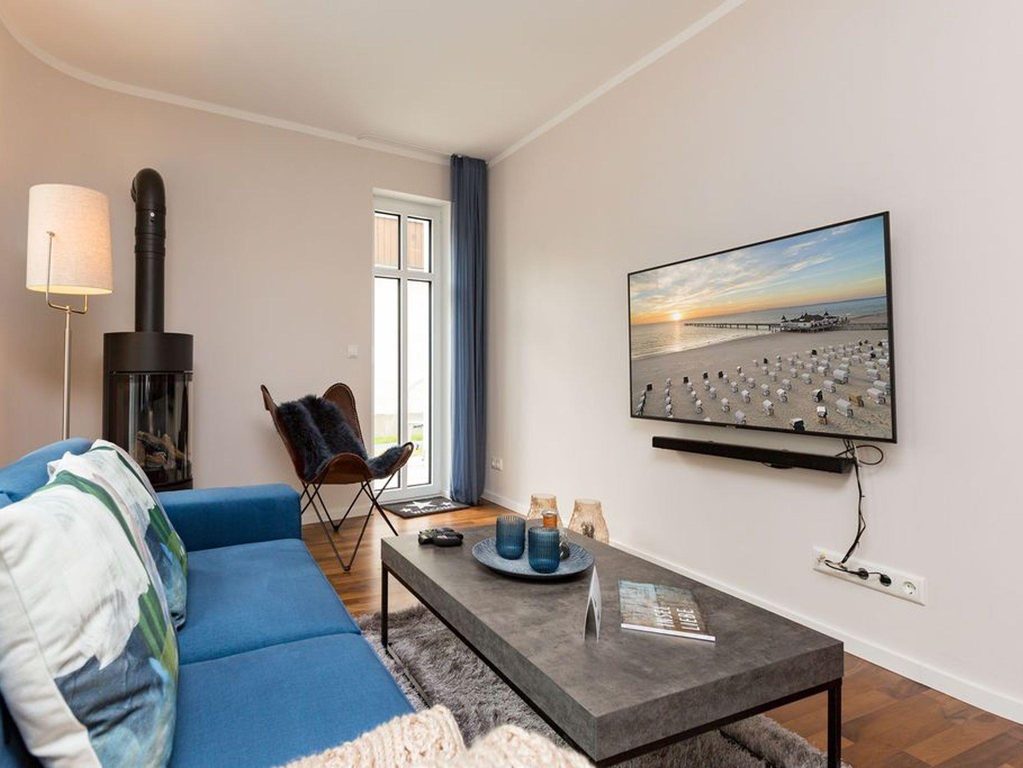 Exklusives 65 m² Erdgeschoss-Appartement in Ahlbeck mit Sauna, Kamin und zwei Terrassen, ideal für stilbewusste Urlauber.