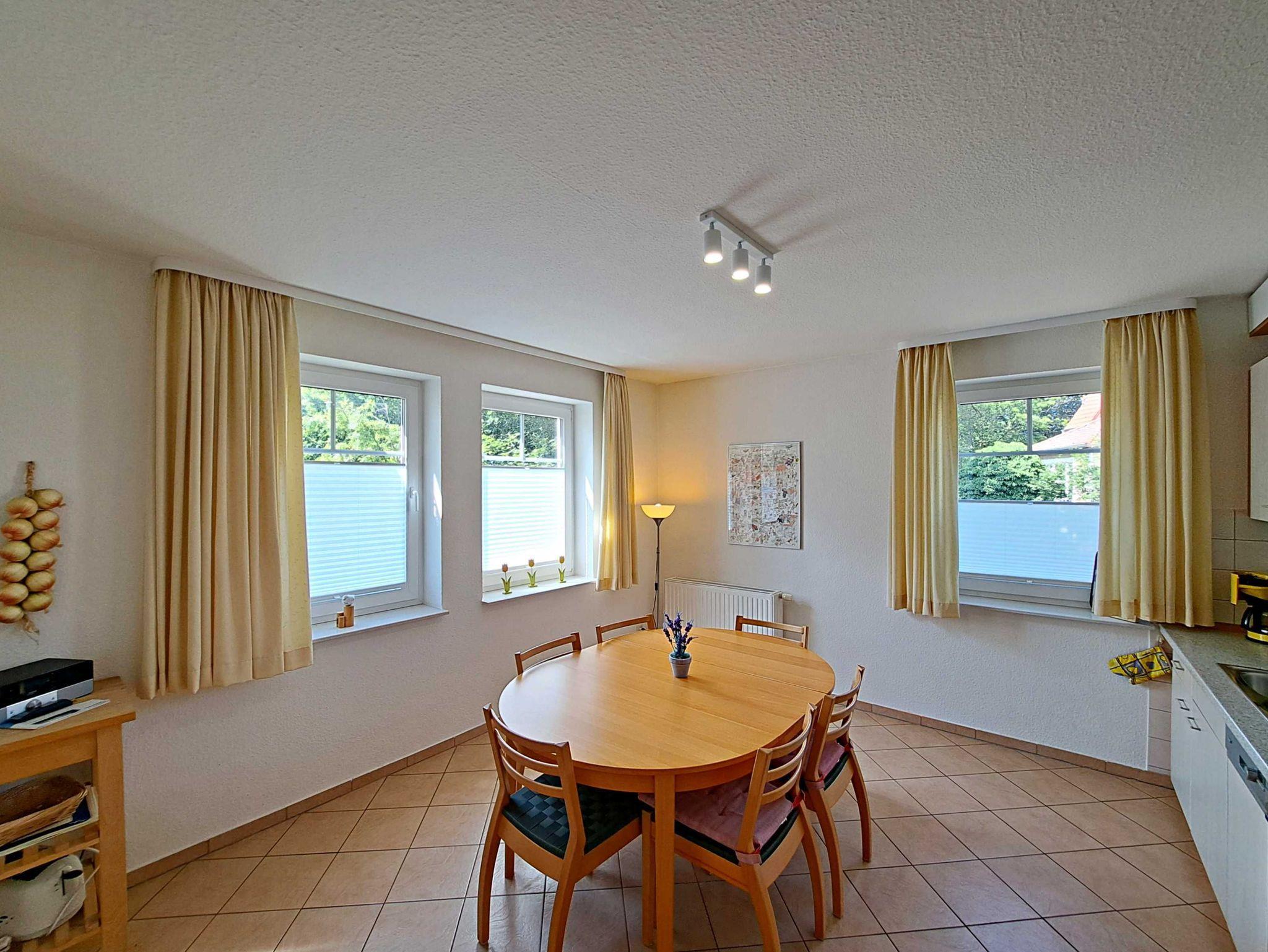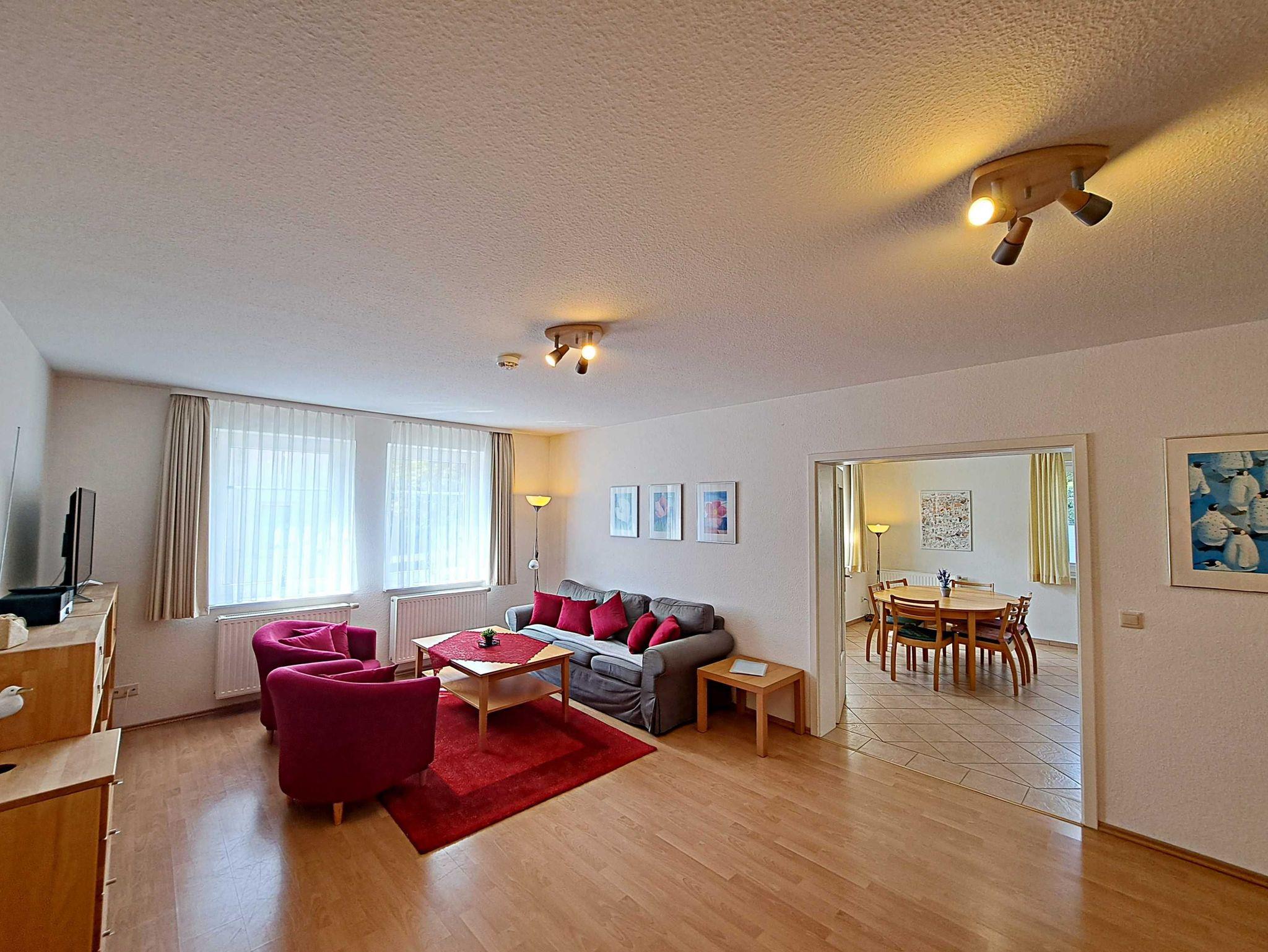 Herzlich willkommen in dieser komfortablen und geschmackvoll eingerichteten 2-Raum-Ferienwohnung, welche sich in der 1. Etage befindet! Mit einer großzügigen Fläche von 67 m² bietet sie Platz für bis zu 4 Erwachsene und ein kleines Kind bis 3 Jahre. Das gemütliche Schlafzimmer ist mit einem Doppelbett ausgestattet, während im Wohnzimmer ein praktisches Doppelschrankbett auf Sie wartet. Die moderne Küche lädt mit einem Essplatz und hochwertigen Geräten wie einem Ceranherd mit Backofen, einer Kühl-/Gefrierkombination und einem Geschirrspüler zum Kochen ein. Selbstverständlich sind auch Geschirr, eine Kaffeemaschine, eine Kaffeepadmaschine, Wasserkocher und eine Mikrowelle vorhanden, damit Sie sich wie zu Hause fühlen können. Für Ihre Unterhaltung sorgen zwei Kabel-TV-Geräte (einmal im Wohnzimmer und einmal im Schlafzimmer) sowie eine kleine HiFi-Anlage. Das Tageslicht-Bad mit Dusche und WC rundet das Angebot ab. Genießen Sie zudem die frische Luft auf dem Balkon zur Ostseite, der vom Schlafzimmer aus zugänglich ist. Die Erstausstattung an Bettwäsche und Handtüchern wird Ihnen zur Verfügung gestellt. Bitte denken Sie daran, Badetücher für den Strand und Geschirrtücher selbst mitzubringen. Ein abschließbarer Kellerraum, WLAN sowie ein Pkw-Stellplatz stehen Ihnen ebenfalls zur Verfügung.