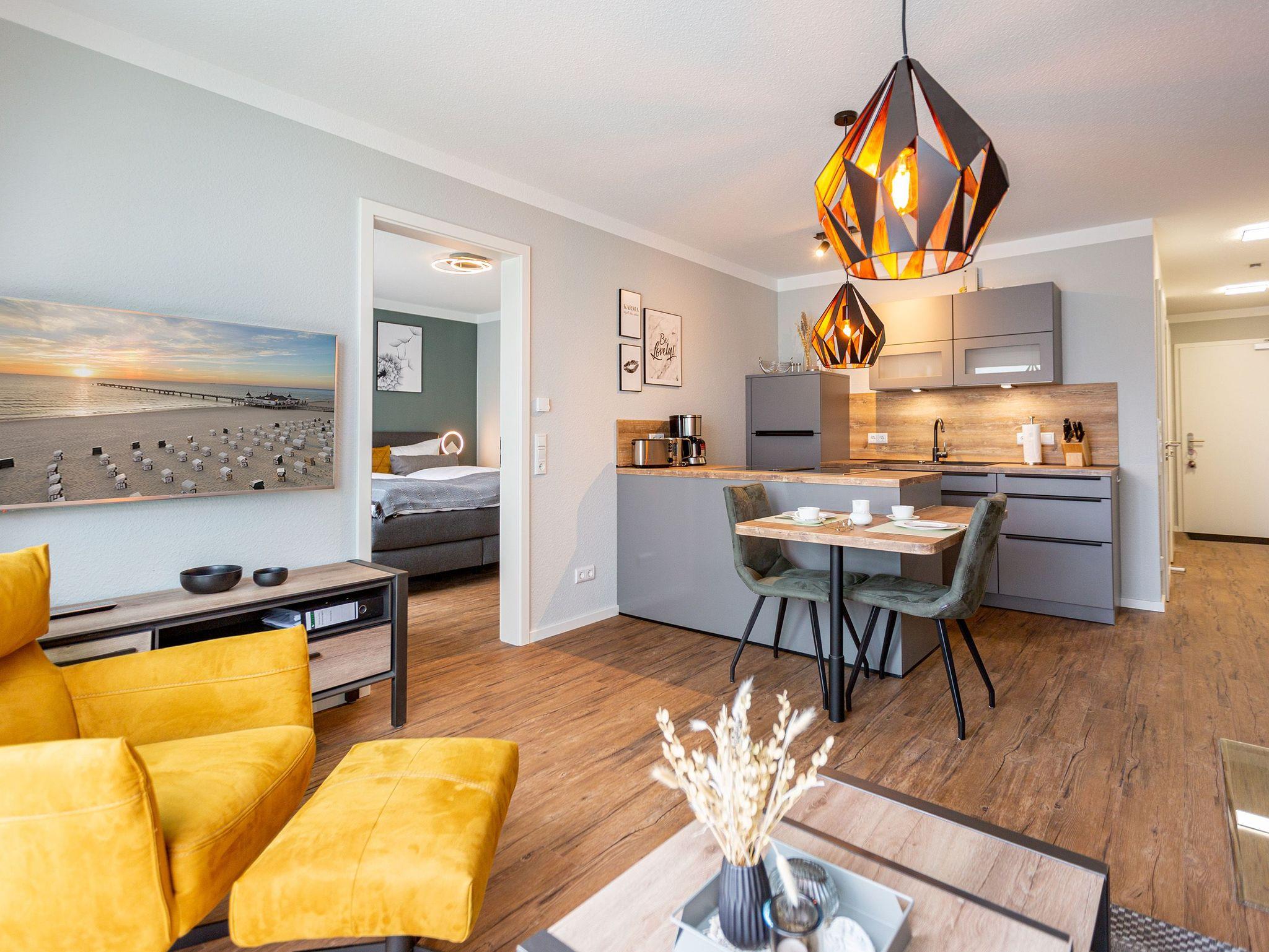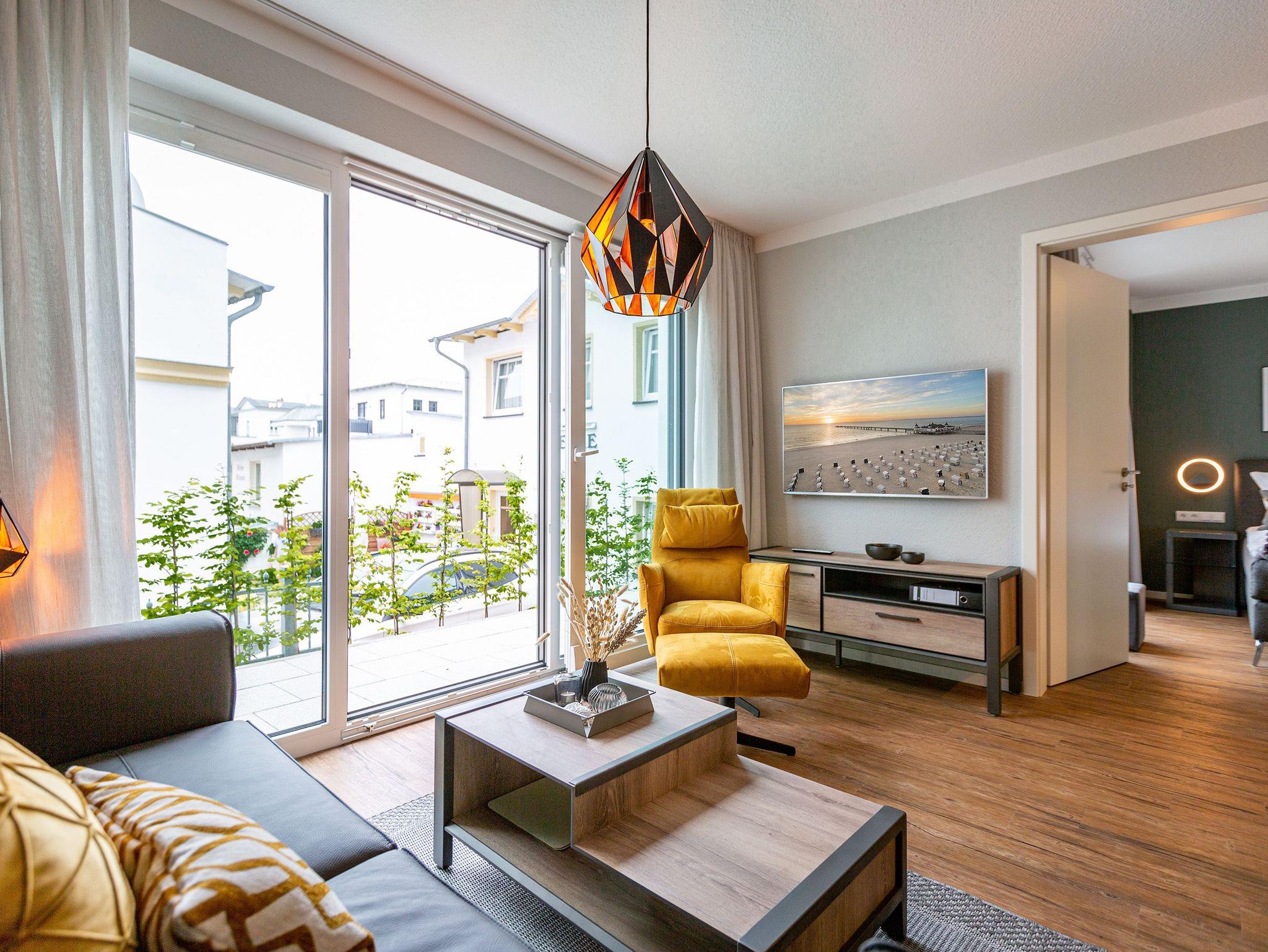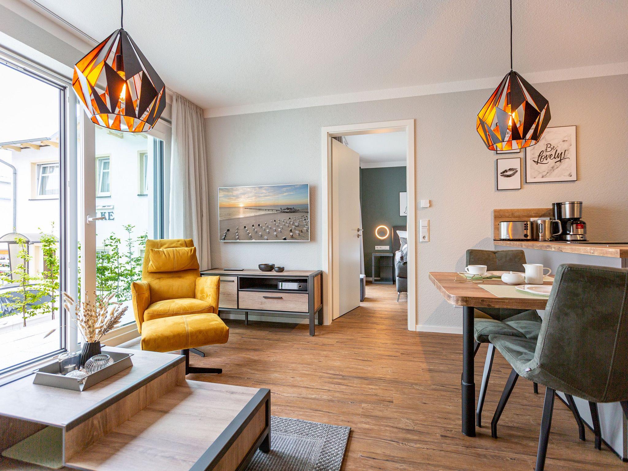 Stilvolles 54m² Ferienappartement mit Kamin, Sauna und WLAN, nur 250m vom Strand in Ahlbeck entfernt.