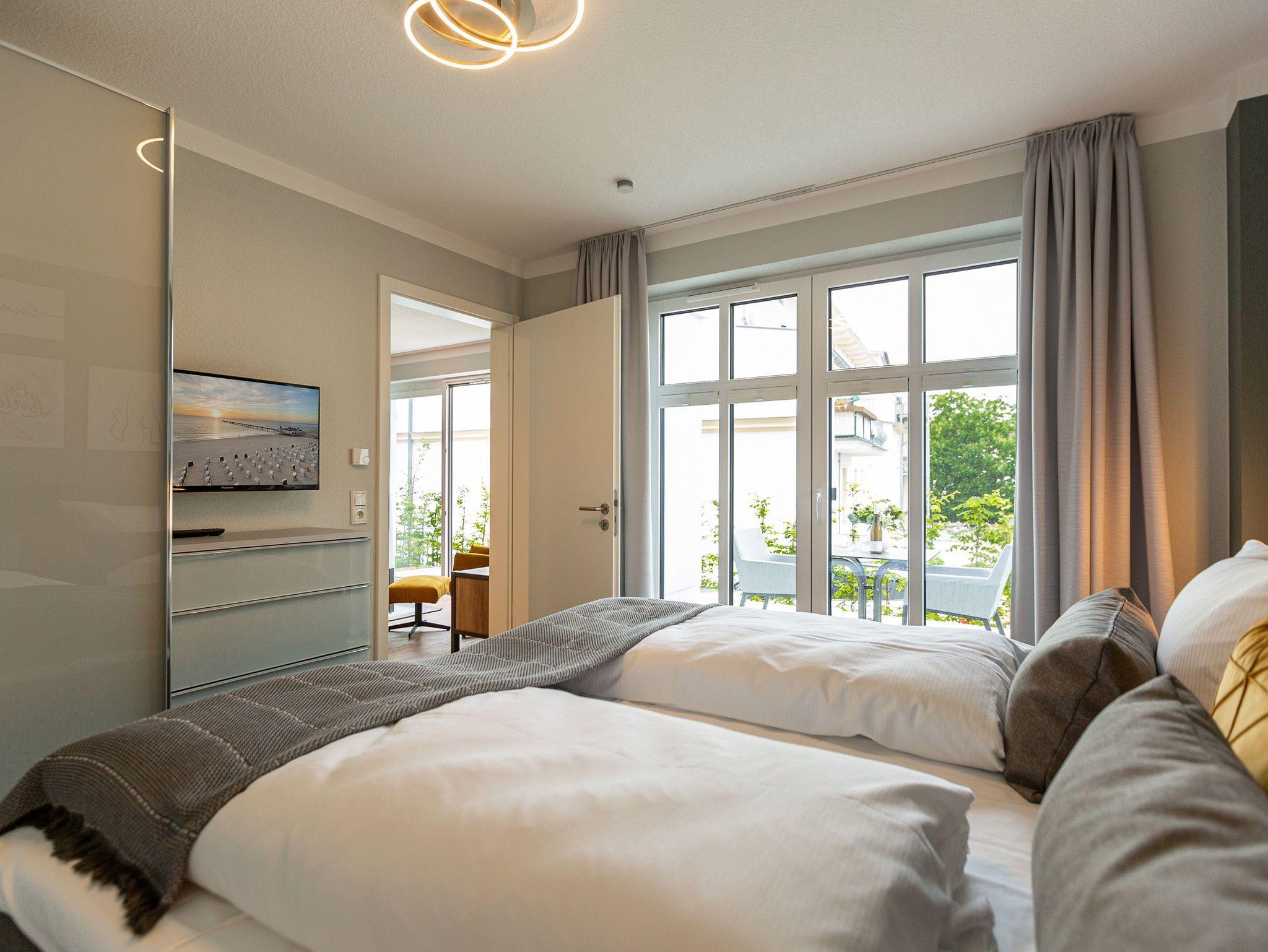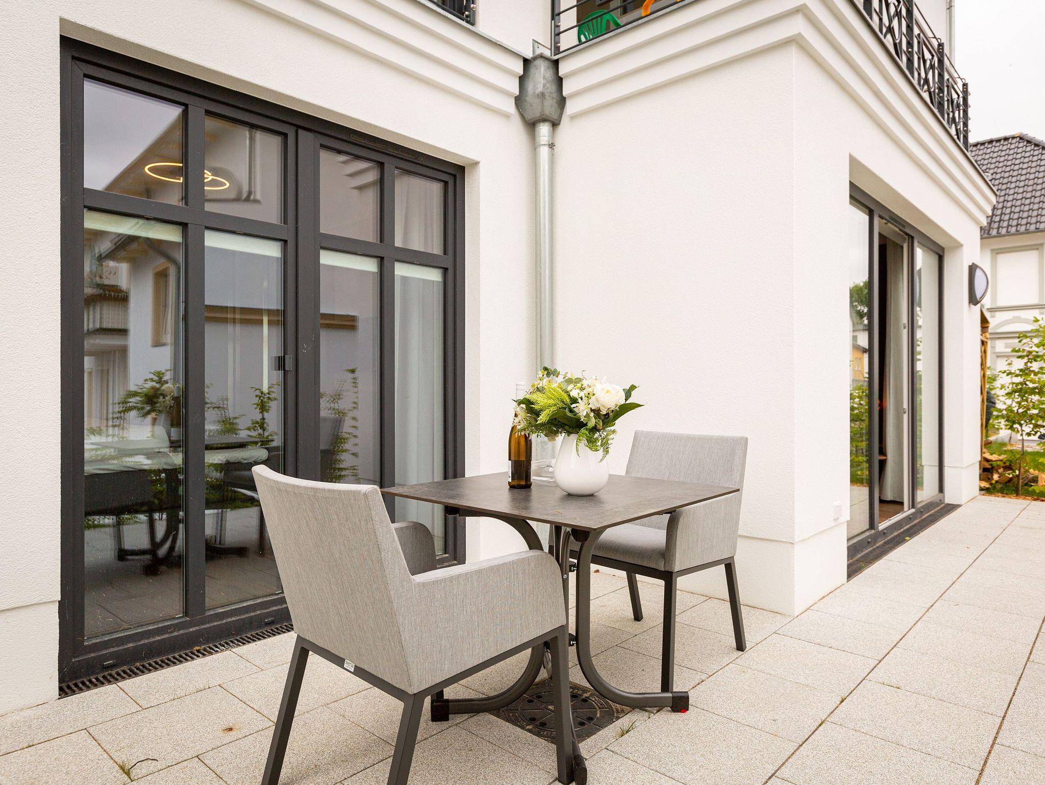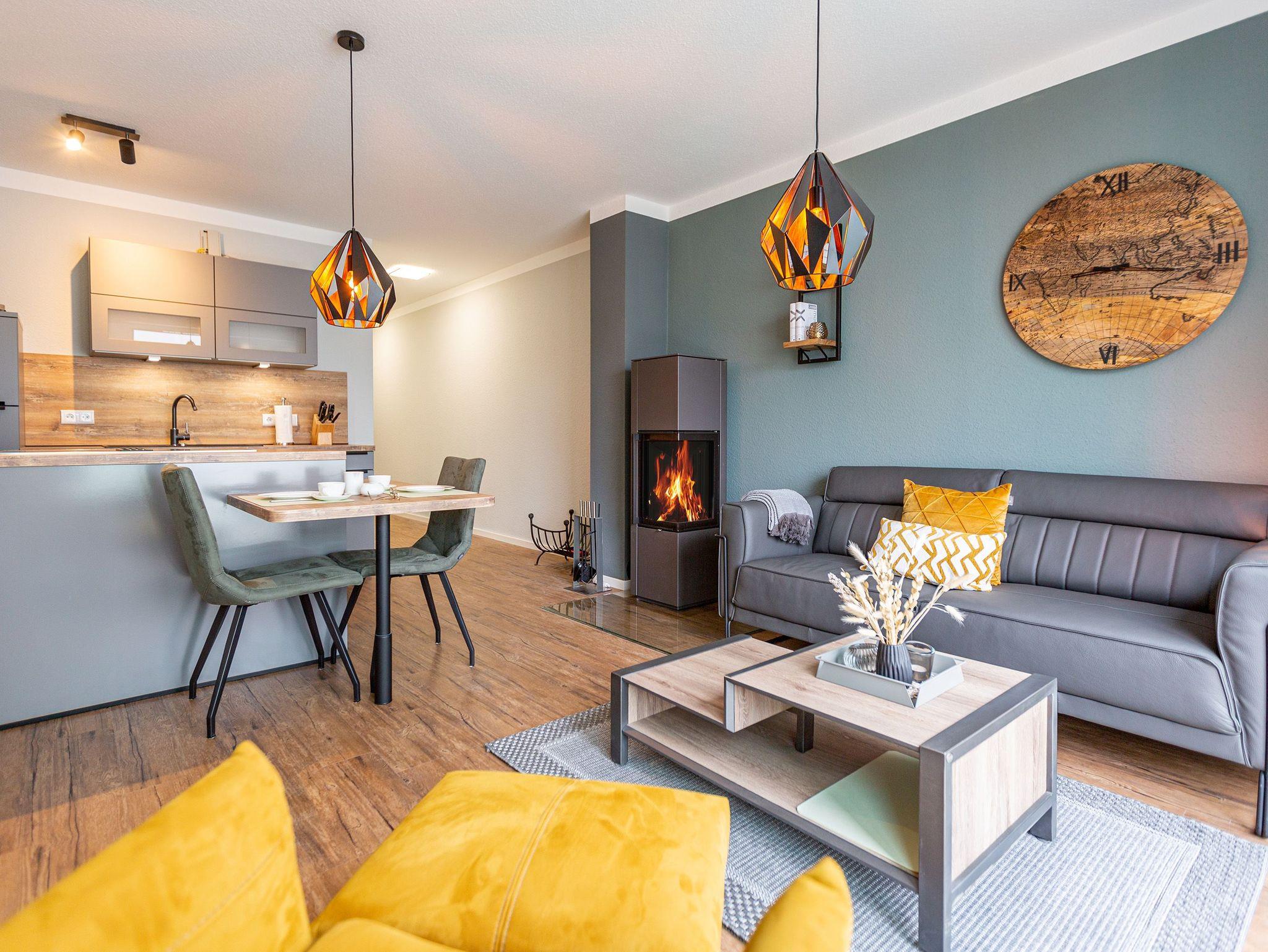 Stilvolles 54m² Ferienappartement mit Kamin, Sauna und WLAN, nur 250m vom Strand in Ahlbeck entfernt.