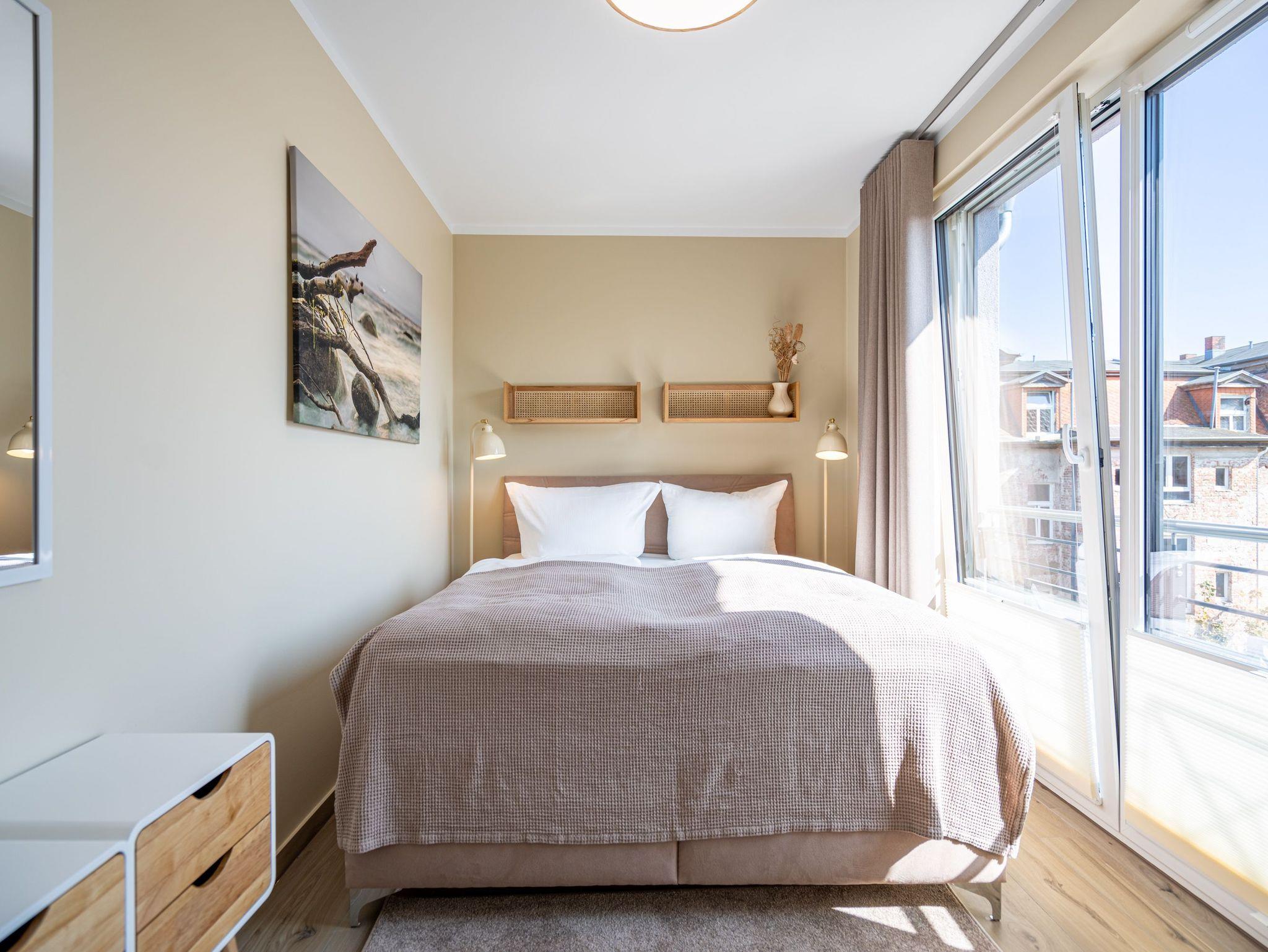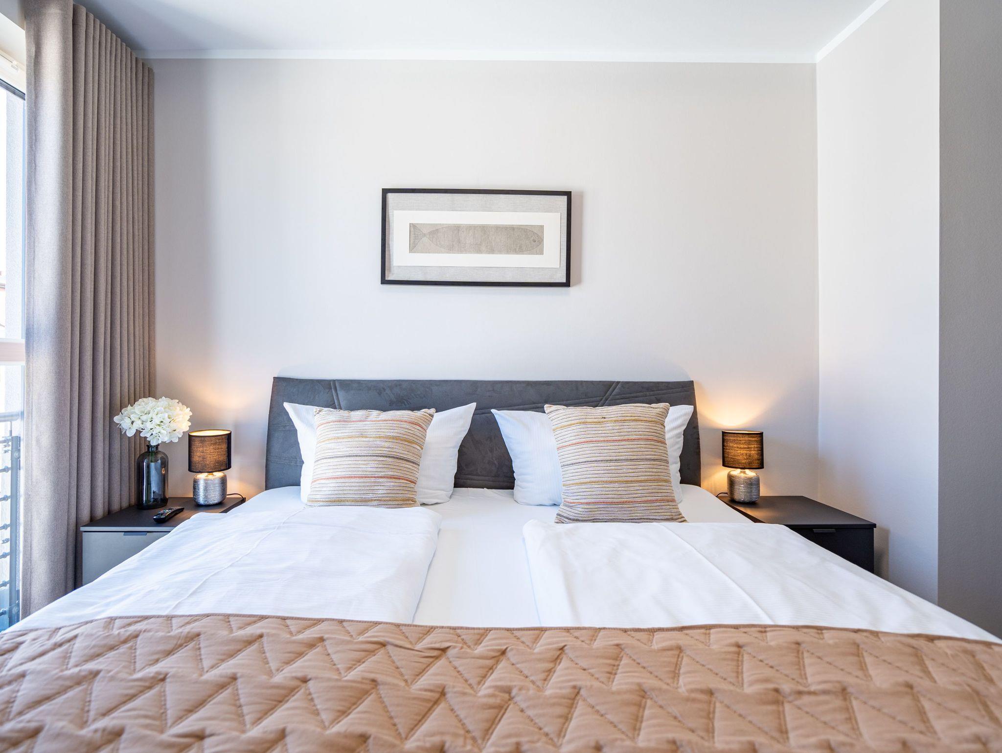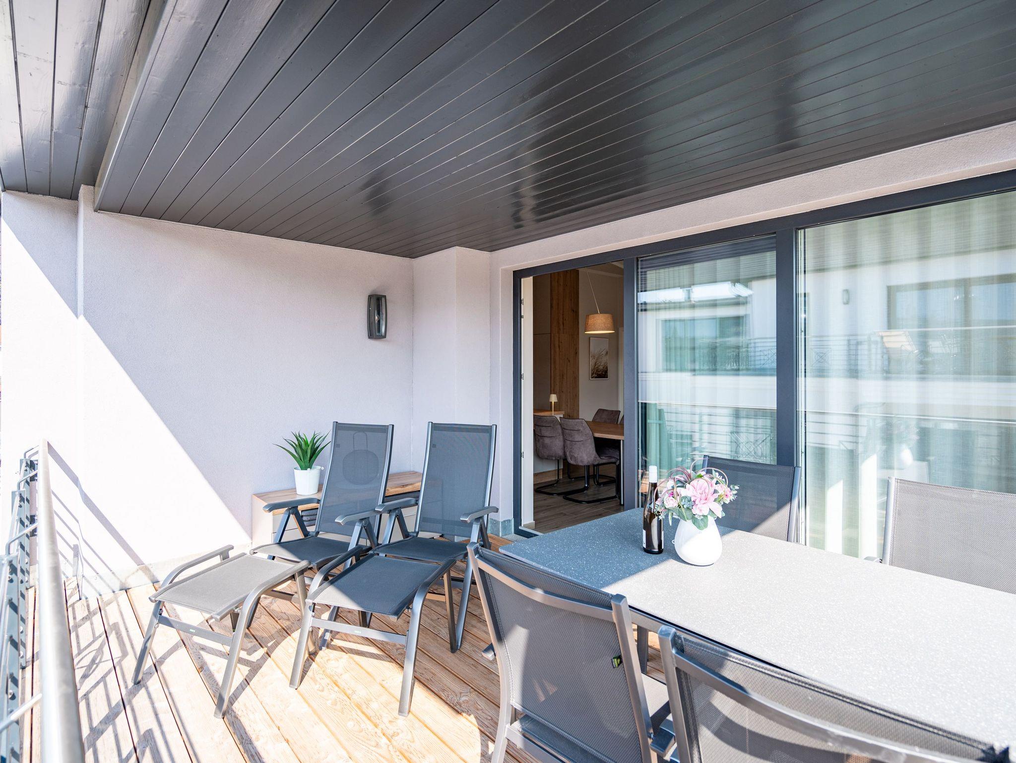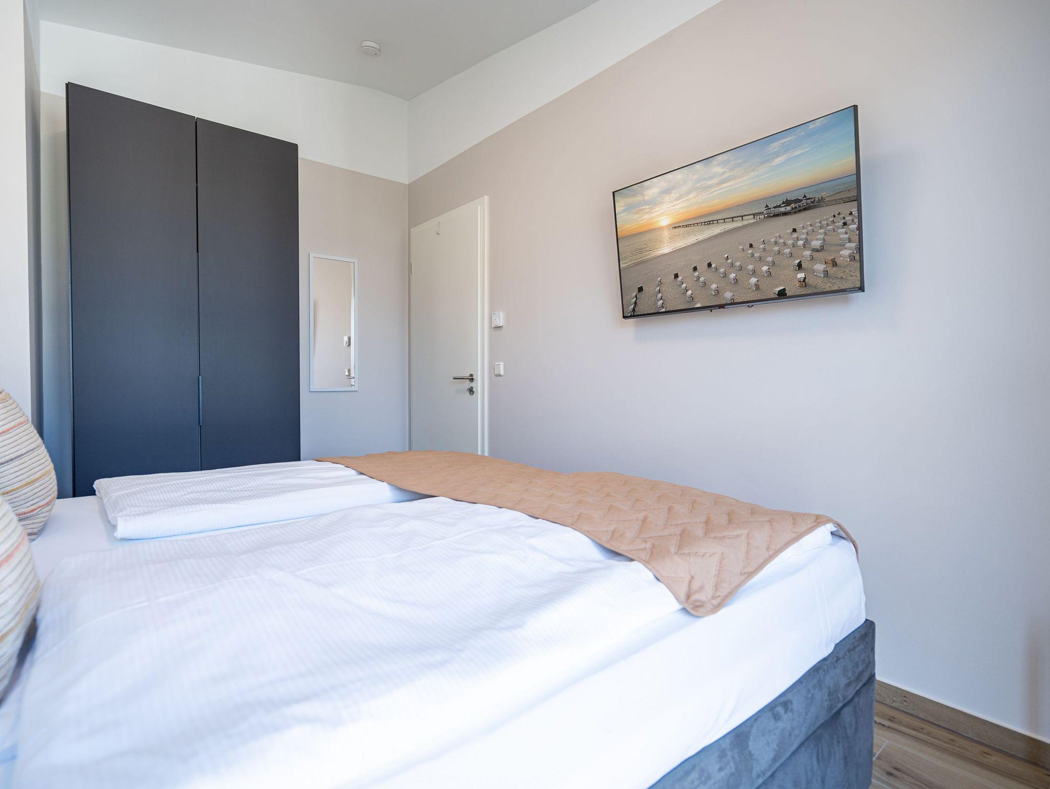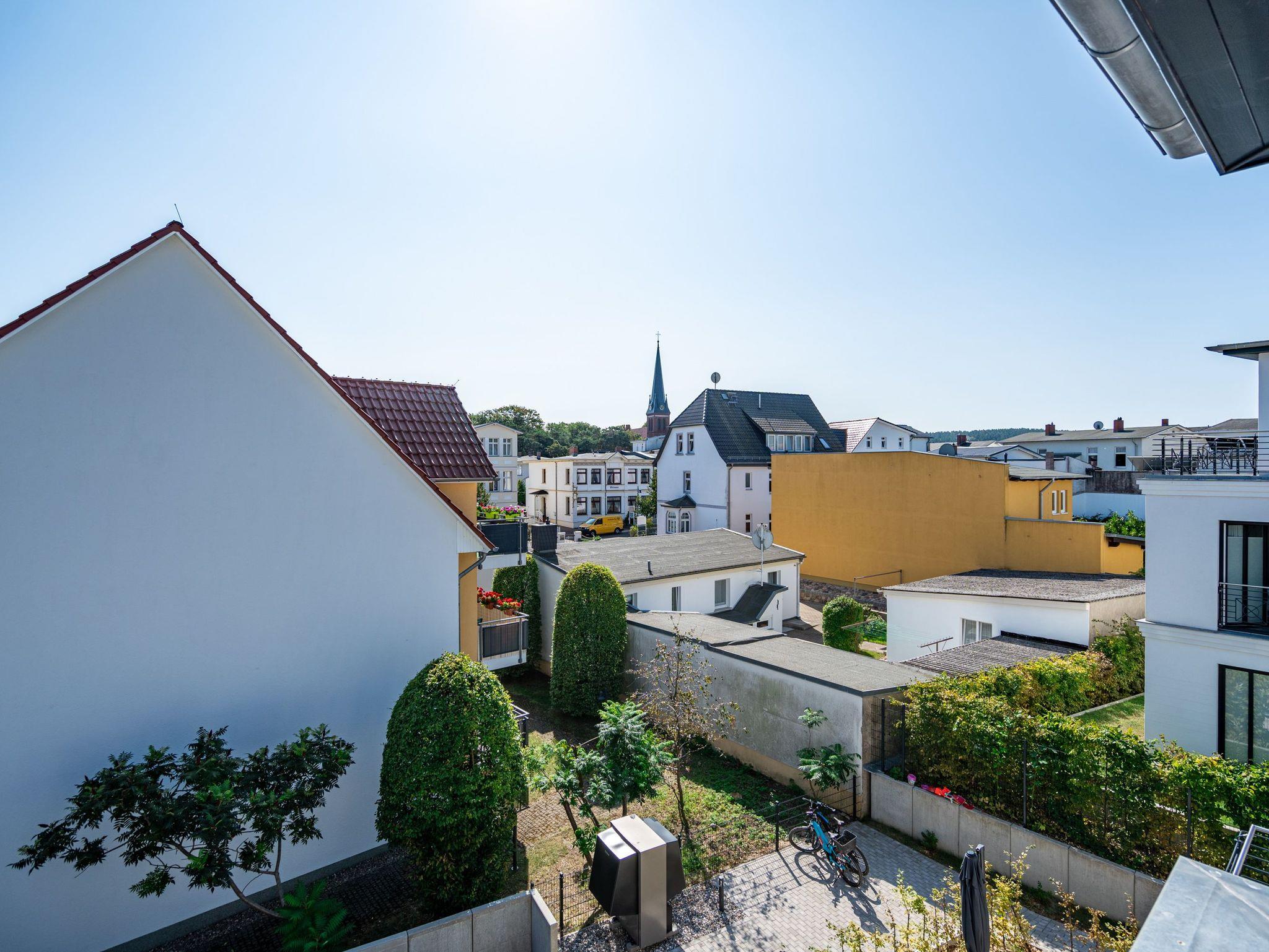 Moderne 3-Raum-Ferienwohnung mit Sauna, Kamin und Balkon in Ahlbeck, nahe Strand und Radwegen.