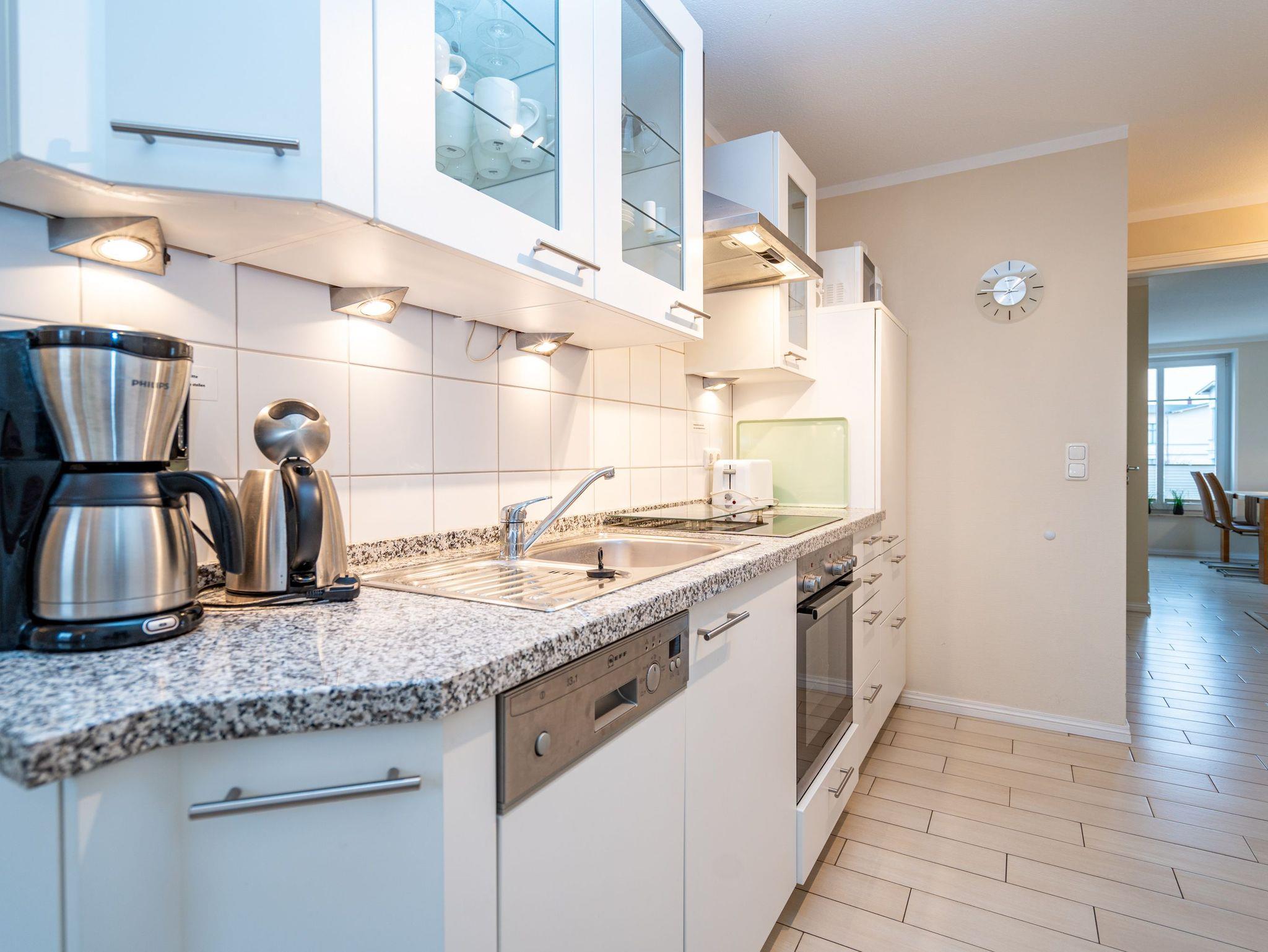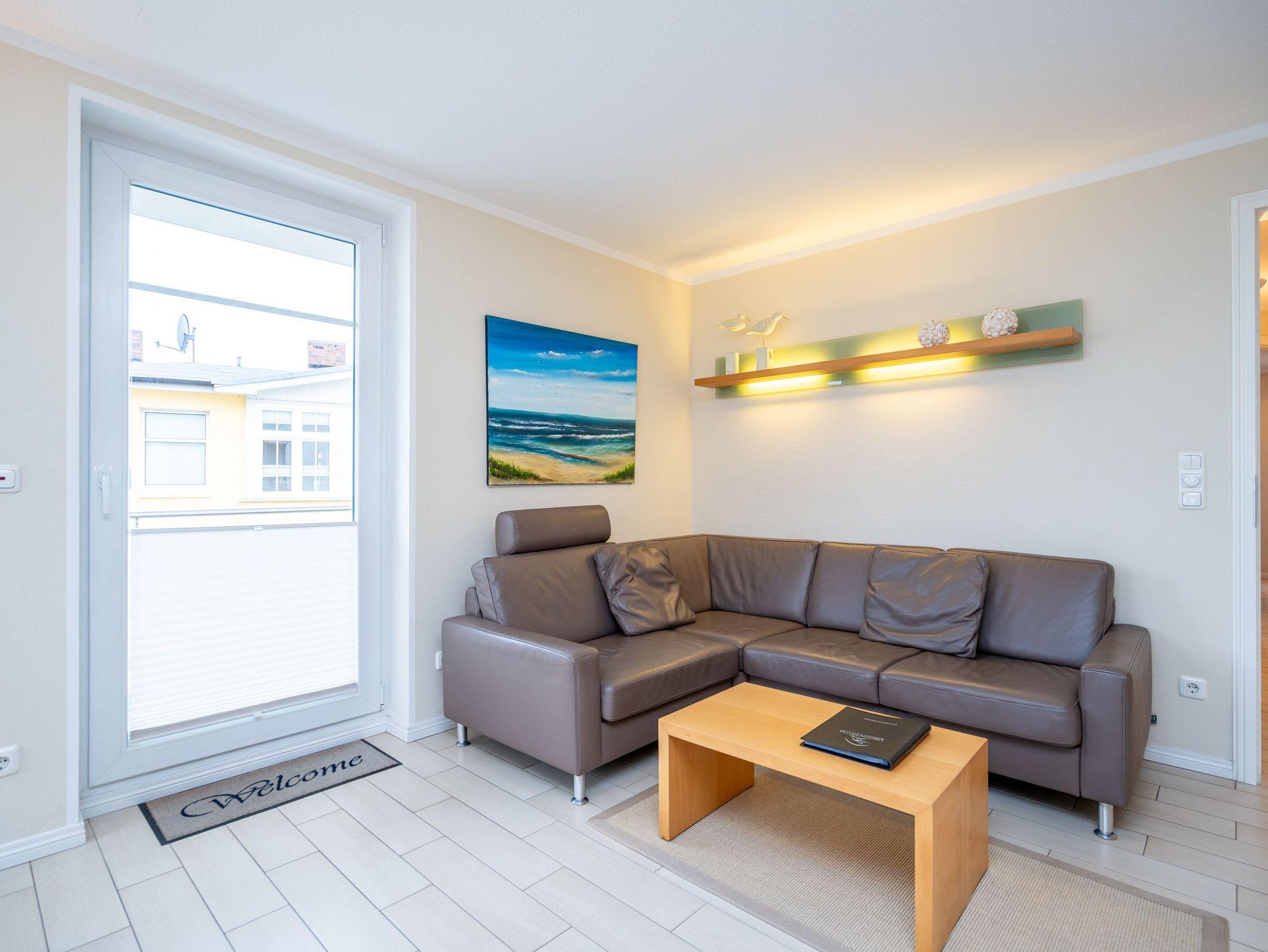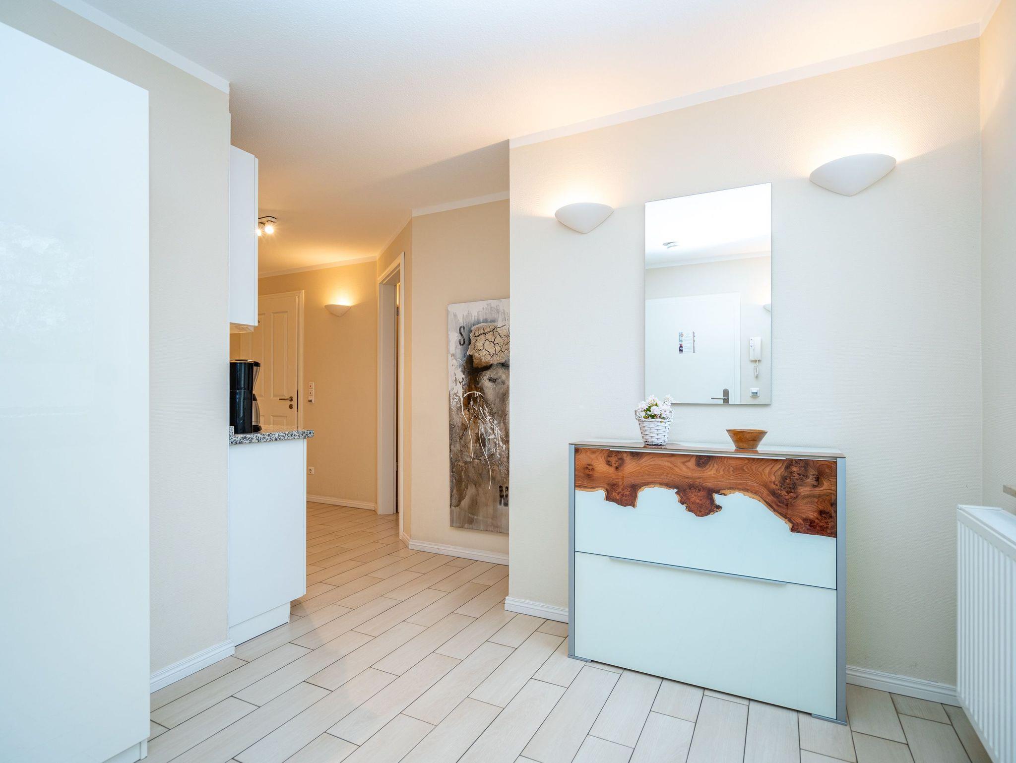 Moderne Ferienwohnung Weiße Düne mit Balkon, Strandkorb und Tiefgaragenstellplatz nahe Strand und Zentrum.