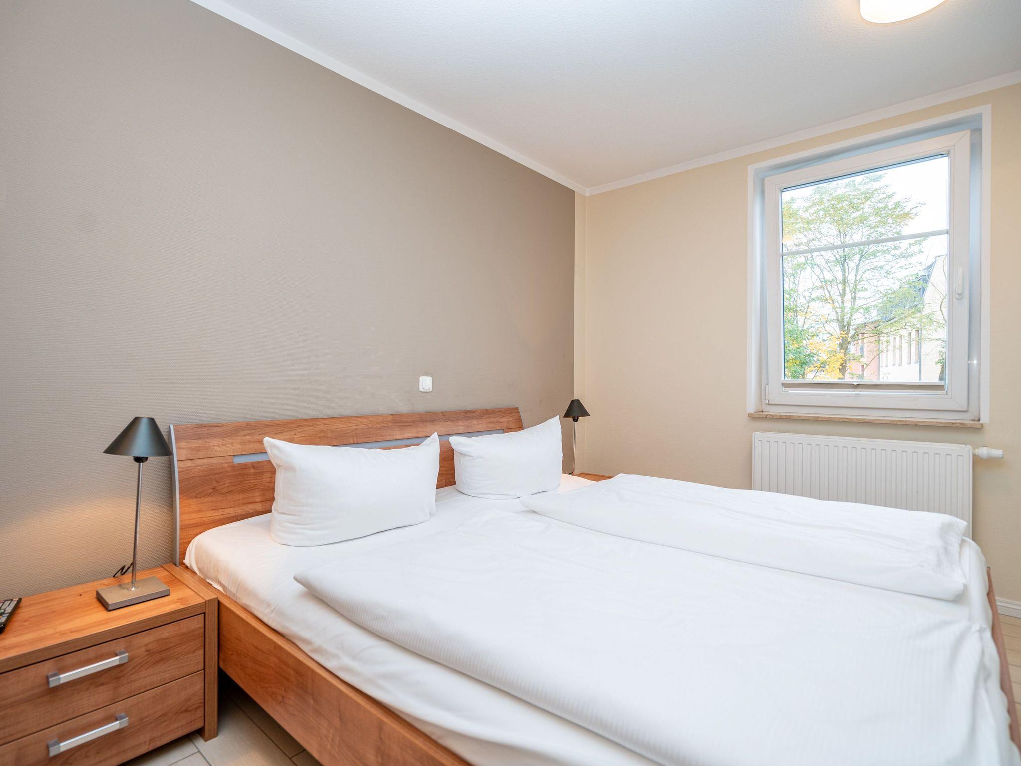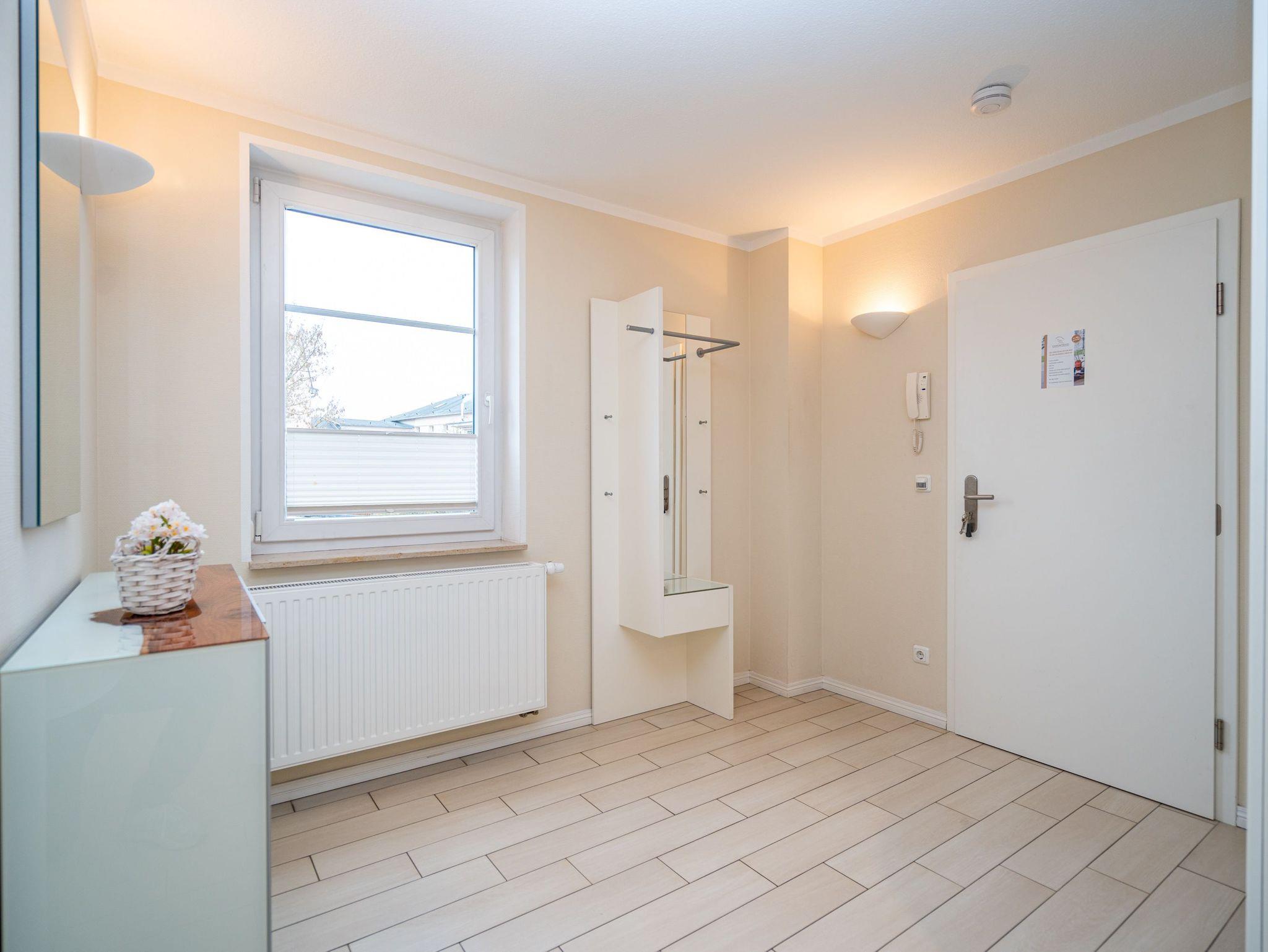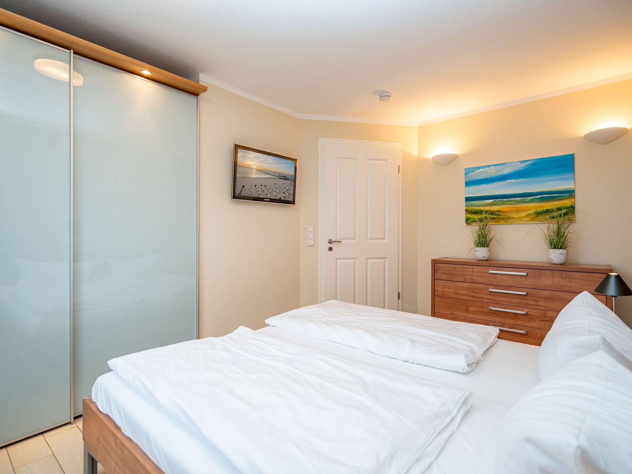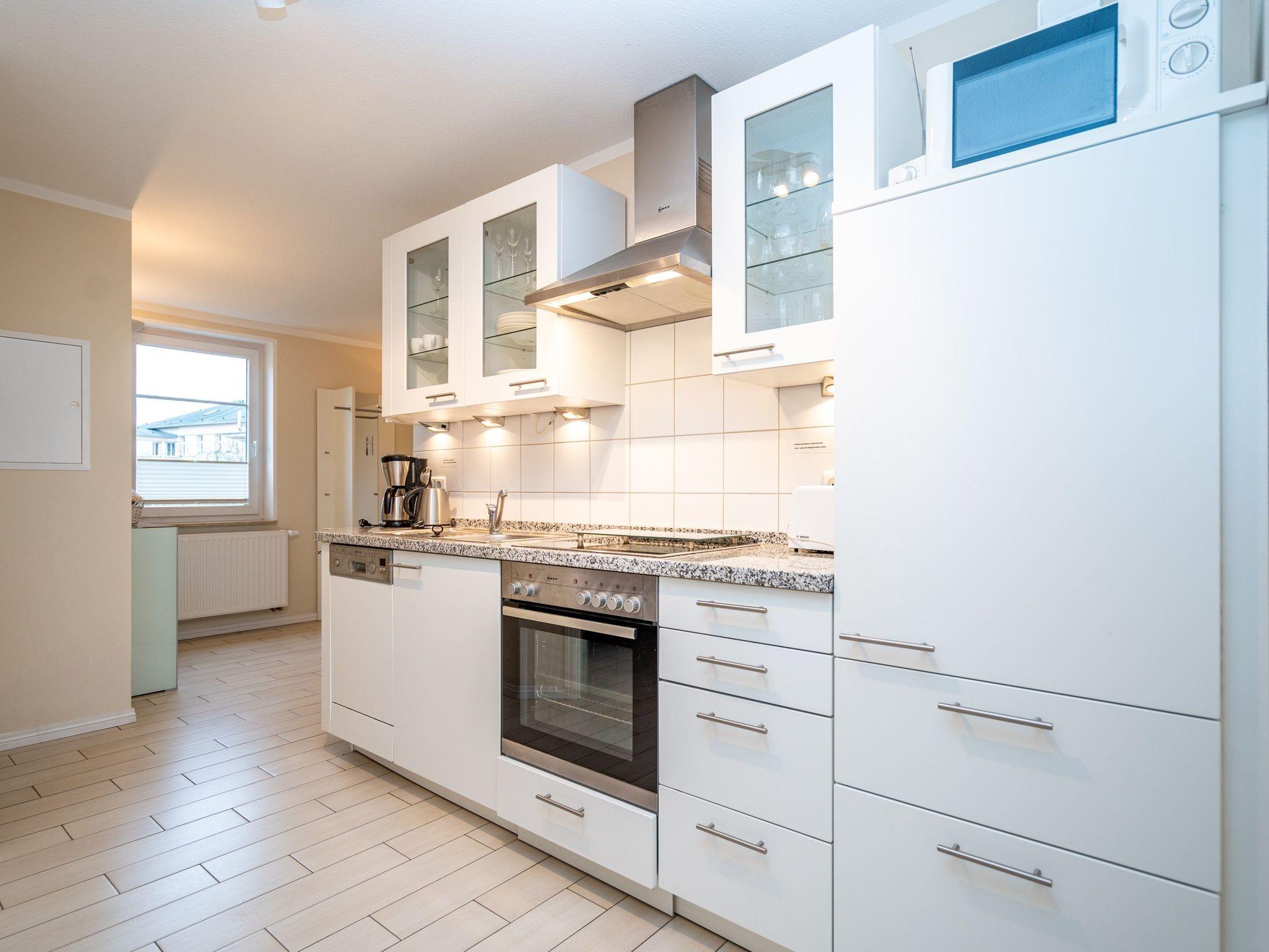Moderne Ferienwohnung Weiße Düne mit Balkon, Strandkorb und Tiefgaragenstellplatz nahe Strand und Zentrum.