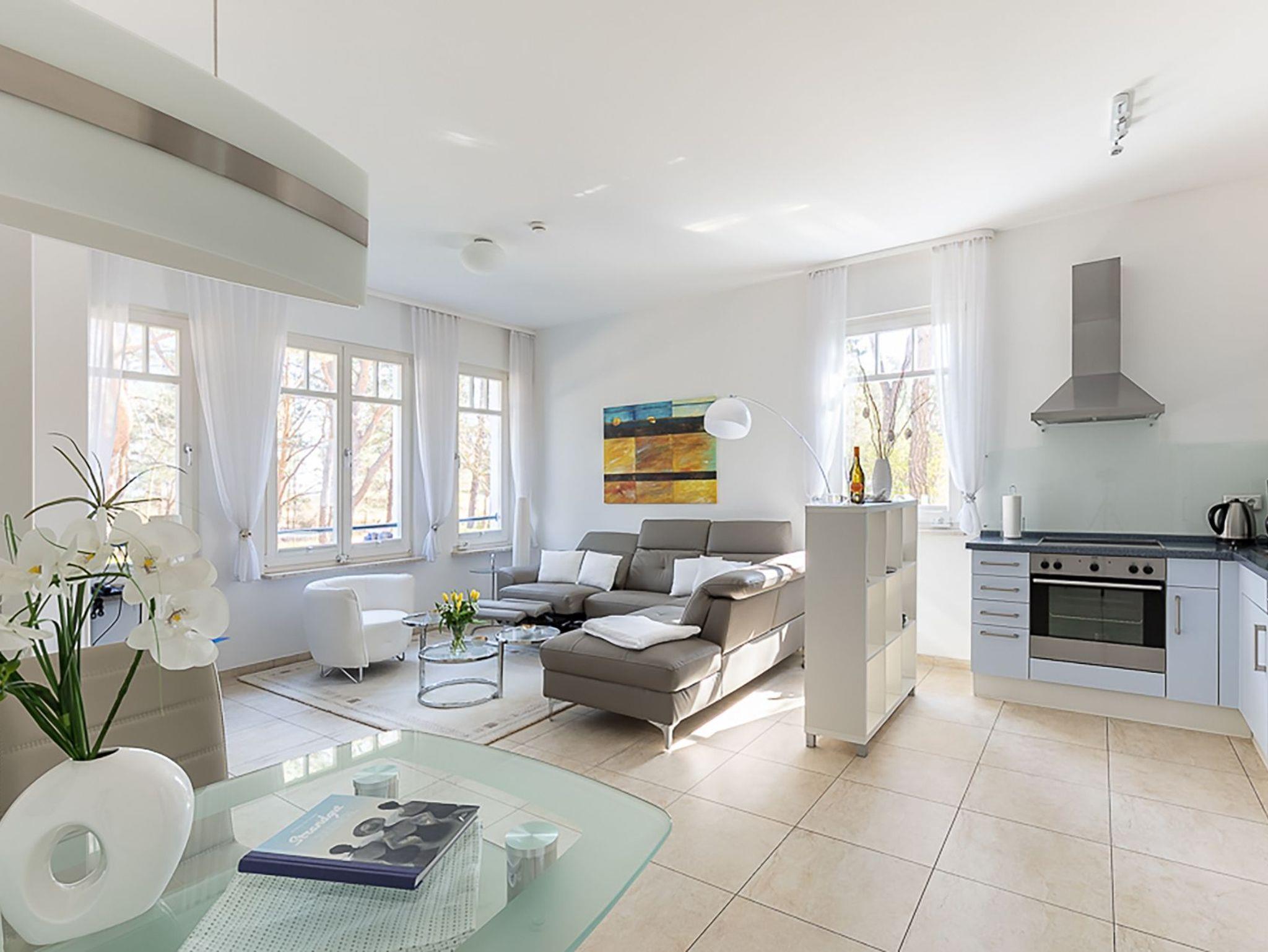 Helles 2-Raum-Apartment mit Ostseeblick und Wellnessbereich in Ahlbeck, nur wenige Schritte vom Strand entfernt.