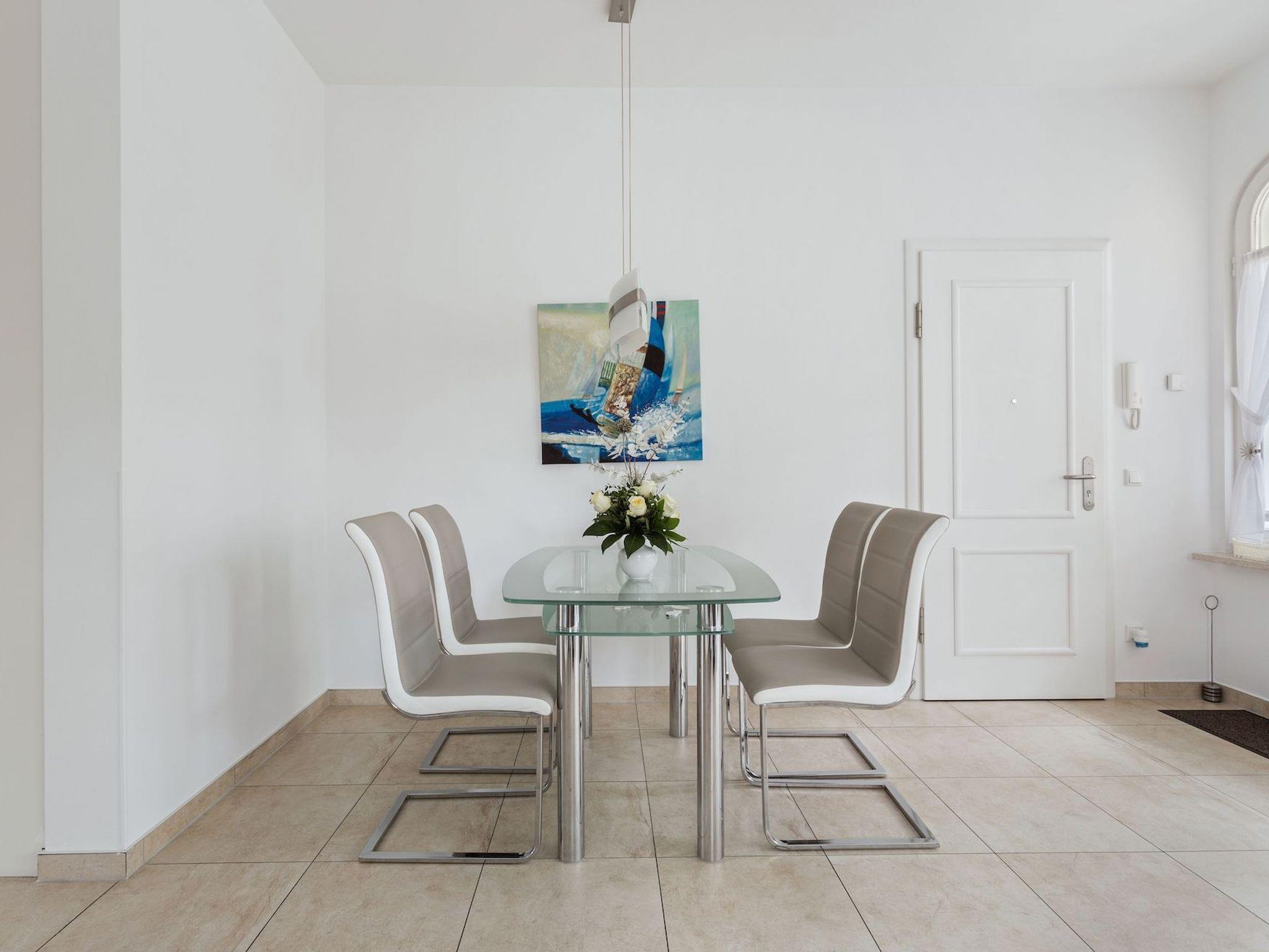 Das 60 m² große 2-Raum-Apartment Düne bietet Ihnen lichtdurchflutete Räume dank vieler Fenster und liegt im gemütlichen Hochparterre ? perfekt für 2 Erwachsene und 1 Kind bis 16 Jahre. Vom Wohnbereich genießen Sie durch die begrünte Düne einen Blick auf die Ostsee. Im Wohnraum erwarten Sie eine elegante sandgraue Ledercouch, stilvolle Essstühle, ein moderner UHD-LED-TV sowie eine offene, voll ausgestattete Küche. Das Schlafzimmer verwöhnt Sie mit einem komfortablen Boxspringbett (2,00 m x 1,80 m) und einem beleuchteten, 2 m breiten Kleiderschrank. Für Kinder bis 16 Jahre steht hier eine gemütliche Recamiere als zusätzliche Schlafgelegenheit bereit. Da sich unter dem Schlafzimmer der ebenerdige Wellnessbereich befindet, schlafen Sie angenehm erhöht ? wie im ersten Stock ? und blicken aus dem Fenster auf einen kleinen Park. Das Badezimmer verfügt über Dusche, Waschtisch, WC, Fenster und praktische Ablagen. Alle Fenster zur Ost- und Südseite sind mit außenliegenden, wärmereflektierenden Sonnenschutzrollos ausgestattet. Das schwellenfreie Apartment bietet durchgehend Fußbodenheizung, zwei gemütliche Außensitzplätze sowie einen PKW-Stellplatz direkt am Haus.
