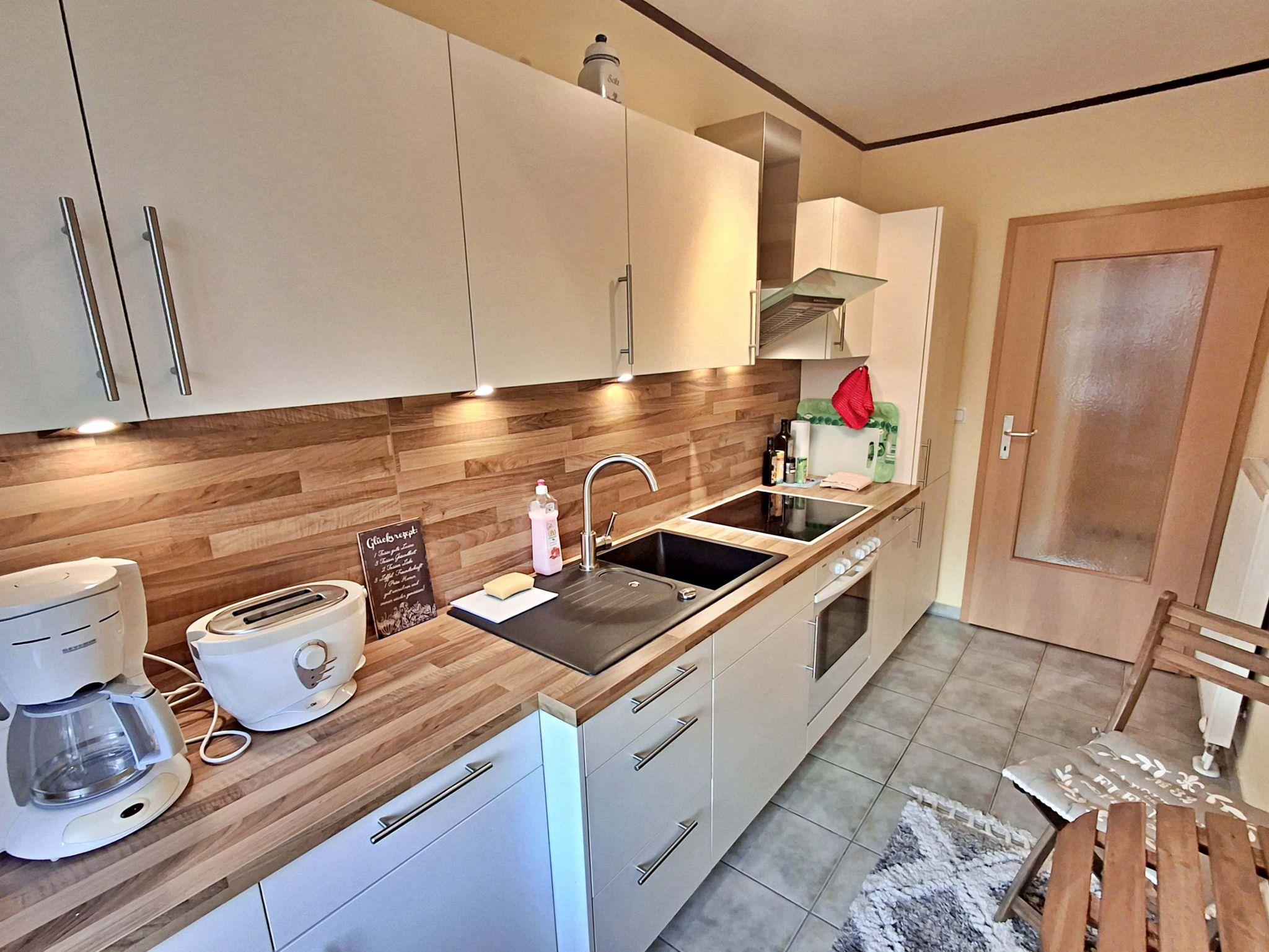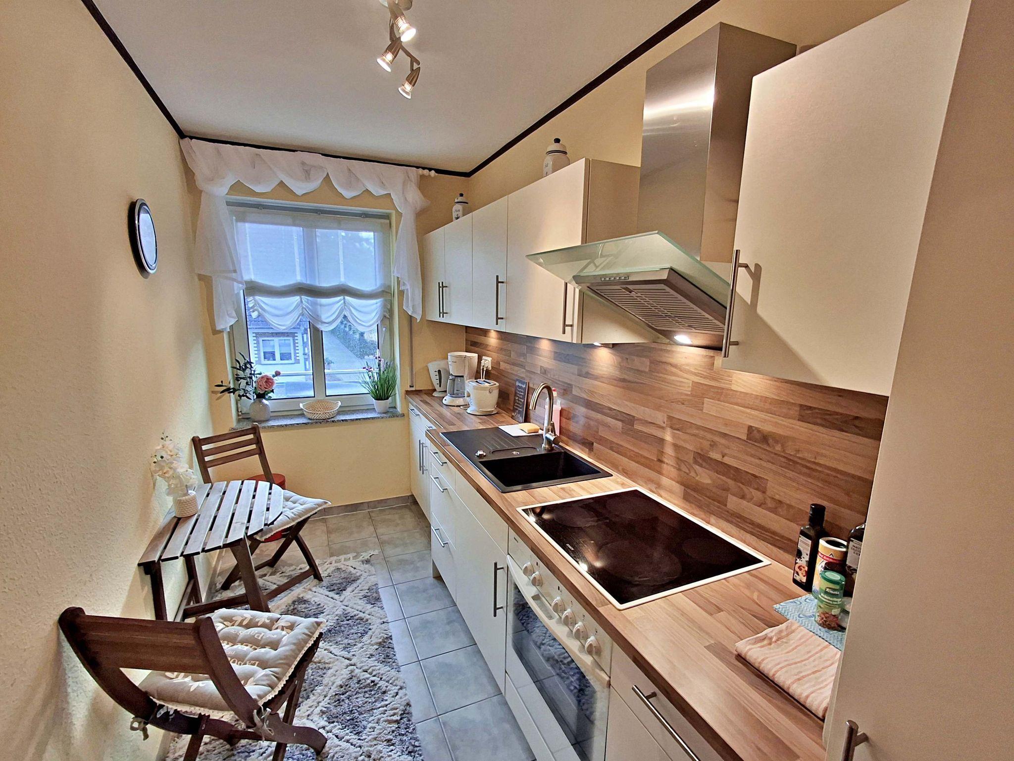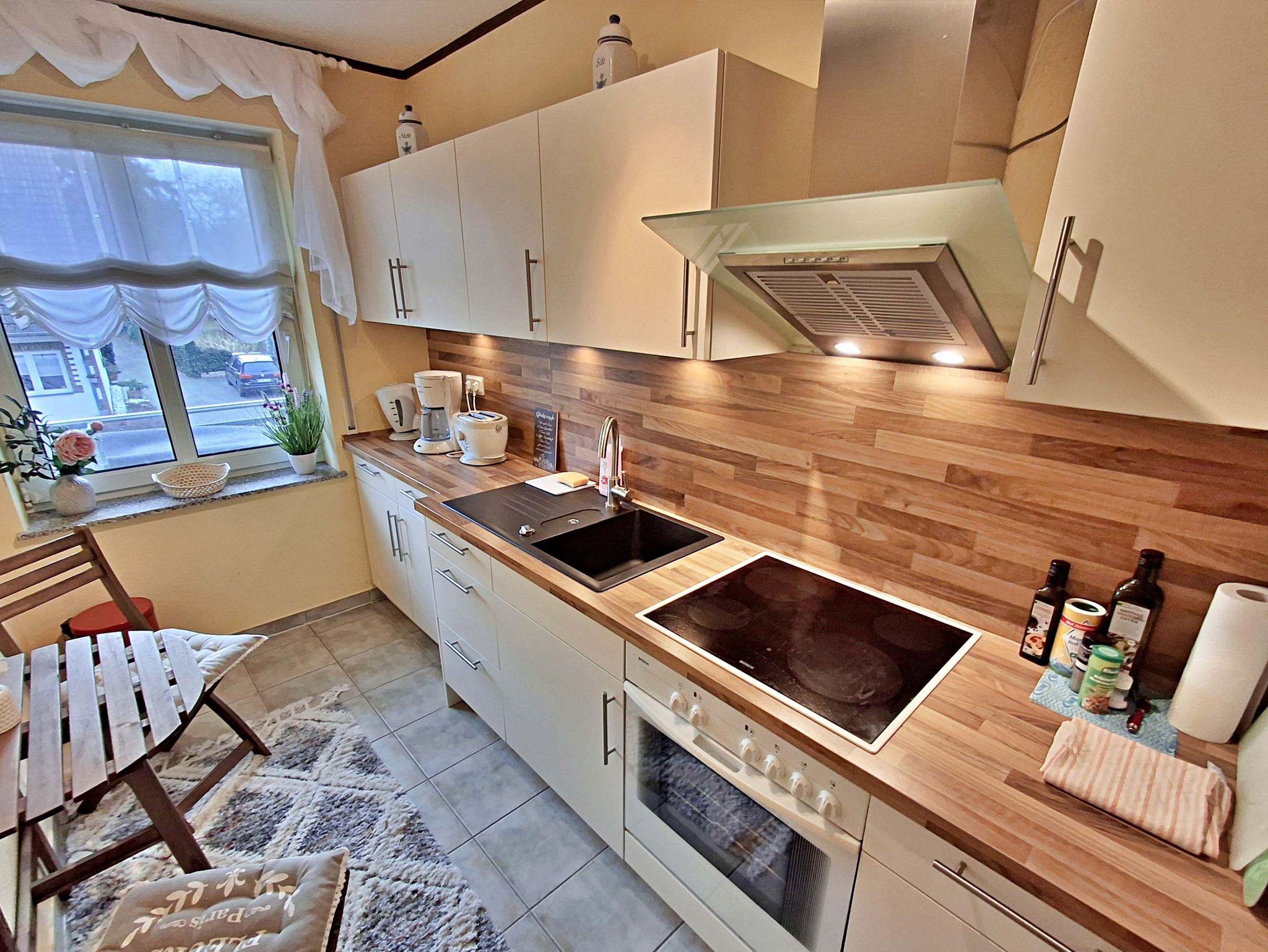 Mit einer großzügigen Fläche von ca. 58 m² bietet Ihnen diese charmante Wohnung alles, was Sie für einen angenehmen Aufenthalt benötigen und genügend Platz für bis zu 2 Personen. Sie befindet sich in der 1. Etage eines kleinen Mehrfamilienhauses und verfügt über ein separates Schlafzimmer mit einem komfortablen Doppelbett. Für Selbstversorger steht Ihnen eine rundum gut ausgestattete separate Küche mit einem kleinen Essplatz zur Verfügung, die keine Wünsche offen lässt. Im Wohnbereich erwartet Sie ein großer Essplatz sowie eine bequeme Sitzgarnitur, ideal zum Entspannen und Verweilen. Ein Flachbildfernseher sorgt für Unterhaltung. Das Badezimmer ist sowohl mit einer Badewanne als auch mit einer Dusche ausgestattet, sodass Sie sich nach einem erlebnisreichen Tag wunderbar erfrischen können. Genießen Sie die frische Luft auf Ihrem eigenen Balkon, der mit bequemen Sitzmöbeln ausgestattet ist - perfekt, um morgens Ihren Kaffee zu genießen oder den Abend bei einem Glas Wein ausklingen zu lassen. Ein Pkw-Stellplatz befindet sich direkt auf dem Grundstück und die Erstausstattung mit Bettwäsche und Handtüchern ist bereits im Preis enthalten. Für Fahrradliebhaber steht ein Fahrradständer vor dem Haus bereit.