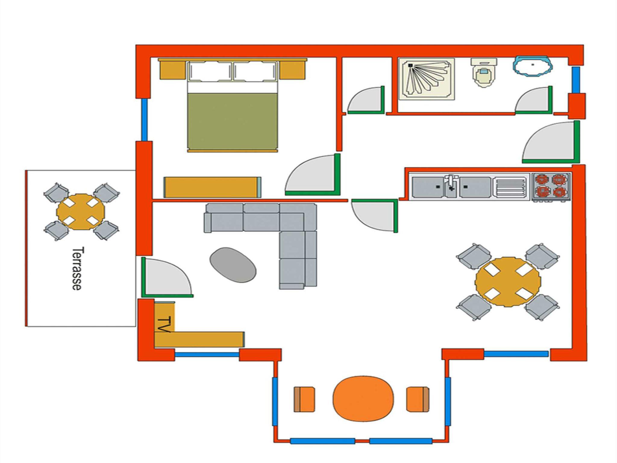 Hier verfügen unsere Gäste u.a. über Internet (Hotspot), Sat-TV, Musikanlage, Video/DVD und eine vollständig ausgestattete Küche (Herd, Kühlschrank mit Gefrierfach , Geschirrspüler, Kaffeemaschine, Toaster, Wasserkocher sowie Mikrowelle auf Wunsch).