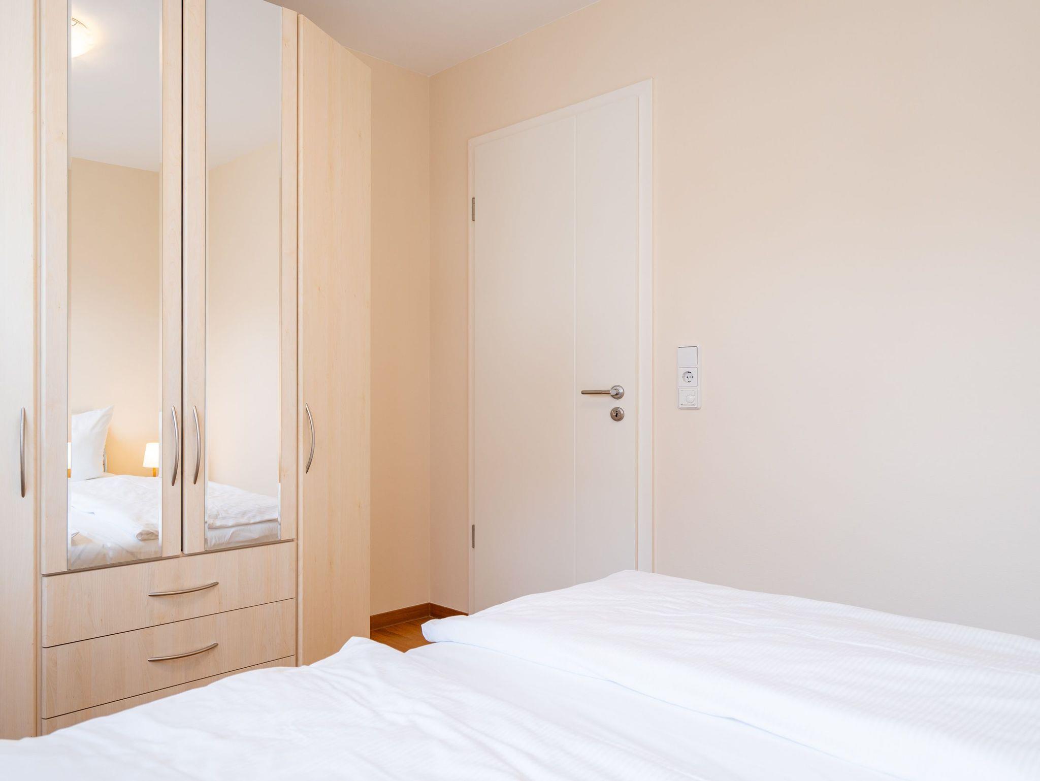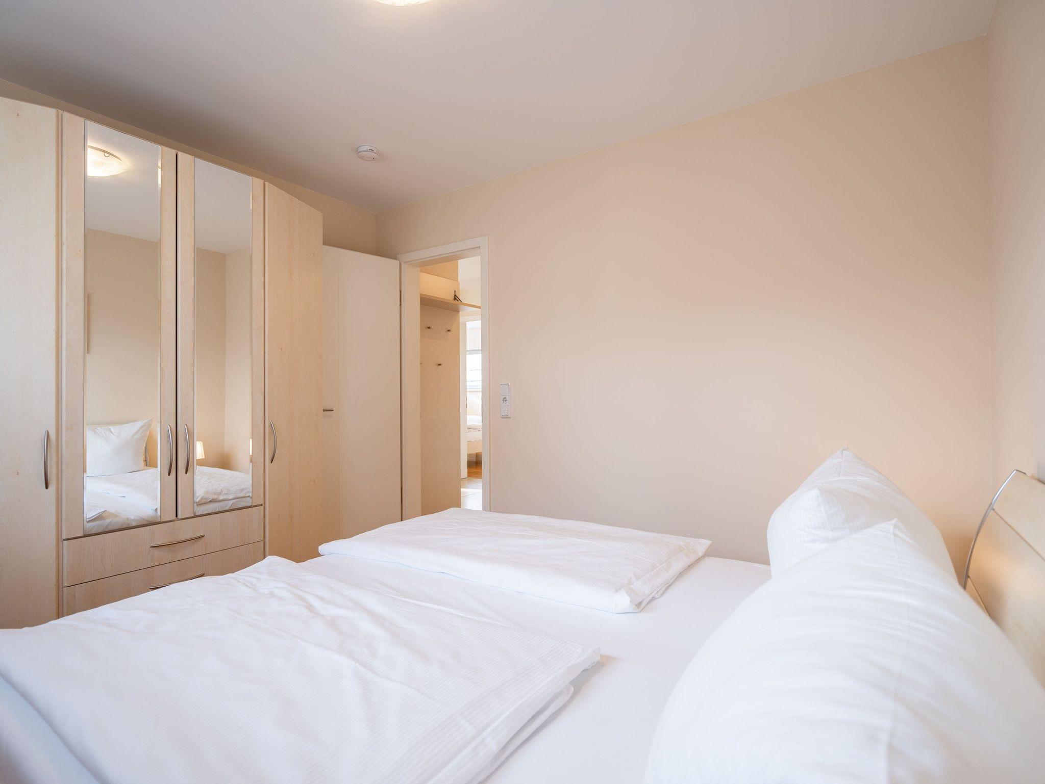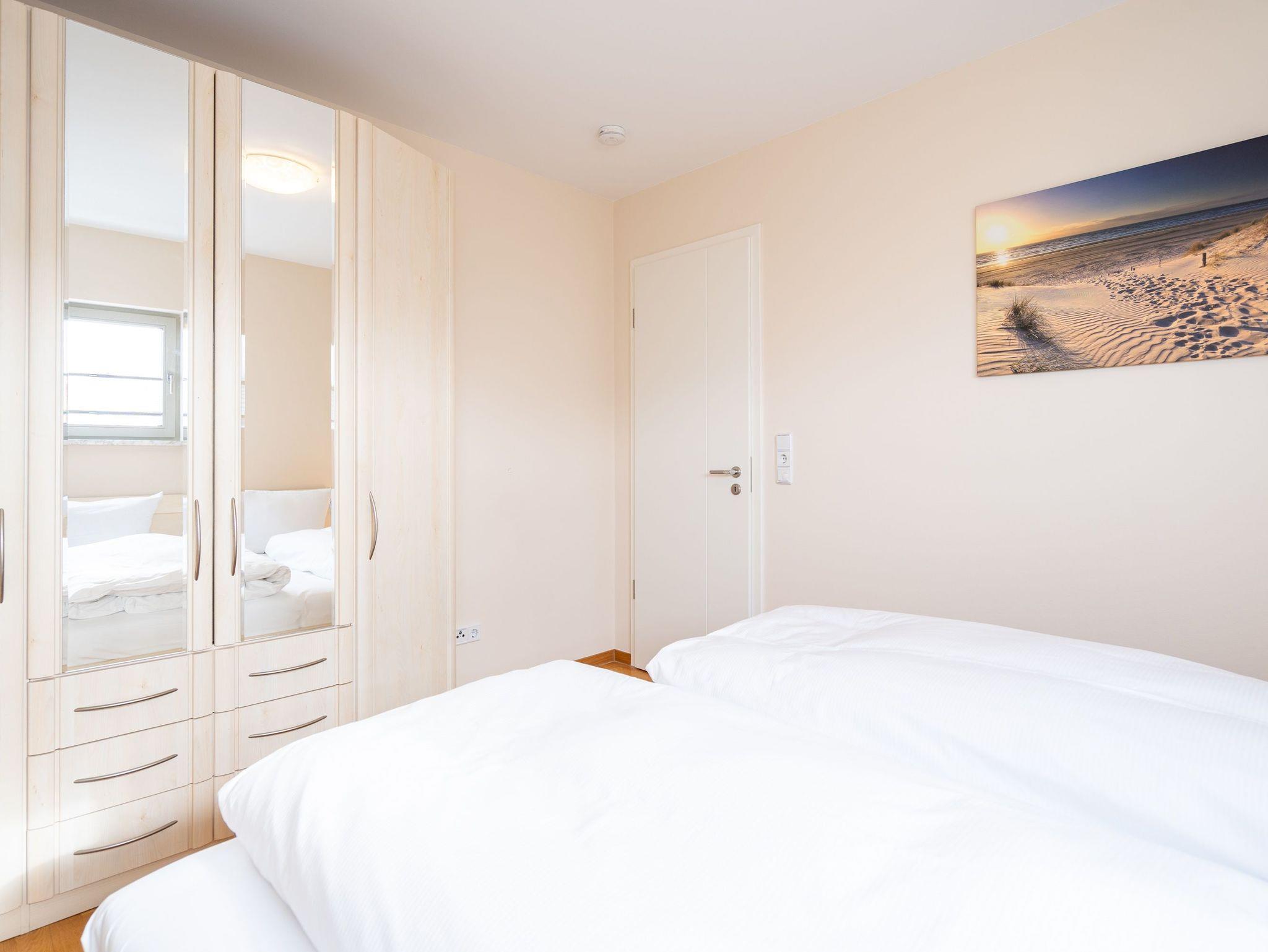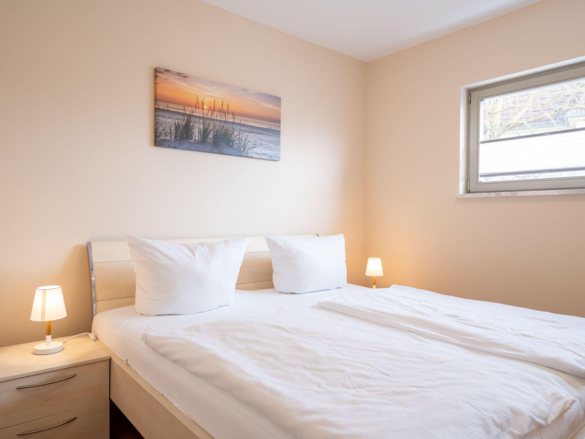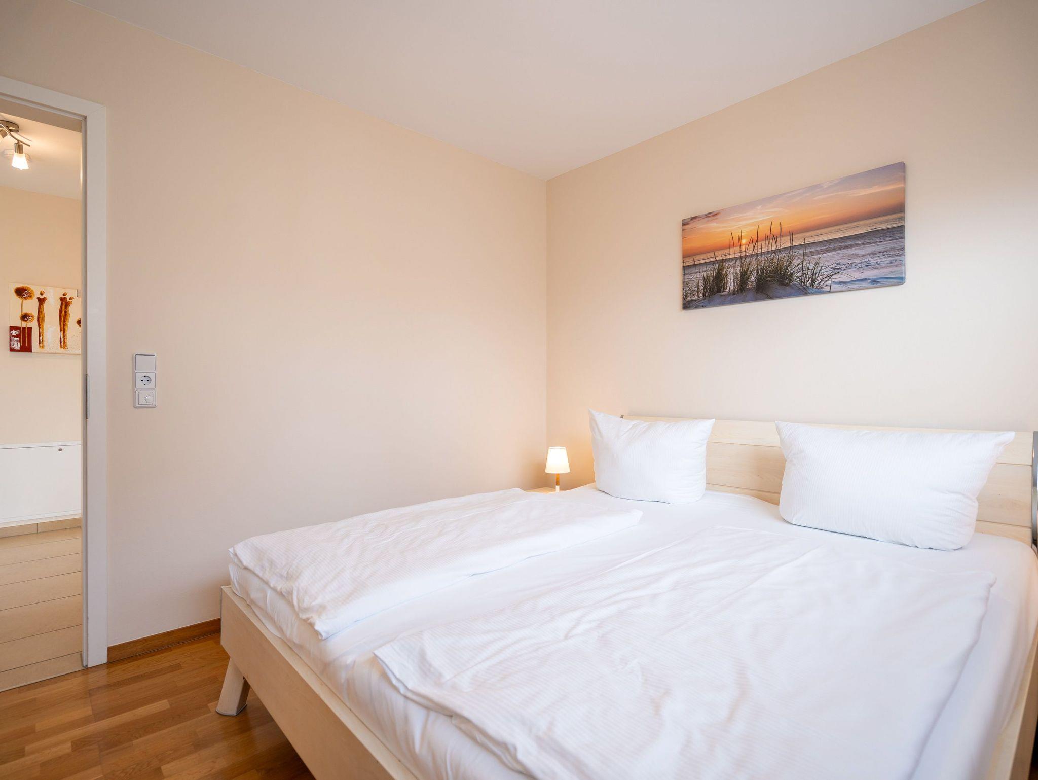 Die moderne und stilvoll eingerichtete 3-Raum-Ferienwohnung in der Villa Estrelia bietet auf 65 m² ausreichend Platz für bis zu vier Personen. Sie befindet sich im 1. Obergeschoss des hochwertigen Neubaus und überzeugt mit einer durchdachten Raumaufteilung sowie einer komfortablen Ausstattung. Der helle Wohnbereich lädt mit einer gemütlichen Sitzgruppe, einem großen Flat-TV und einer modernen Einrichtung zum Entspannen ein. Angrenzend befindet sich die offene Küche, die mit hochwertigen Geräten und einer vollständigen Ausstattung für alle kulinarischen Bedürfnisse sorgt. Ein stilvoller Essplatz bietet genügend Raum für gemeinsame Mahlzeiten. Vom Wohnbereich aus gelangt man direkt auf den sonnigen Balkon, der zum Verweilen an der frischen Seeluft einlädt. Die Wohnung verfügt über zwei separate Schlafzimmer, jeweils mit komfortablen Doppelbetten, in denen erholsamer Schlaf garantiert ist. Ein geräumiges Badezimmer mit Badewanne und einer modernen Glasdusche sorgt für besonderen Komfort. Zusätzlich steht ein Gäste-WC zur Verfügung. Zur Ferienwohnung gehört ein kostenfreier Pkw-Stellplatz in der Tiefgarage der Villa Estrelia, wo auch mitgebrachte Fahrräder sicher untergestellt werden können. Ein Waschmaschinen- und Trocknerbereich im Haus kann gegen eine geringe Gebühr genutzt werden. Selbstverständlich steht Ihnen kostenfreies WLAN zur Verfügung.