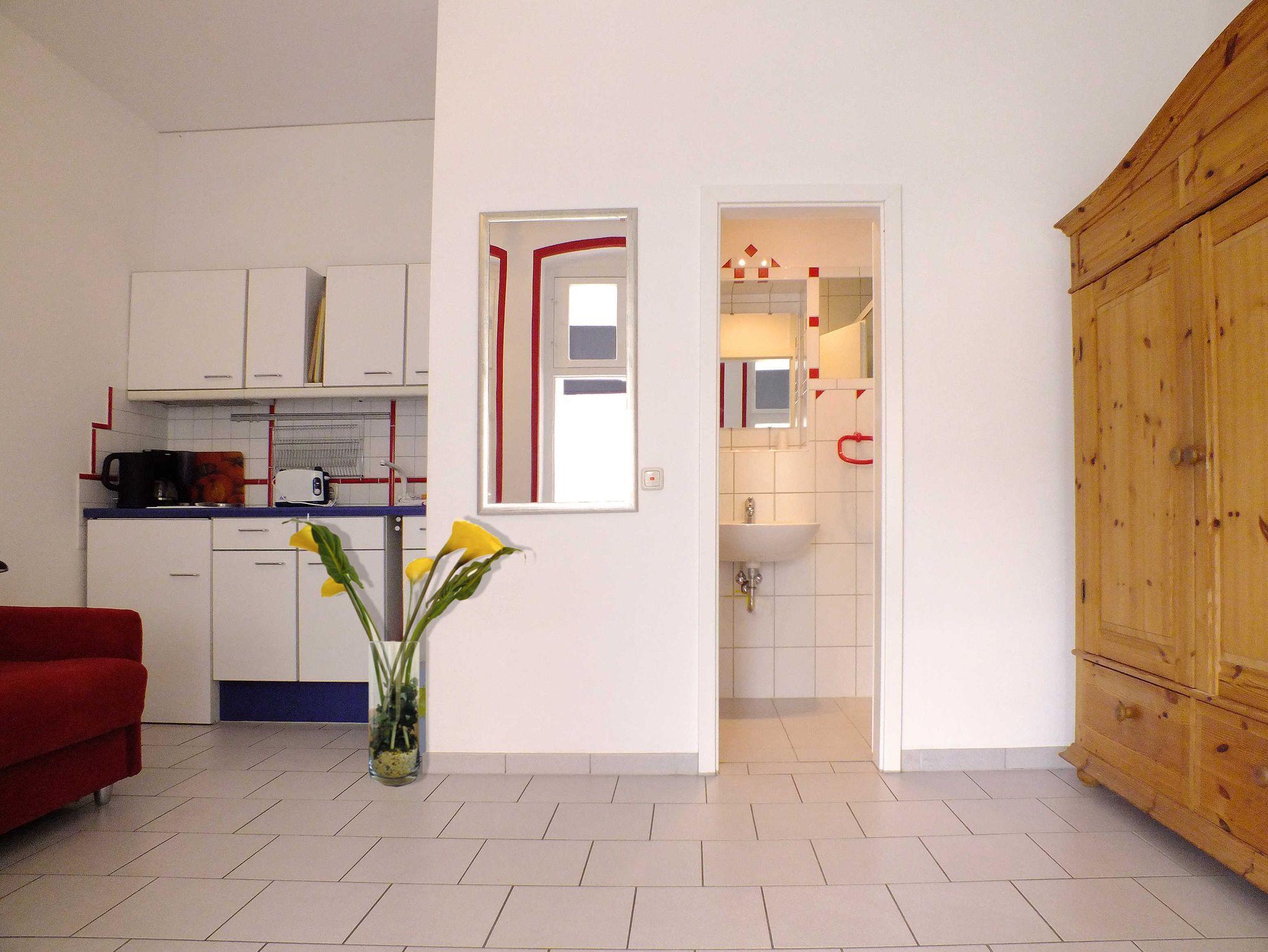 Dieses moderne 25 qm große Appartement (vollständig gefliest) mit separatem Eingang und dazugehöriger Terrasse befindet sich im Erdgeschoss des Hauses. Das Appartment verfügt über einen kombinierten Wohn- und Schlafraum mit einem Kleiderschrank, einem qualitativen Bali-Sofa-Bett mit einer Liegefläche von 1,60 x 2,00 m, einer Küchenzeile mit 2 Platten-Herd, Spüle, Kühlschrank, Kaffeemaschine, Toaster, Geschirr uvm., TV sowie eine Veranda mit Esstisch und Stühlen. Das Bad ist mit DU/WC ausgestattet. Haustiere (bis zu 2 Hunde oder Katzen) sind auf Anfrage willkommen. Die Gebühr liegt bei jeweils 5,- € pro Tag.