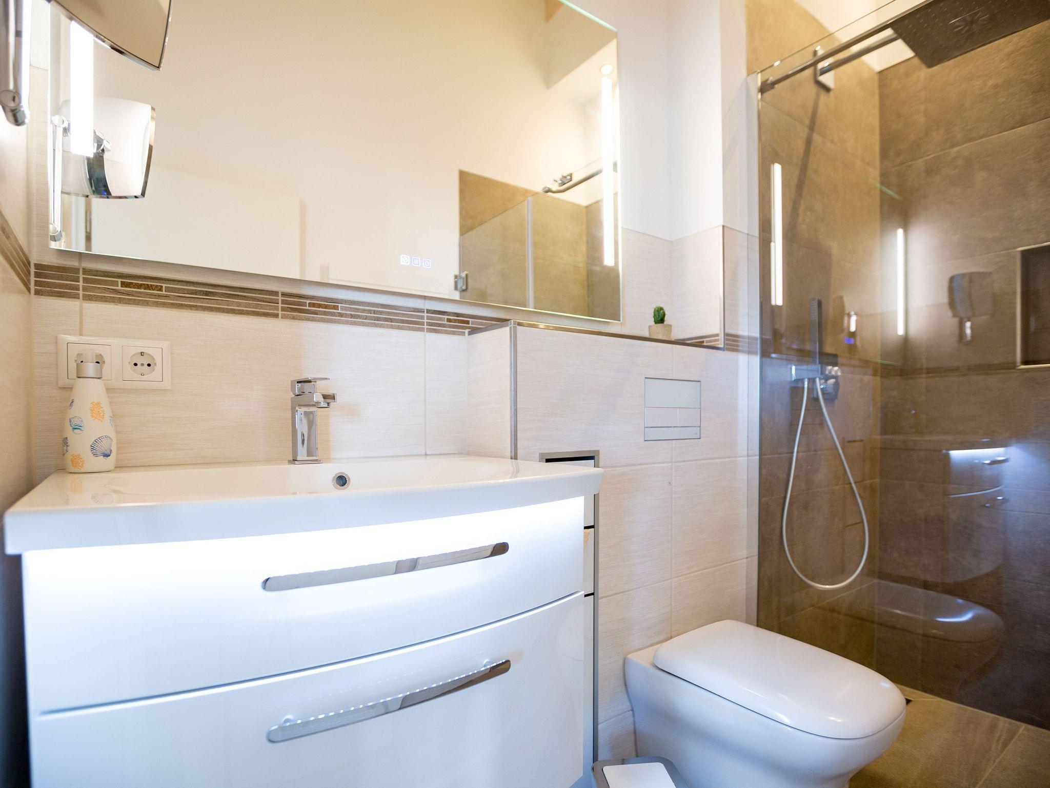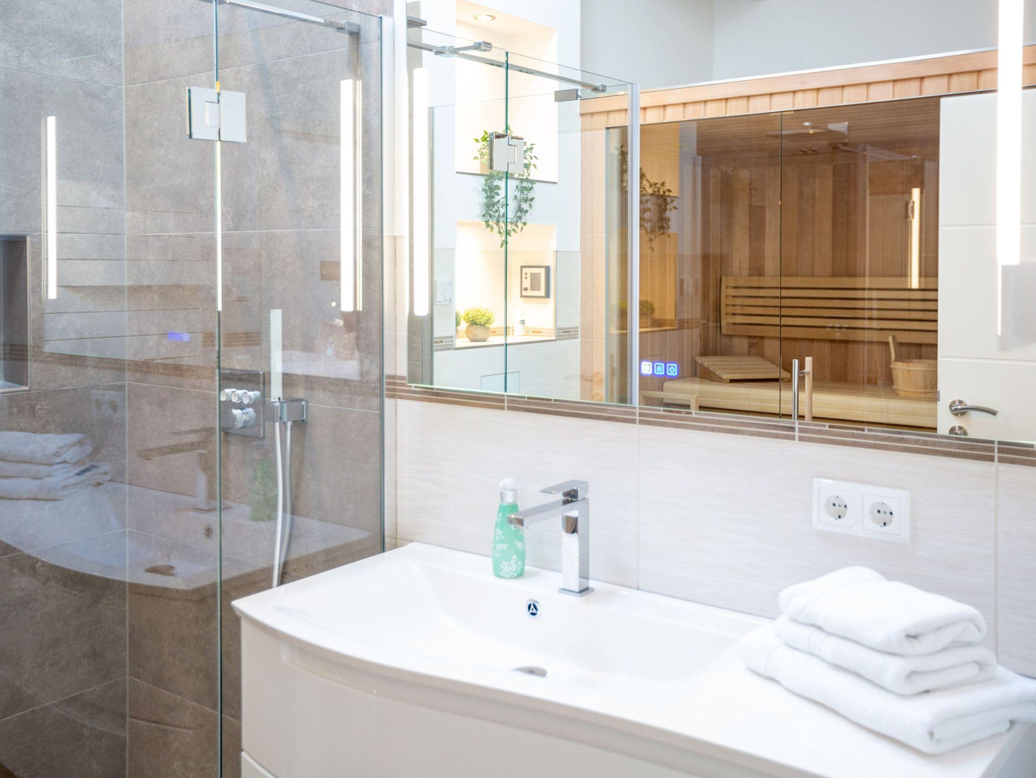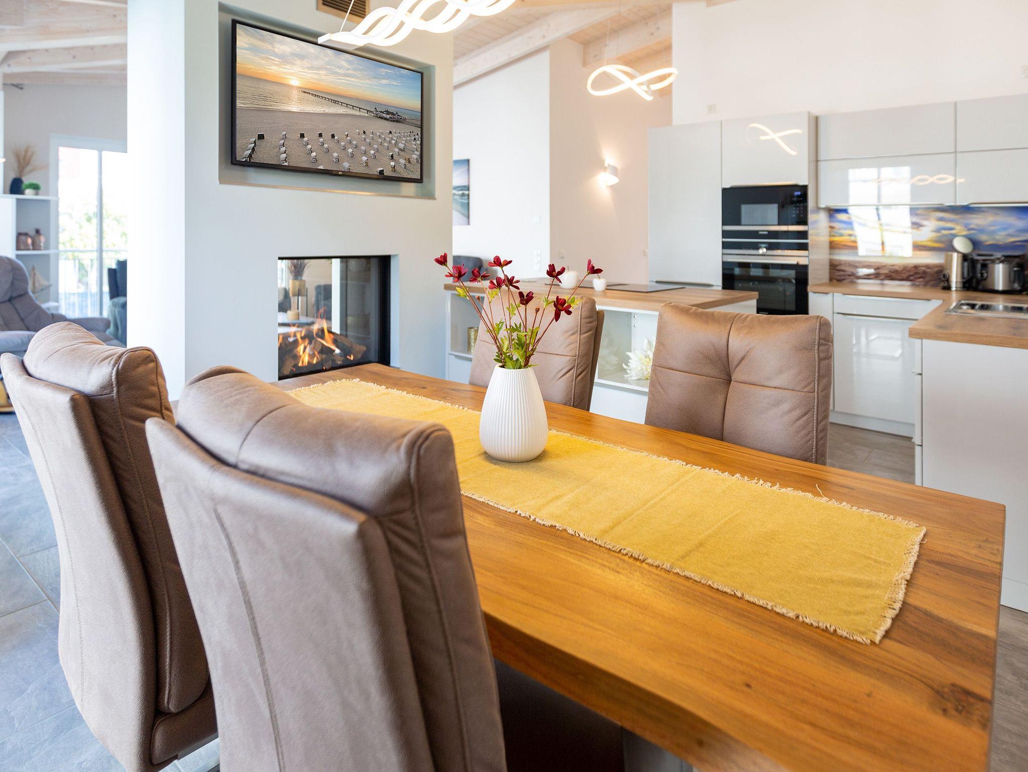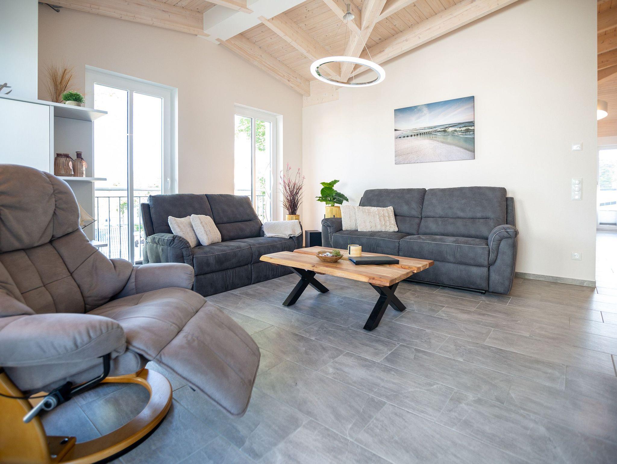 Sie haben schon immer von Meerblick in Ihrem Urlaub geträumt? Dieses schöne 3-Zimmer-Appartement (85qm) im Dachgeschoss (1. OG) für bis zu 4 Personen erlaubt Ihnen gleich von mehreren Seiten den Blick auf die einzigartige Weite der Ostsee. Lassen Sie Ihre Augen in die Ferne schweifen (Entfernung zur Ostsee 150m) und genießen Sie von Ihrem Nord-Balkon im Wohnzimmer oder Ihrem West-Balkon in beiden Schlafzimmern den seitlichen Blick auf das Meer. Hier erleben Sie, nach einer Nacht in einem der beiden komfortablen Boxspringbetten (1,80m x 2,00m), den perfekten Start in den Tag. Oder Sie genießen Ihren Urlaub ganz gemütlich in der appartementeigenen Finnischen Sauna im Masterbad. Für die anschließende Abkühlung sorgt die eingebaute Regendusche. Ein Waschtisch mit LED-Beleuchtung sowie ein beheizter Badezimmerspiegel gehören ebenso zum gehobenen Standard dieser Ferienwohnung wie ein zweites Bad mit Regendusche, Waschbecken und Toilette. Die mit viel Liebe zum Detail eingerichteten Appartementzimmer und die sichtbare Holzbalkendecke machen diese Urlaubsunterkunft zu einem einzigartigen Aufenthaltsort für Ihren Ostseeurlaub. Der offen gestaltete Wohn-Essbereich wird durch einen Gaskamin getrennt, der seine wohlige Wärme zur bequemen Sofalandschaft, in die Küche und den in Essbereich versprüht. Ein großzügiger Flat-TV zum Wohnzimmer und ein separater Flat-TV zum Küchenbereich mit Soundsystem sorgen auch an Regentagen für entsprechende Unterhaltung. Keine Wünsche lässt die voll ausgestattete Küche mit Marken-Elektrogeräten (Ceranfeld, Backofen, Mikrowelle, Spülmaschine, Kühlschrank, Gefrierschrank, Kleinküchengeräte) beim Zubereiten Ihrer Speisen offen. Genießen Sie die Vorzüge des in den Herd integrierten Dunstabzugs und der modernen Touchbedienung. Kostenfreies W-Lan und ein Stellplatz in der hauseigenen Tiefgarage runden Ihren perfekten Urlaub auf der Insel Usedom ab.