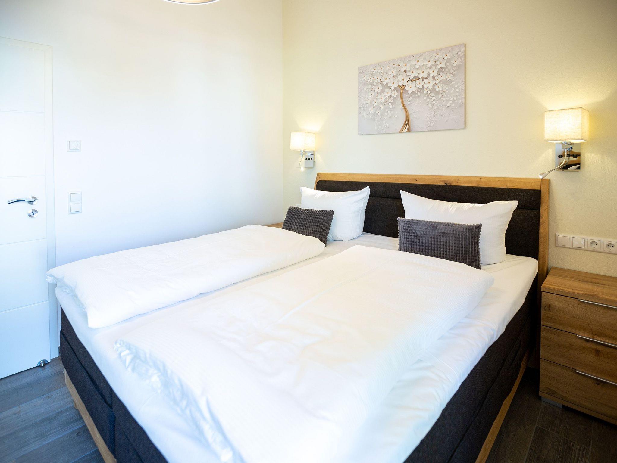 In diesen 2021 errichteten Häusern trifft Helligkeit auf Moderne und bietet Ihnen in seinen stilvoll eingerichteten Zwei- bis Drei-Zimmer Appartements Komfort auf höchster Ebene. Die offen gestalteten Wohn-Ess-Bereiche überzeugen durch ein stylisches Ambiente und ihr großzügiges Raumkonzept. Die teilweise mit Kochinseln ausgestatteten Küchen integrieren sich perfekt in den ebenso schlichten wie modernen Wohnraum. Alle Appartements verfügen über zwei Bäder oder ein Bad und ein zusätzliches Gäste-WC. Um Ihre Auszeit am Meer zusätzlich zu verschönern, wurden alle Appartements mit Gaskamin und Finnischer Sauna ausgestattet. Genießen Sie von den großzügigen Balkonen und Terrassen den Ausblick auf die parkähnliche Grünanlage oder verbringen Sie Ihren Abend auf dem frei zur Verfügung stehenden Grillplatz mit Sitzecke und Grill. Ein kostenloser PKW-Stellplatz in der Tiefgarage (Einfahrtshöhe 1,95m, Anfahrt über die Straße ?Kieferngrund? Höhe Hausnummer 17) gehört ebenso zum Komfort dieser Appartement-Häuser wie kostenfreies W-Lan. Für E-Autos steht am Objekt eine E-Ladesäule mit 2 Ladeplätzen (gesamt 22 kW) auf dem Grundstück kostenpflichtig zur Verfügung. Eine Waschmaschine und ein Trockner können Sie gegen Gebühr über die kostenlose App WeWash nutzen.