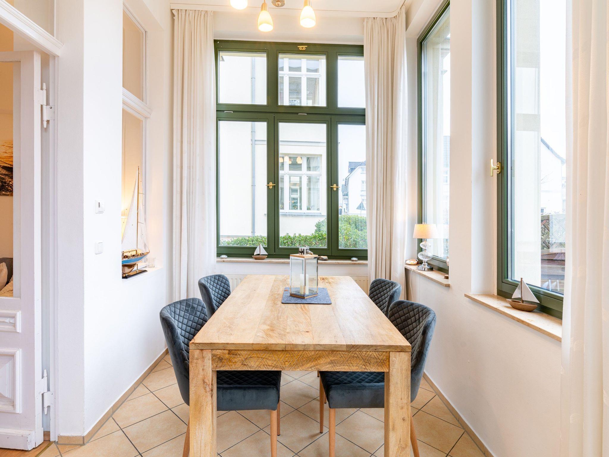 Gemütliche 2-Zimmer-Ferienwohnung im Haus Goodewind mit Meerblick und Terrasse in Ahlbeck, nur 100 m vom Strand entfernt.