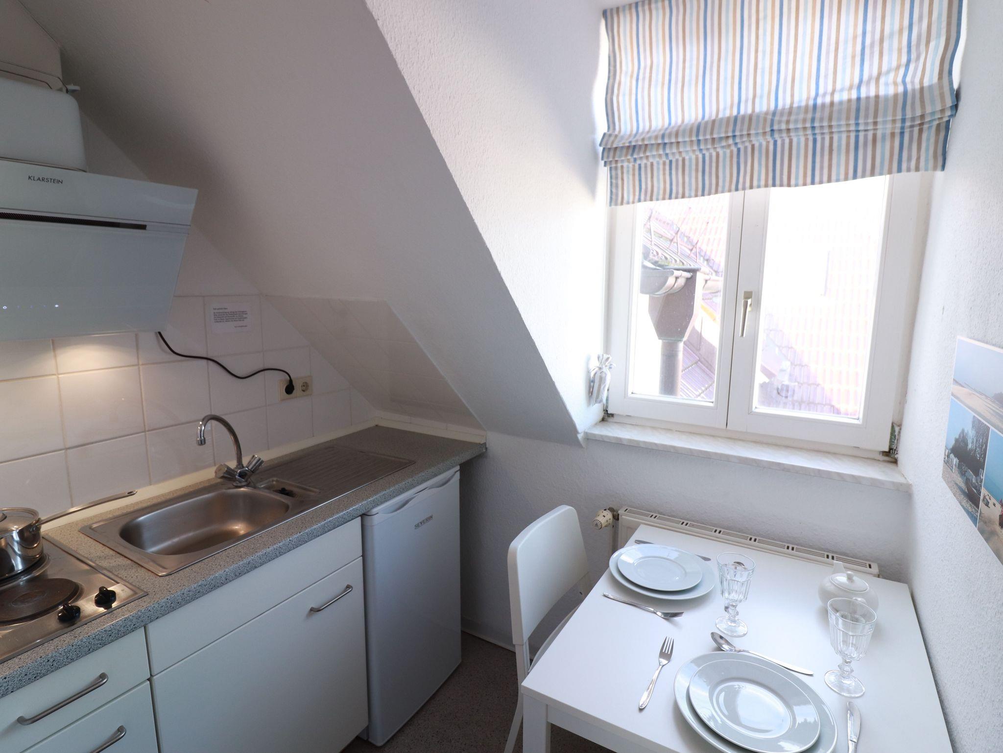 Offiziell misst die Wohnung nur 17 qm, allerdings ist die Grundfläche erheblich größer, so dass zwei Personen mit ggfs. einem Kleinkind dort genügend Platz finden, um sich wohlzufühlen.