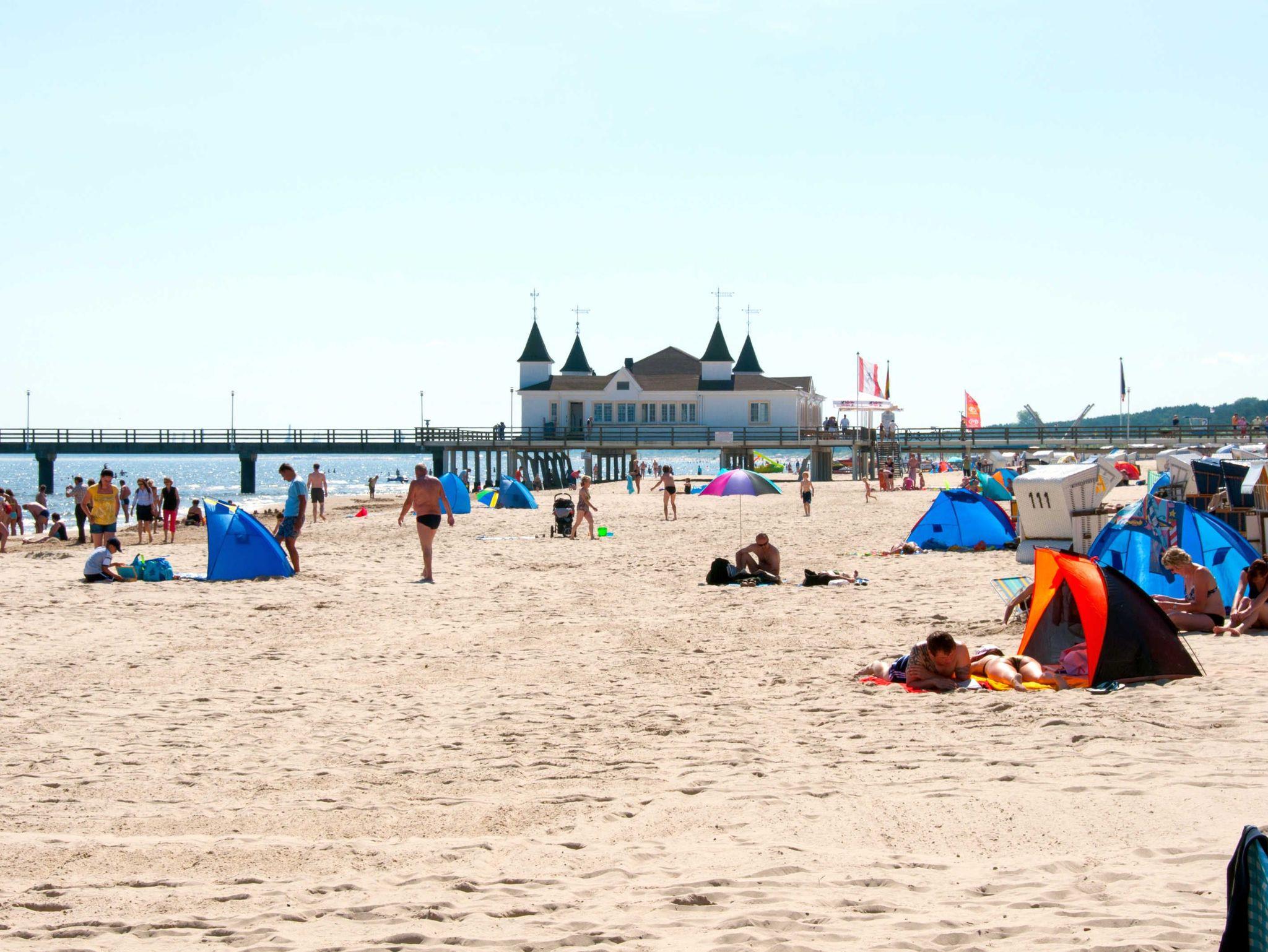 In unmittelbarer Nähe haben Sie auch die Möglichkeit, sich Fahrräder auszuleihen und so die Insel zu erkunden. Einkaufsmöglichkeiten befinden sich ebenfalls um die Ecke. Unweit des Hauses verläuft zudem die schöne Promenade von Bansin über Heringsdorf nach Ahlbeck und weiter in Richtung Polen. Hier finden Sie viele kleine Cafés, Restaurants und Boutiquen sowie die imposanten Seebrücken mit Anleger für die Ausflugsschiffe.