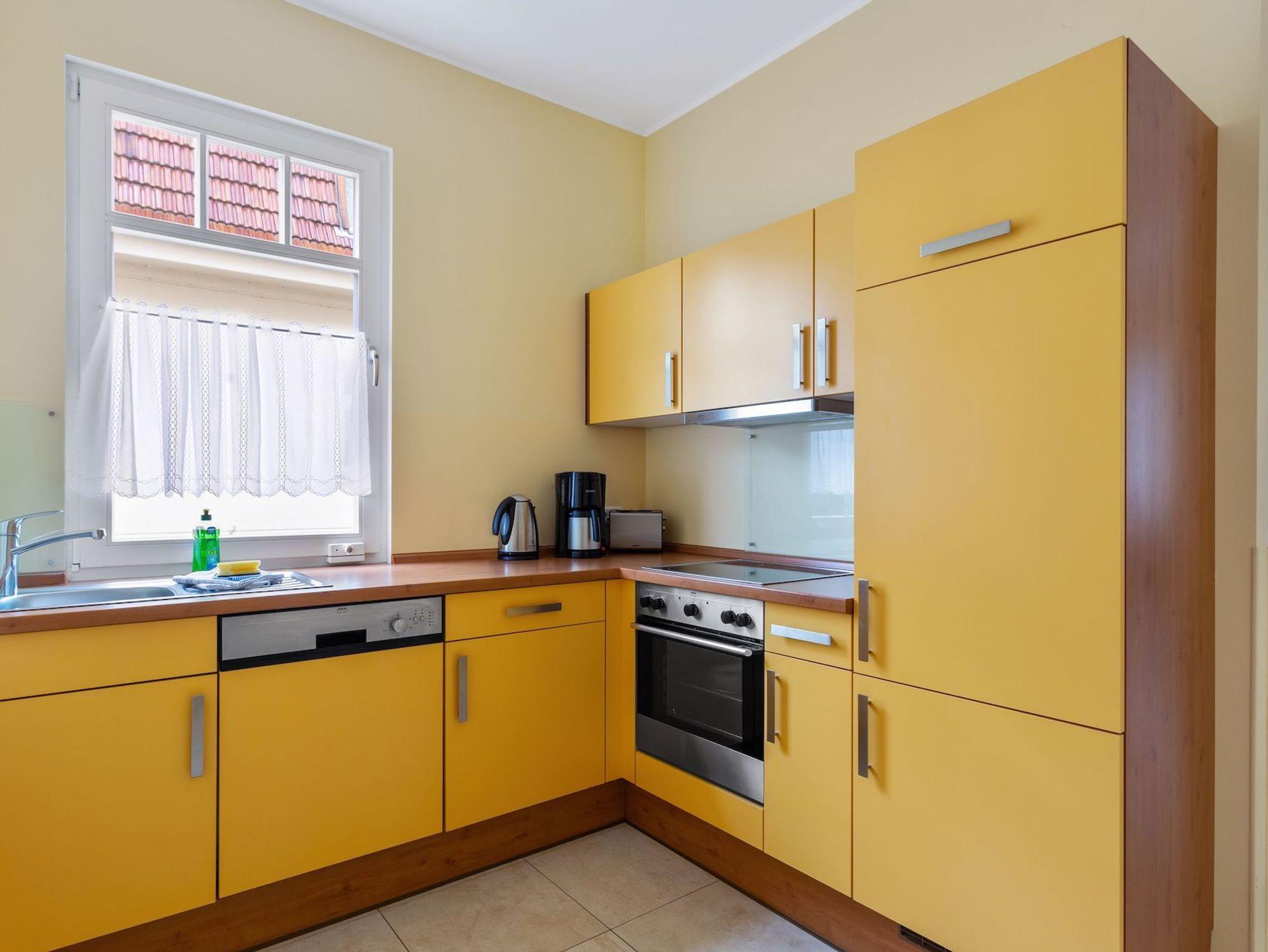 Das 58 m² große 2-Raum-Appartement ?Bernstein? liegt im gemütlichen Hochparterre und ist ideal für 2 Personen. Warme Farben, eine elegante Ledersitzgruppe, bequeme Essstühle, ein Lesesessel und ein moderner UHD-LED-TV sorgen für ein behagliches Ambiente. Direkt vor der Tür erwartet Sie Ihr eigener Außensitzplatz ? perfekt für entspannte Stunden an der frischen Ostseeluft. Schon beim Eintreten, mit einem Blick nach rechts, können Sie trotz der grünen Düne die Ostsee sehen. Das nach Süden ausgerichtete Schlafzimmer ist mit außenliegenden, wärmereflektierenden Sonnenschutzrollos ausgestattet. Da sich darunter der Wellnessbereich des Hauses befindet, schlafen Sie angenehm erhöht ? wie im ersten Stock. Das komfortable Doppelbett (2,00 m x 1,80 m) wird ergänzt durch ein stilvolles Gründerzeit-Vertigo und bietet zudem Platz für ein Kinderreisebett. Ein 2 m breiter Kleiderschrank befindet sich platzsparend in einer Nische im Flur, direkt gegenüber vom Badezimmer. Das Bad ist mit Dusche, Waschtisch, WC, großzügigem Fenster und praktischen Ablagen ausgestattet. Die separate Küche ist vollständig für 2?3 Personen eingerichtet und bietet alles, was Sie für Ihren Aufenthalt benötigen. Ein PKW-Stellplatz direkt am Haus rundet das Angebot ab.