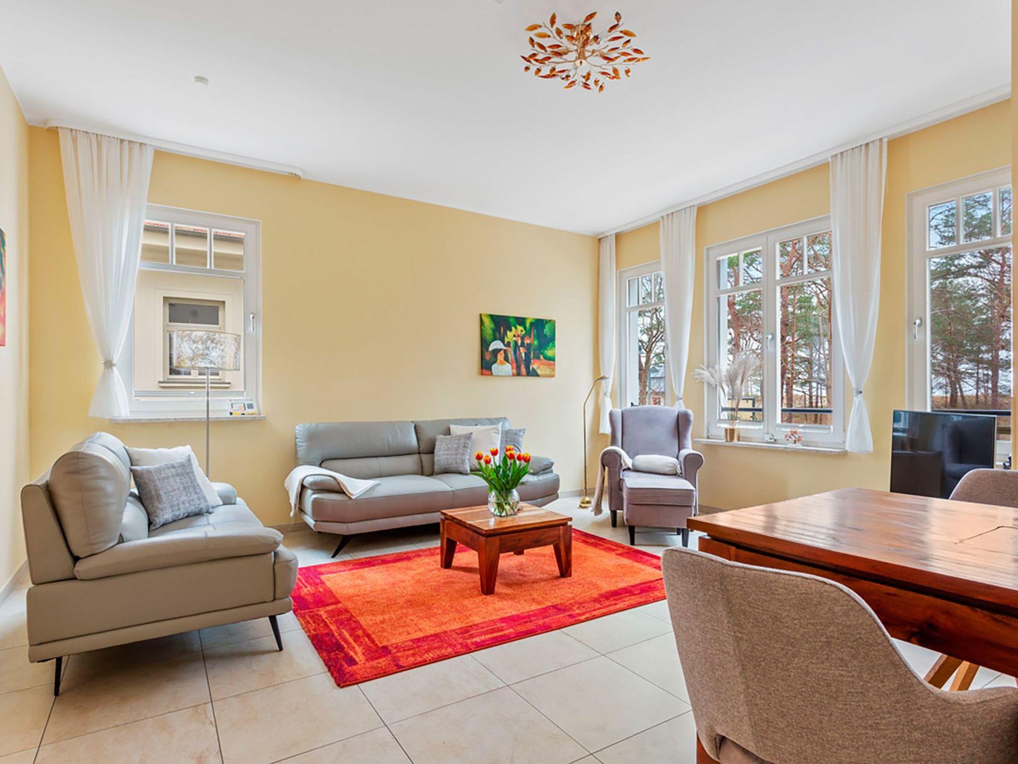 Modernes 2-Zimmer-Appartement "Bernstein" in Ahlbeck mit Meerblick und privatem Außensitzplatz, ideal für entspannte Tage an der Ostsee.