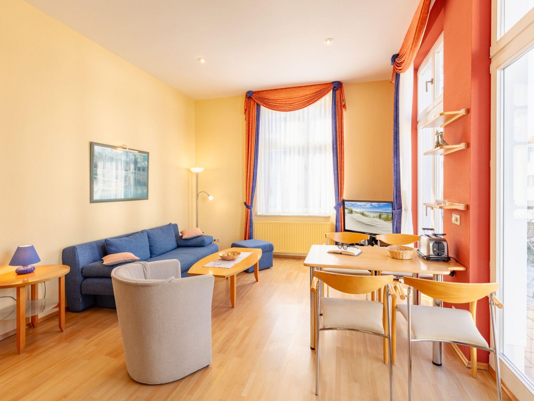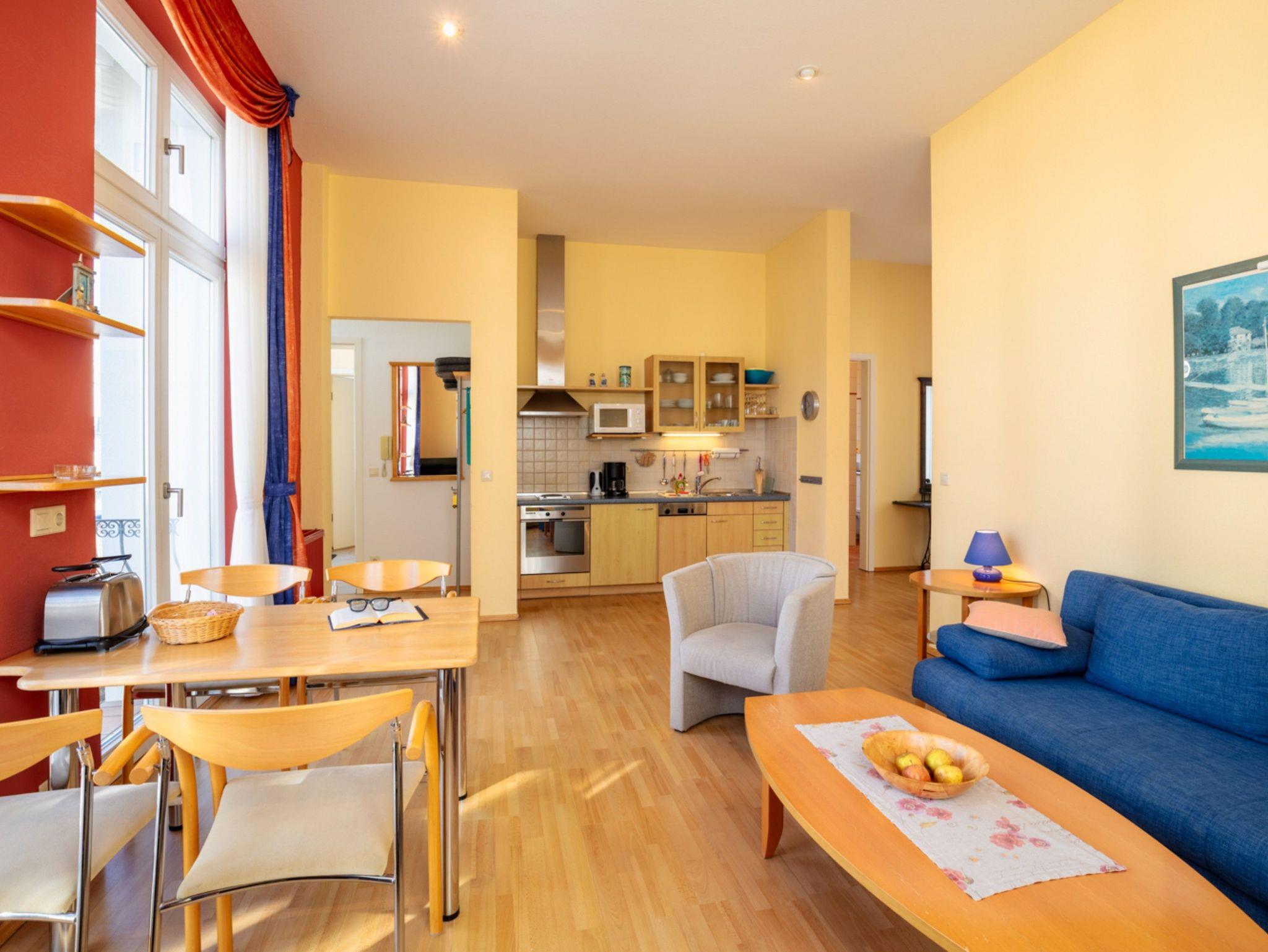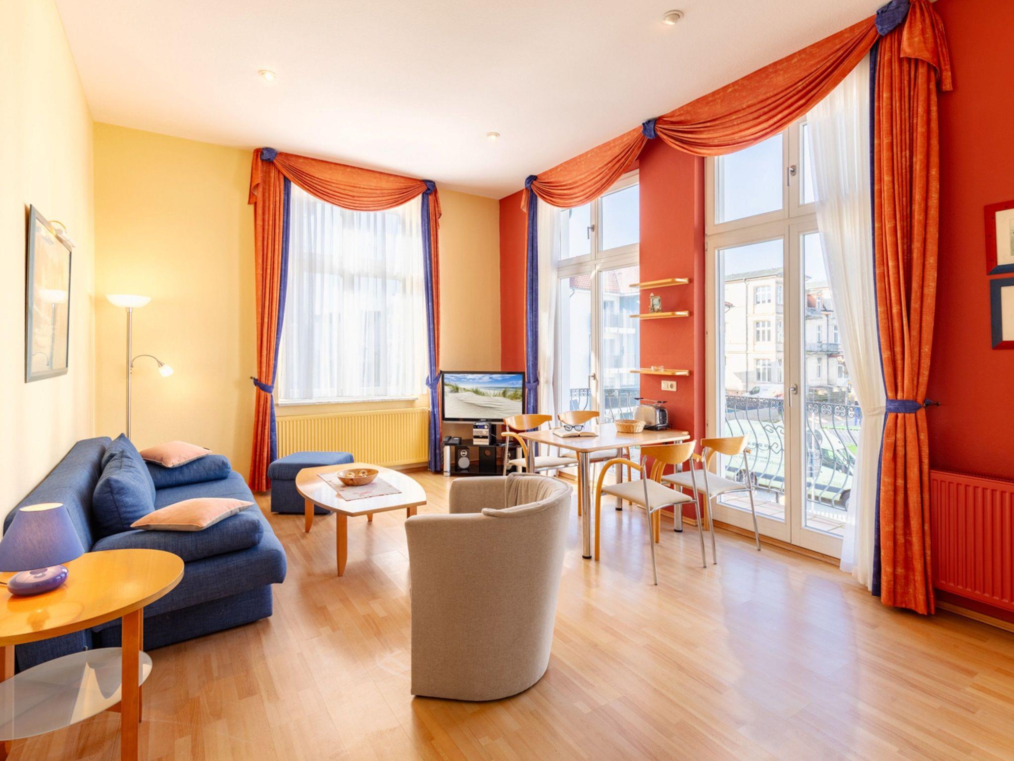 Komfortable 2-Zimmer-Ferienwohnung direkt an der historischen Seebrücke von Ahlbeck mit Balkon und Terrasse.