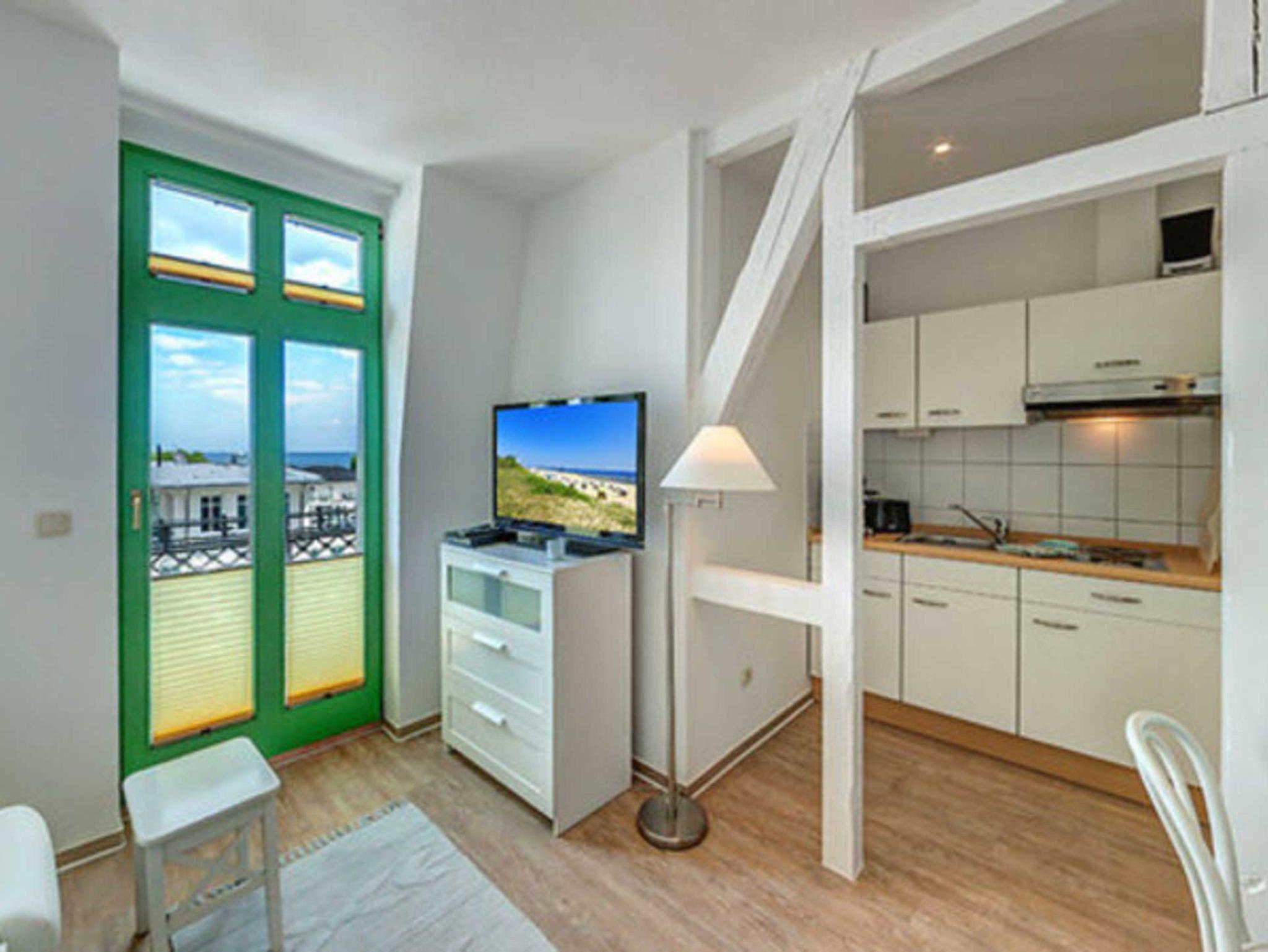 Das gemütliche 1-Zimmer-Appartement Nr. 15 befindet sich im zweiten Obergeschoss der Villa Ostseewarte. Es verfügt über einen geräumigen Wohn- und Schlafraum mit einem Doppelbett, einer gemütlichen Sitzgruppe sowie einem Essplatz. Die separate Küchenzeile ist voll ausgestattetet mit Kaffeemaschine, Wasserkocher, Toaster und Mikrowelle. Das Bad verfügt über Dusche und WC. Zum Appartement gehört darüber hinaus ein Balkon zur Seeseite mit Seeblick über die davor stehenden Häuser hinweg. Ein Pkw-Stellplatz steht Ihnen auf dem Grundstück kostenfrei zur Verfügung und Ihre Fahrräder können Sie ebenfalls auf dem Grundstück in einem separaten Abstellraum unterbringen. Alle Wohnungen in der Villa Ostseewarte haben passwortgeschütztem DSL-WLAN Internetzugang (gerätegebunden, Euro 1,50 pro Tag und Gerät). Ein FAHRSTUHL wurde nachträglich eingebaut. Eine Waschmaschine können Sie gegen Gebühr gern nutzen (Münzgerät).