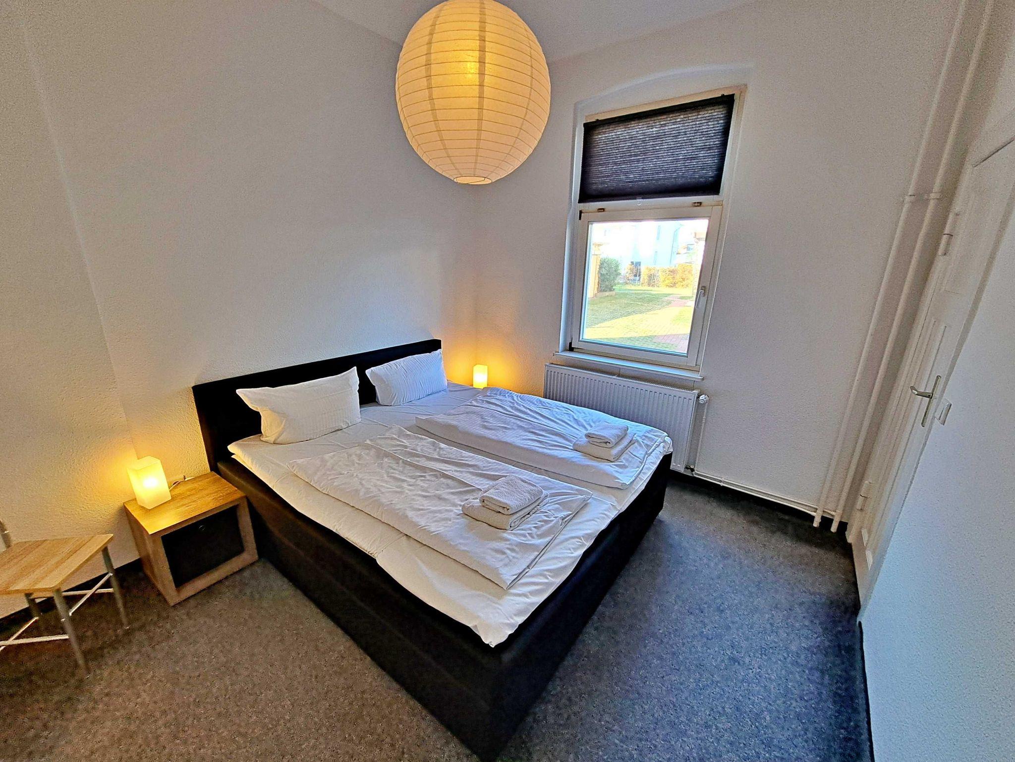 Auf ca. 50 qm erwartet Sie eine gemütliche Feriewohnung im Erdgeschoss der Villa Haus Bella! Diese Ferienwohnung bietet Ihnen alles, was Sie für Ihren erholsamen Urlaub benötigen. Das Wohnzimmer bietet eine komfortable Couchgarnitur, die auch als Schlafmöglichkeit für eine Person dient, sowie einen Flachbild-TV, der zu entspannten Abenden einlädt. Im Schlafzimmer finden Sie ein bequemes Doppelbett und einen begehbaren Kleiderschrank, der ausreichend Stauraum bietet. Die offene Küche ist bestens ausgestattet mit einem Elektro-Herd, Backofen, Kühlschrank, Kaffeemaschine, Toaster und Wasserkocher - alles, was Sie für Ihre kulinarischen Wünsche benötigen. Die gemütliche Essecke mit Tisch und vier bequemen Stühlen befindet sich separat im Flurbereich und lädt zu gemeinsamen Mahlzeiten ein. Das Tageslichtbad bietet Ihnen eine geräumige Dusche und WC für Ihr Wohlbefinden. Ein Stellplatz für Ihren PKW steht auf dem Grundstück zur Verfügung und natürlich genießen Sie in der gesamten Wohnung kostenfreies WLAN.