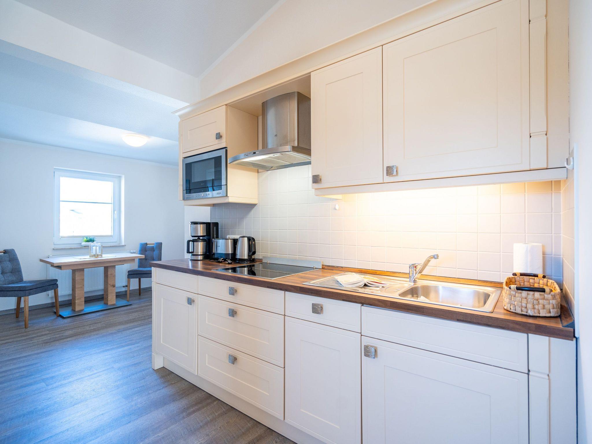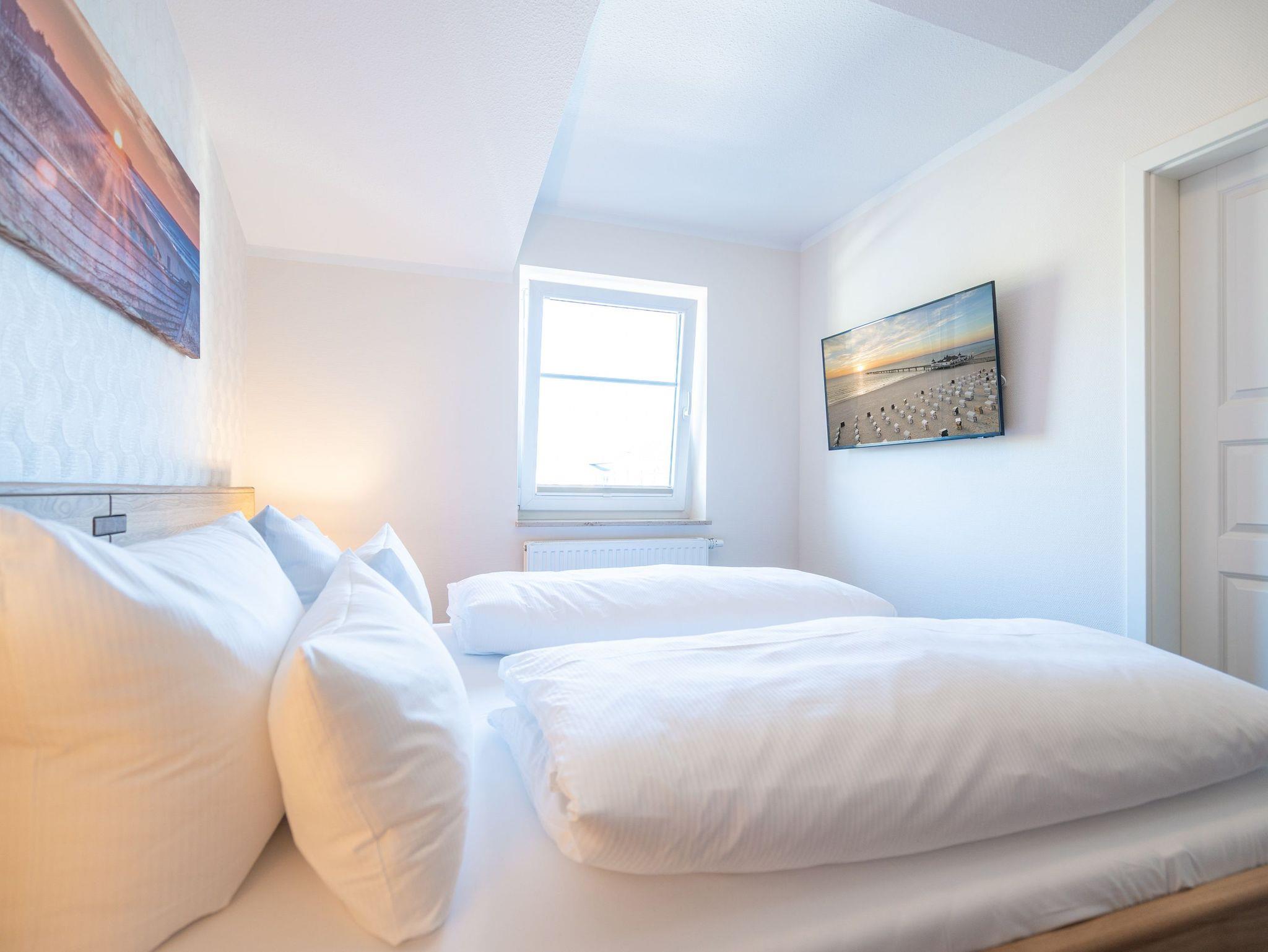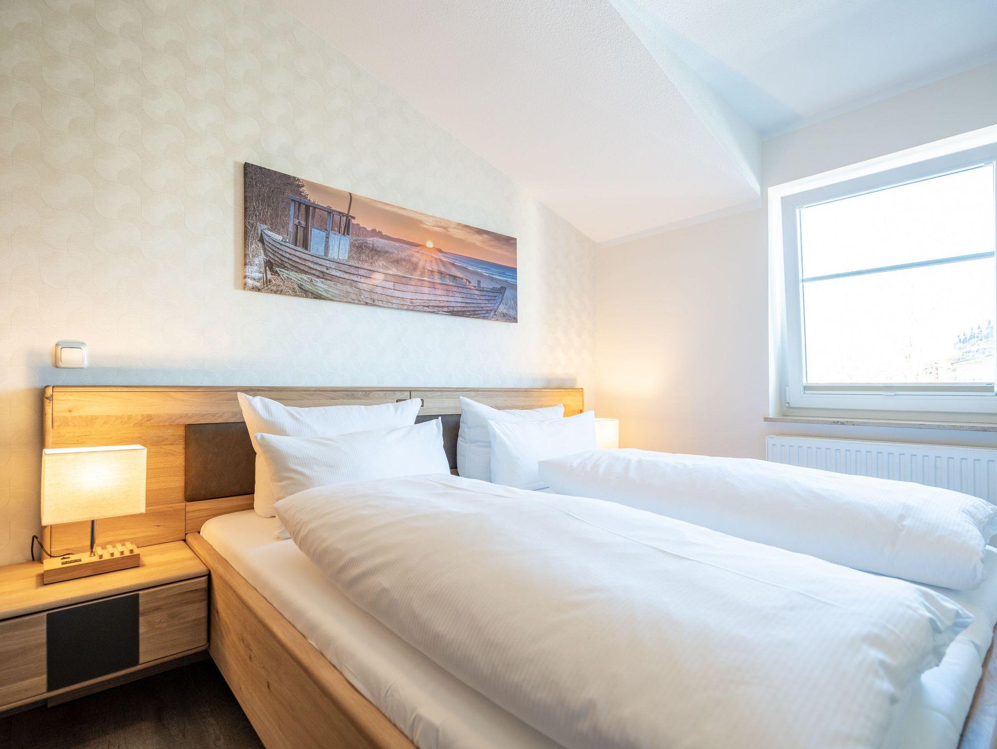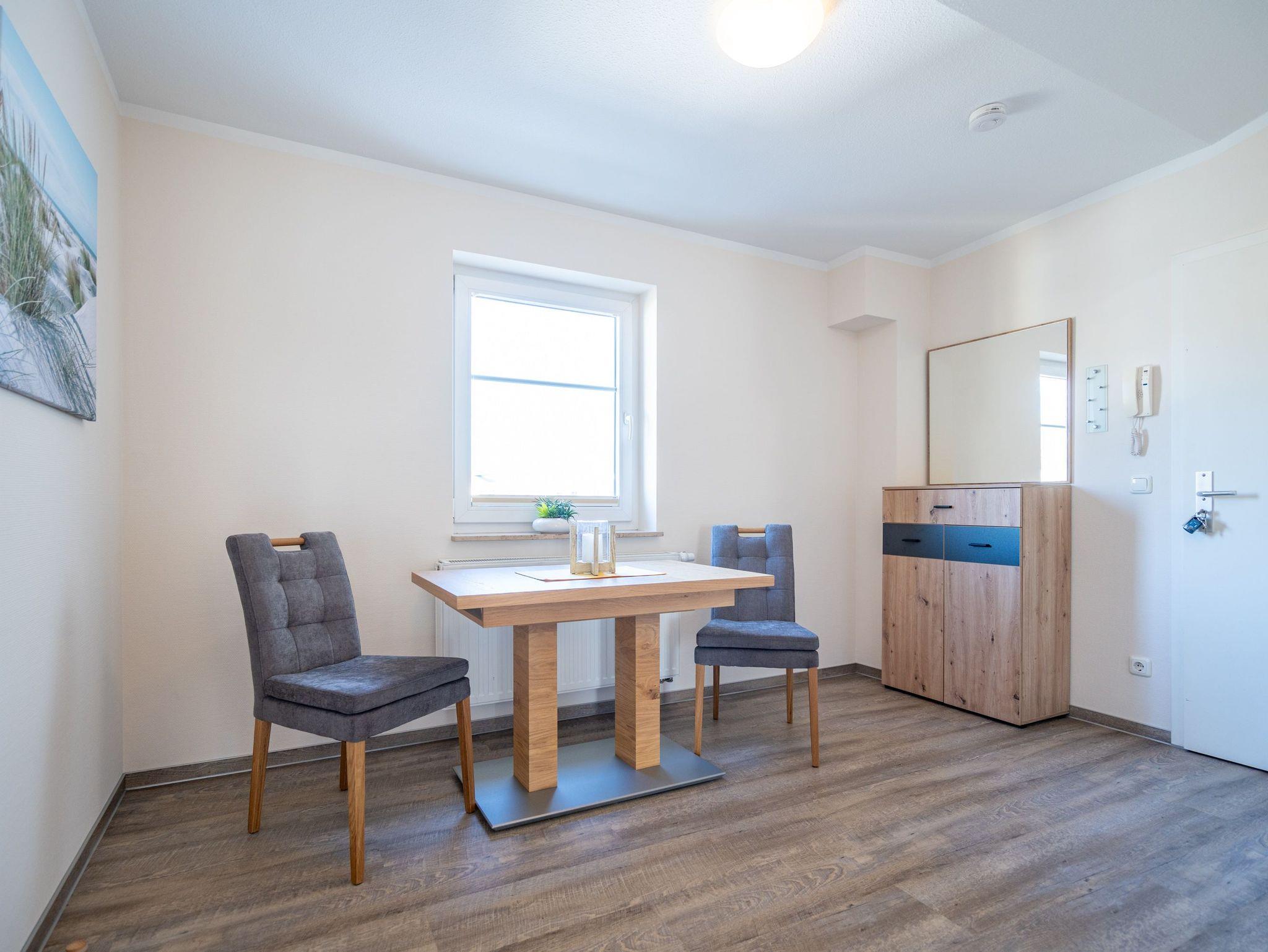 Die Ferienwohnung 09 in der Weißen Düne wurde im April 2025 umfassend neu gestaltet und empfängt Sie nun in frischem Glanz im 2. Obergeschoss des Hauses. Die Wohnung ist ideal für 2 Personen geeignet und bietet Ihnen ein hochwertiges Ambiente mit komplett ausgestatteter Einrichtung. Ein heller Wohnbereich mit separatem Essplatz und Zugang zum kleinen Balkon lädt zum Verweilen ein. Der gemütliche Kamin sorgt ? nicht nur in der kühleren Jahreszeit ? für entspannte Stunden. Im Schlafzimmer erwartet Sie ein komfortables Doppelbett (2 m x 2 m). Das Badezimmer ist modern ausgestattet und verfügt über eine Dusche sowie ein WC. Ein PKW-Stellplatz in der Tiefgarage steht Ihnen ebenso zur Verfügung wie kostenfreies WLAN.