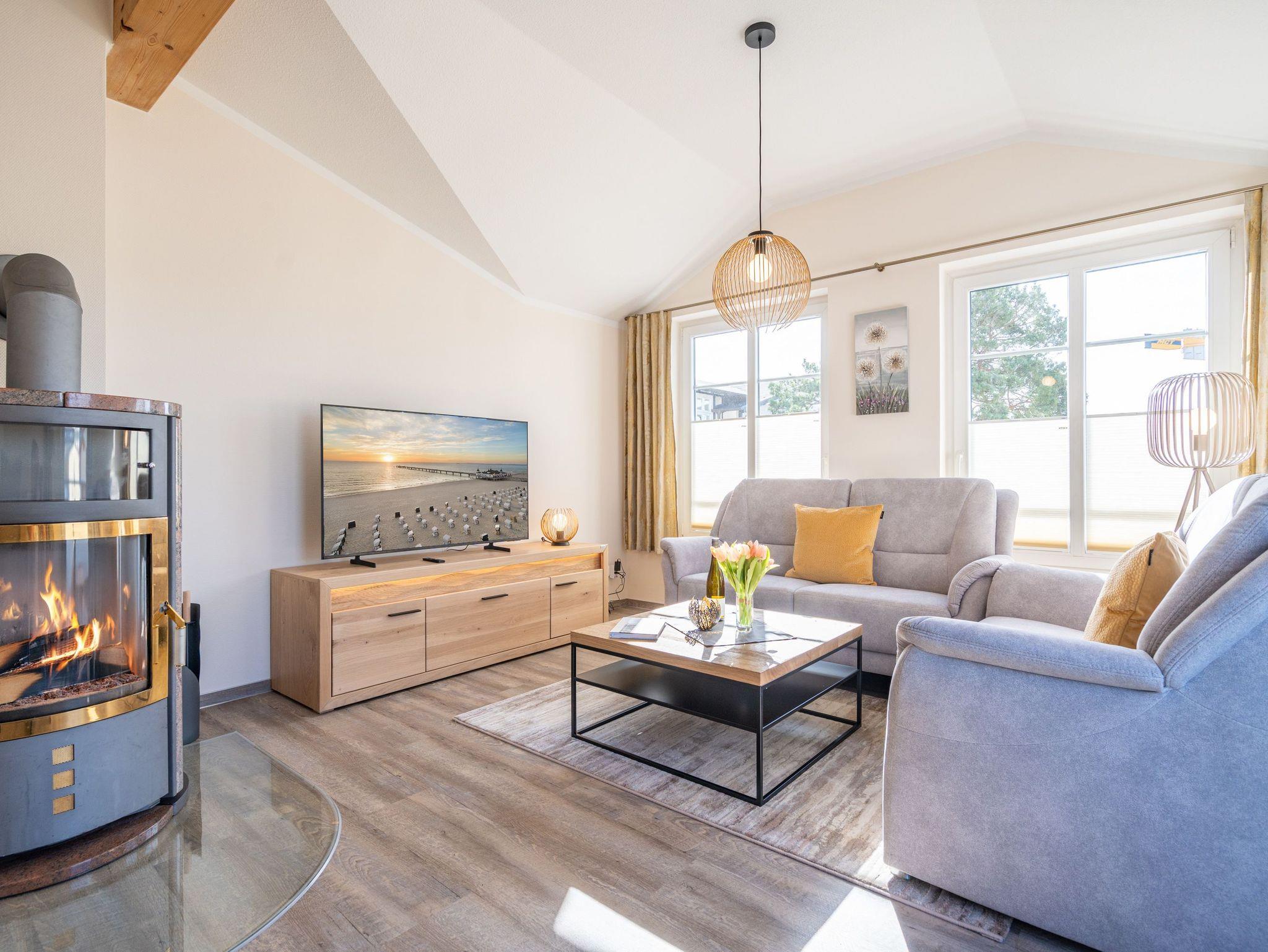 Modern renovierte Ferienwohnung Weiße Düne 09 mit Kamin, Balkon und Tiefgaragenstellplatz nahe Strand in Ahlbeck.