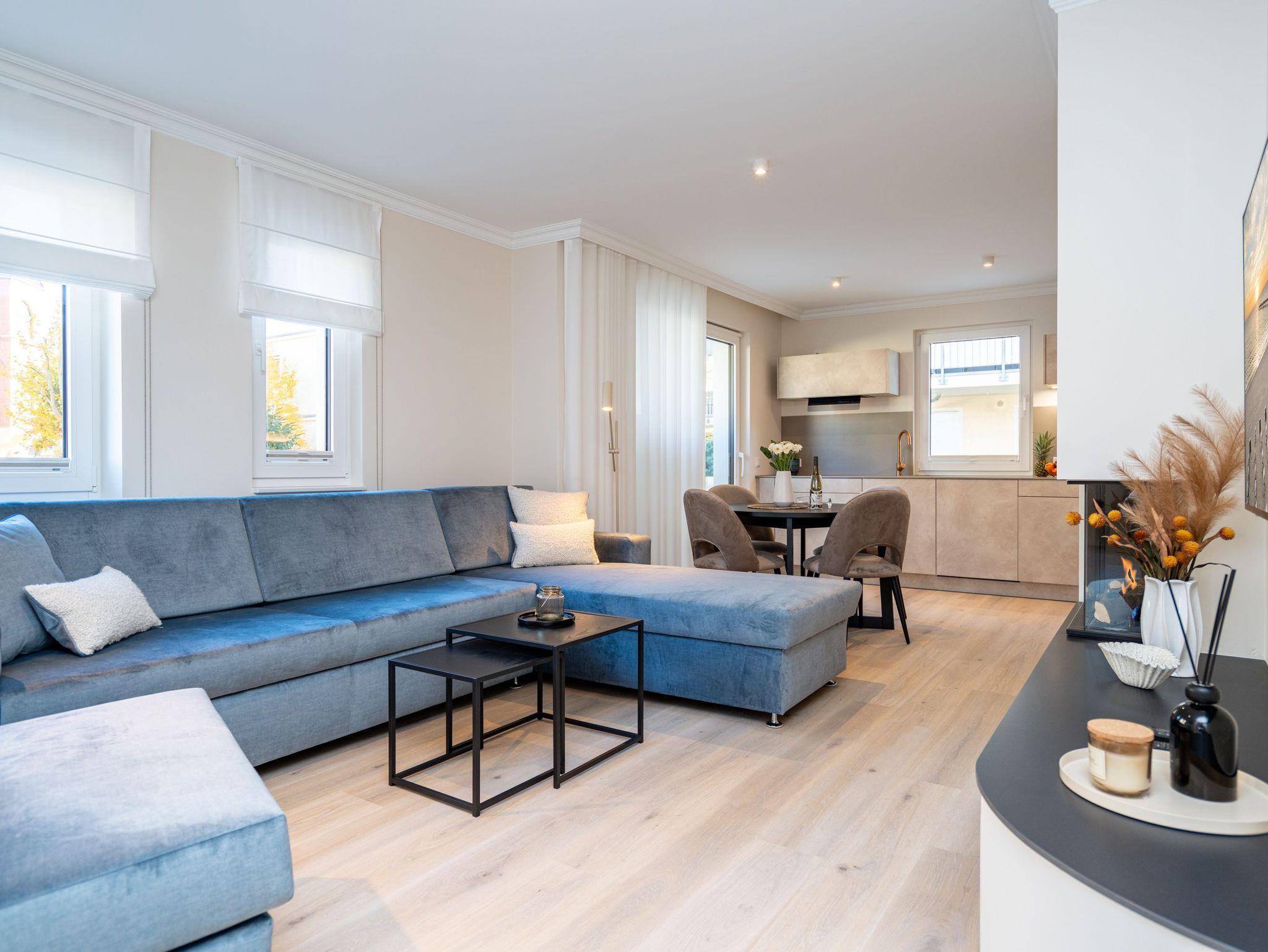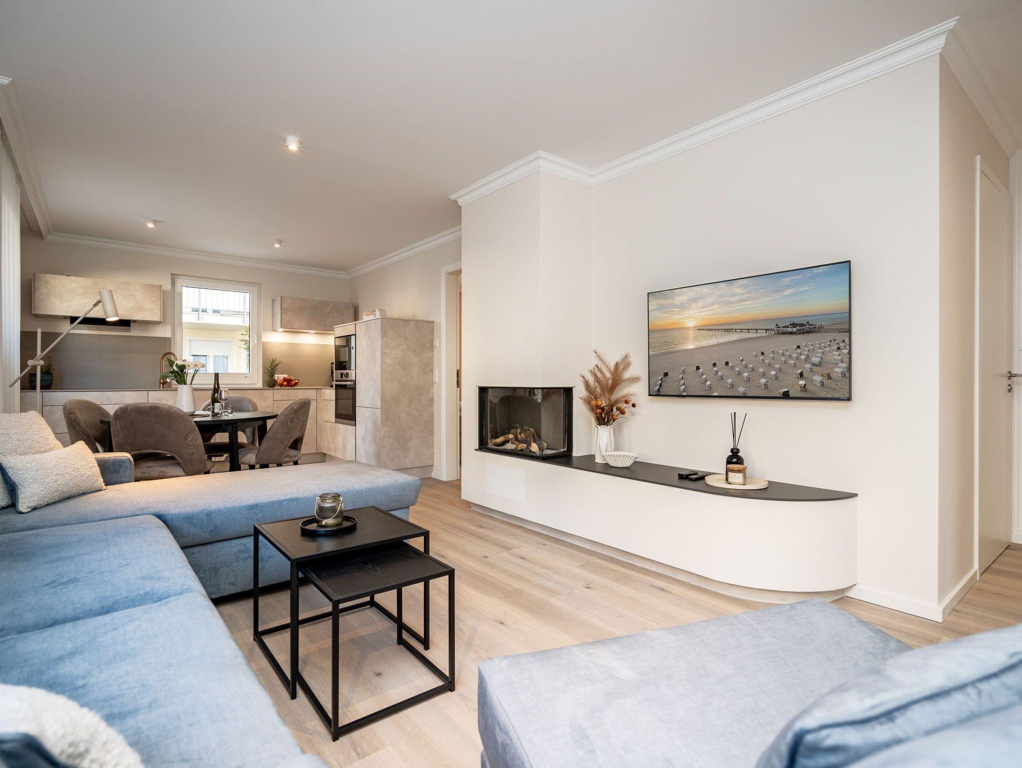 Moderne Villa Kamadori in Ahlbeck: Komfortables 3-Raum-Appartement mit Kamin, Sauna und großer Terrasse.