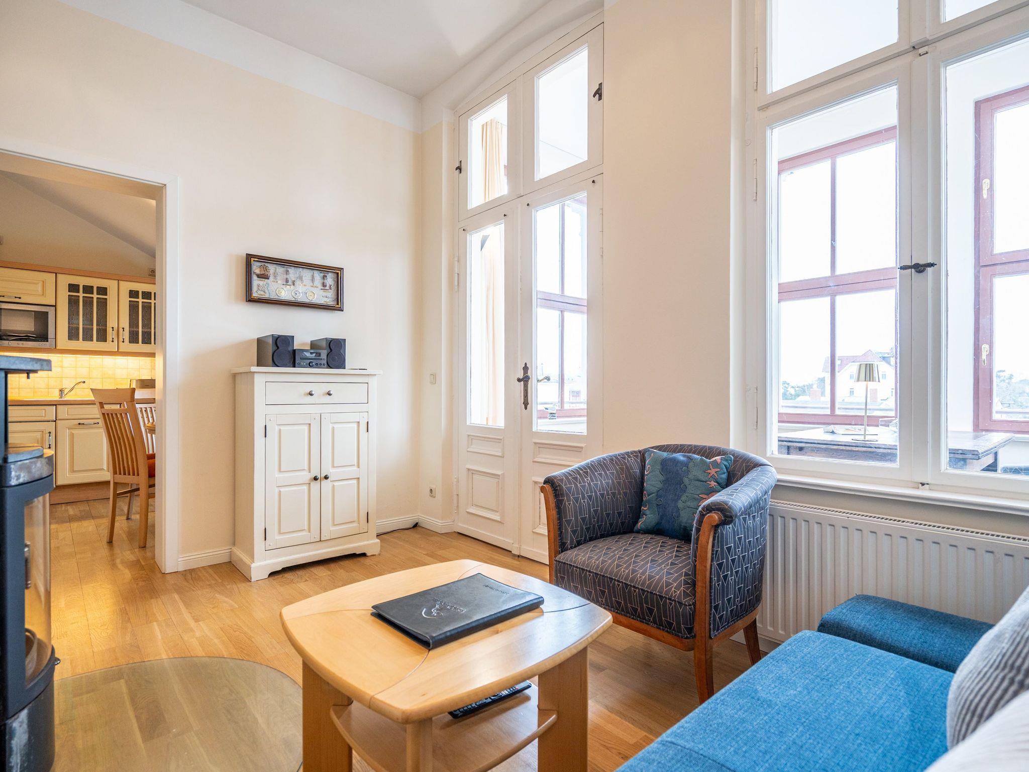 Charmante 2-Zimmer-Ferienwohnung mit Meerblick, Kaminofen und verglaster Loggia in ruhiger Lage nahe Strand und Seebrücke in Ahlbeck.