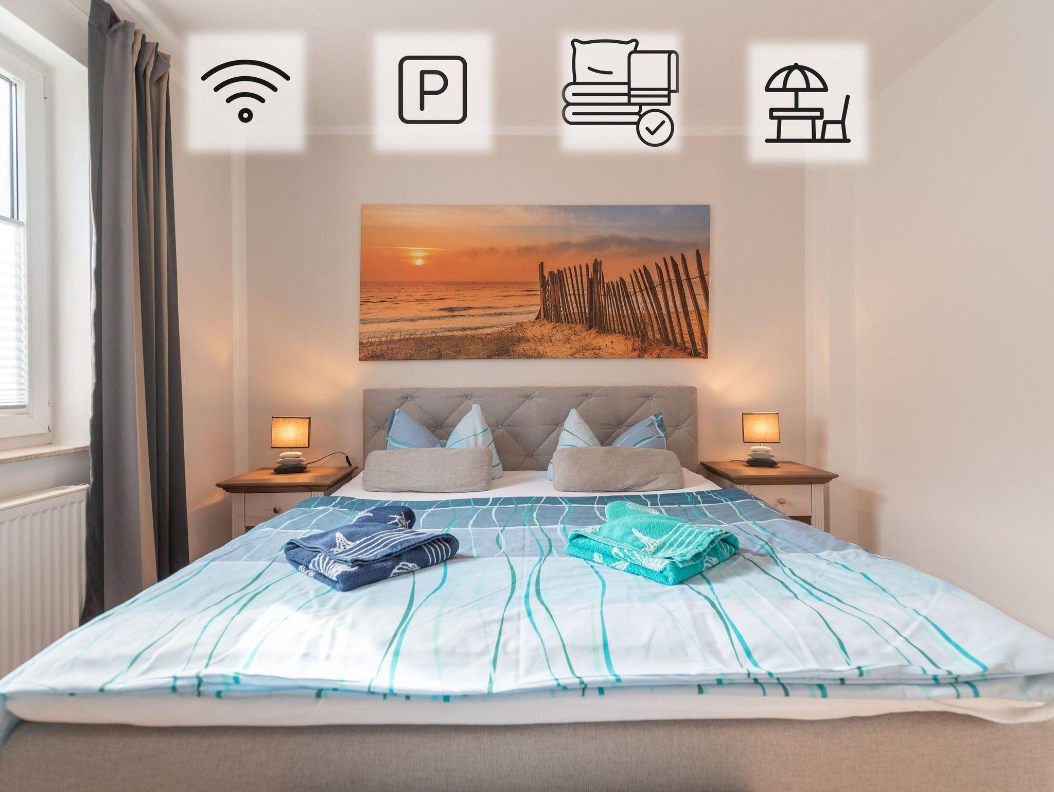 Die Nebenkosten für Wasser, Strom, Heizung sowie die Nutzung eines PKW Stellplatzes sind im Buchungspreis enthaltensind im Mietpreis enthalten. 1x Bettwäsche; 1 Duschtuch; 1 Handtuch (pro Person) gehören ebenso dazu. Sollte Ihnen dies nicht reichen, können Sie sich gern ein Wäschepaket bei uns nachkaufen. Eine Grundausstattung wird von der Reinigungsfirma gestellt: Spülmittel; Toilettenpapier und Müllbeutel. Sollten diese Sachen aufgebraucht sein, müssen Sie sich diese Artikel selbst nachkaufen. Wir möchten Sie bitten, die Hinweise der Reinigungsfirma in der Wohnung zu beachten.