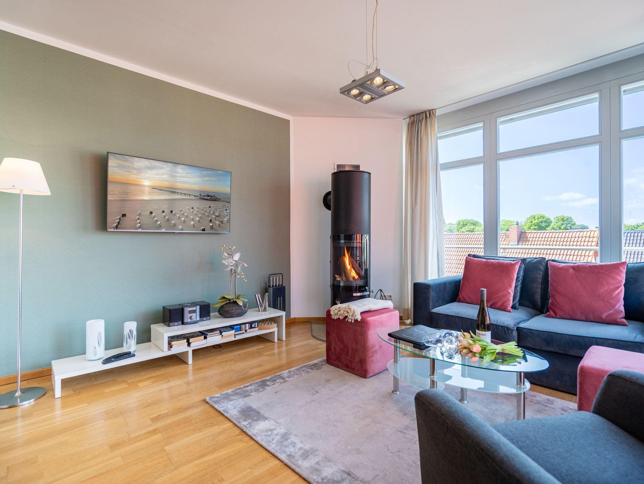 Charmante Ferienwohnung mit Kamin und Balkon, nur 50 m vom Strand in Ahlbeck, ideal für erholsame Tage am Meer.