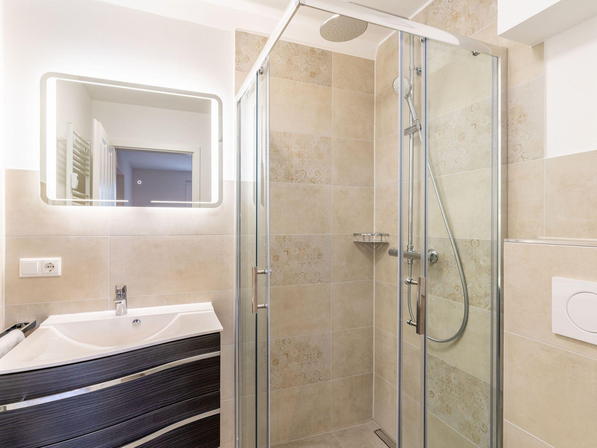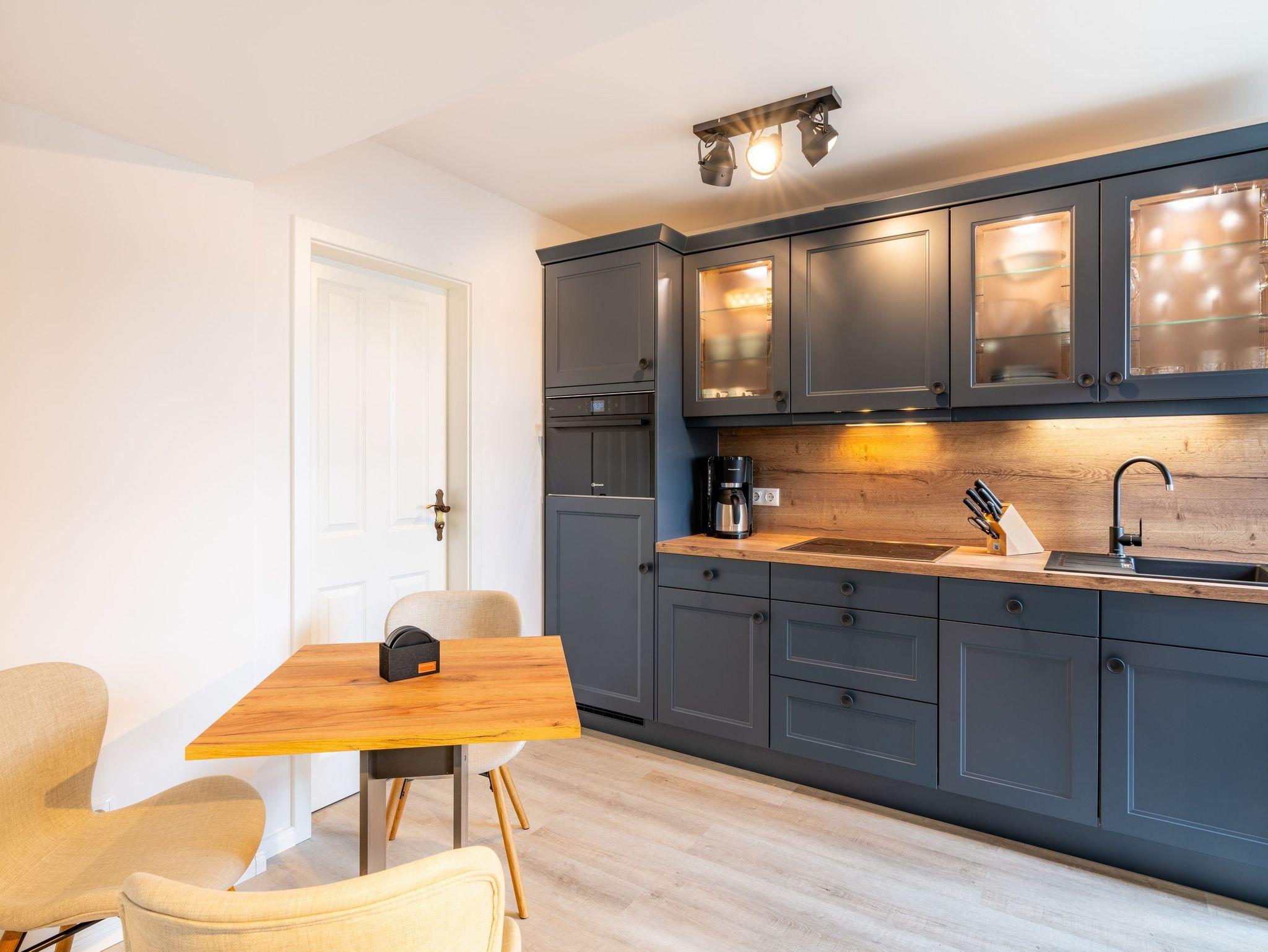 Die Einrichtung wurde liebevoll auf die stillvolle Bäderarchitektur der Villa Albus abgestimmt. Der kombinierte Wohn-, Ess-, Koch- und Schlafbereich verfügt ein komfortables Doppelbett und bietet einen erholsamen Schlaf. Die integrierte Küchenzeile lässt keine Wünsche offen und ist ausgestattet mit einem Herd, Backofen, Kühlschrank mit Tiefkühlfach, Geschirrspülmaschine, Mikrowelle, Kaffeemaschine, Toaster und Wasserkocher. Genießen Sie Ihre Lieblingsspeisen an dem vorhandenen Esstisch oder verbringen Sie einen gemütlichen Fernsehabend vor dem FlatTV. Das Bad ist mit einer Dusche, WC und einem Haartrockner ausgestattet.