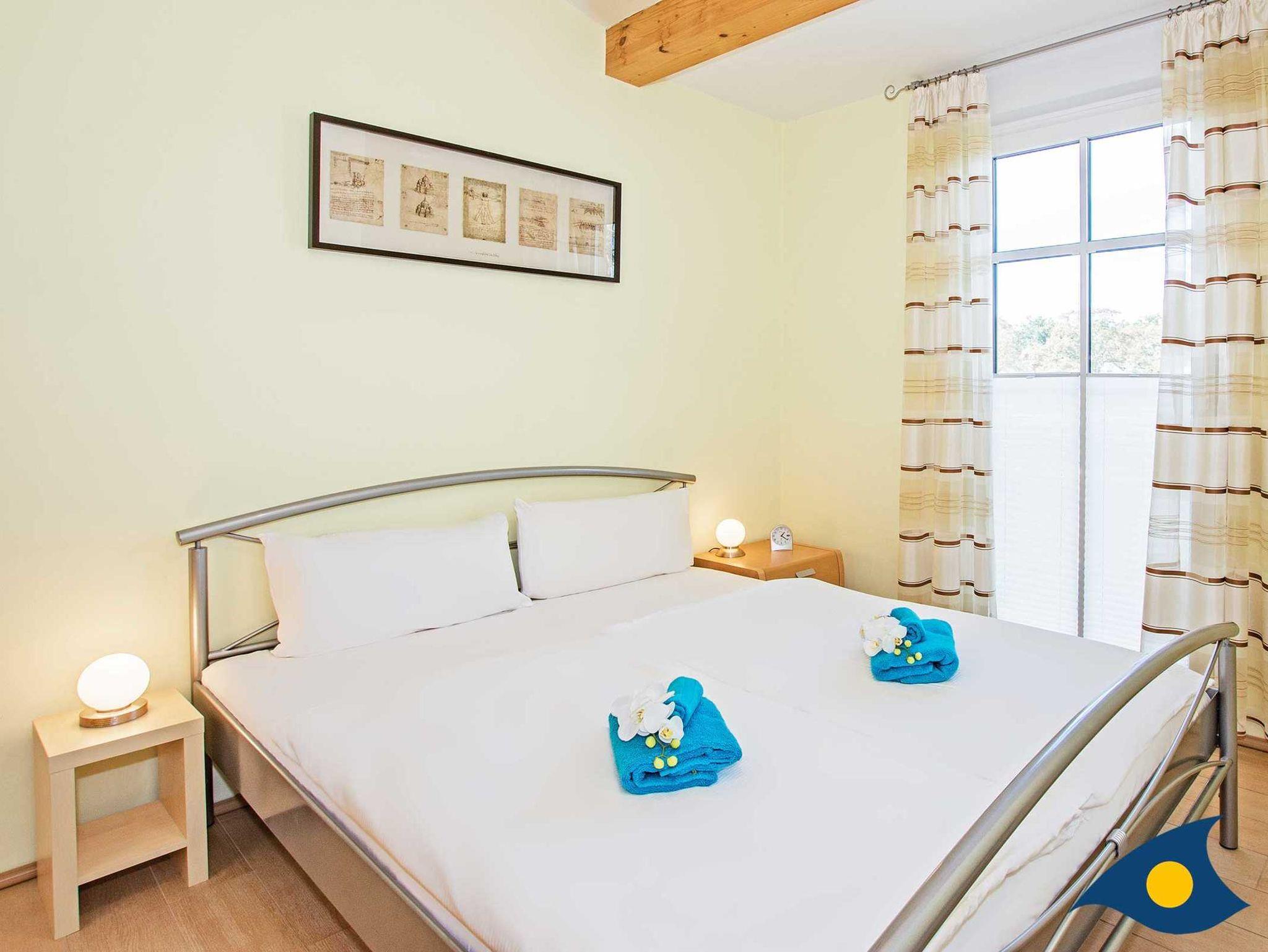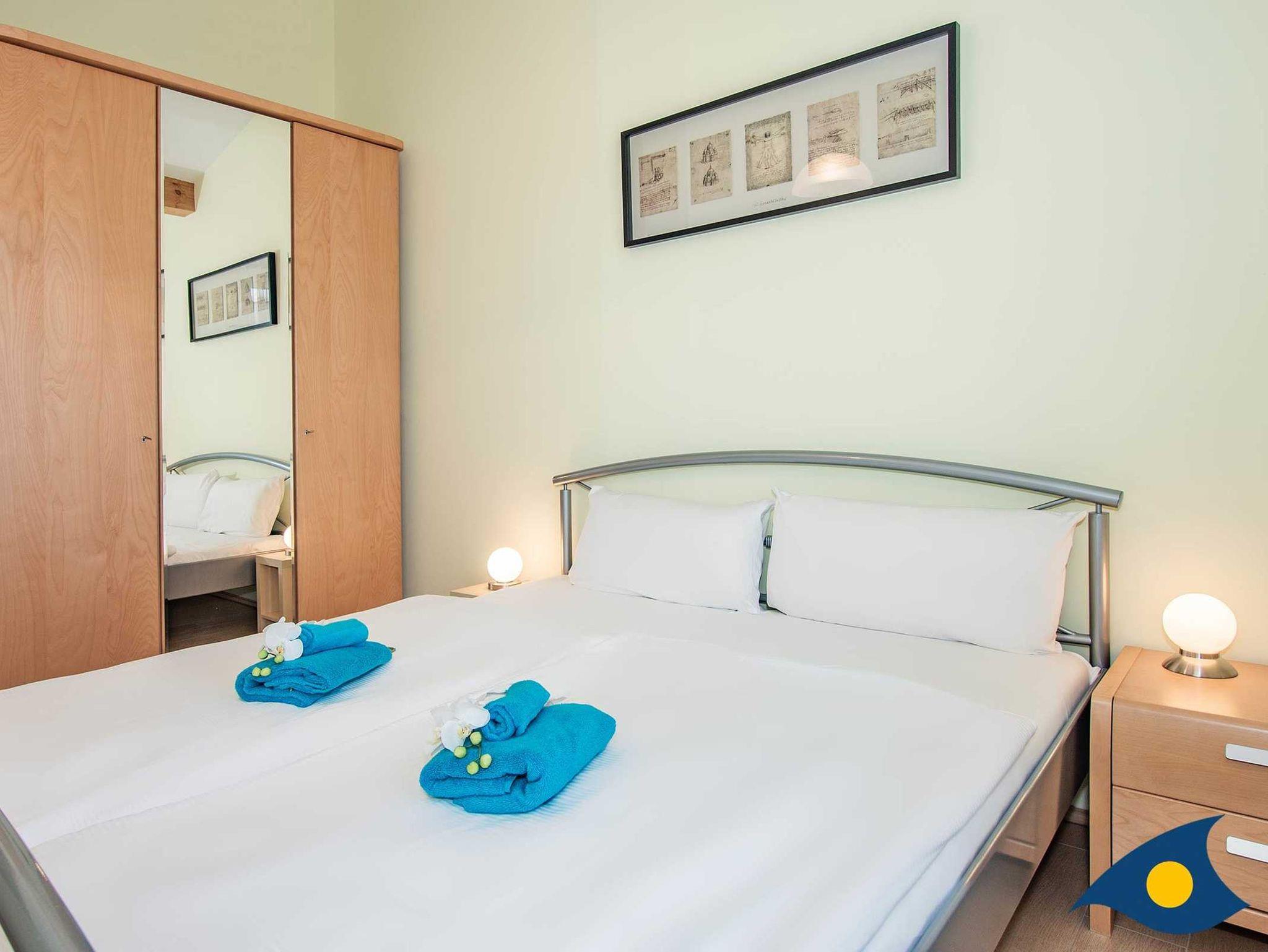 In beiden Schlafzimmern finden Sie gemütliche Doppelbetten und ausreichend Stauraum für Ihre Urlaubsutensilien oder die Unterbringung von Souvenirs. Die Fenster des Schlafzimmers sind mit Insektenschutzgittern versehen.