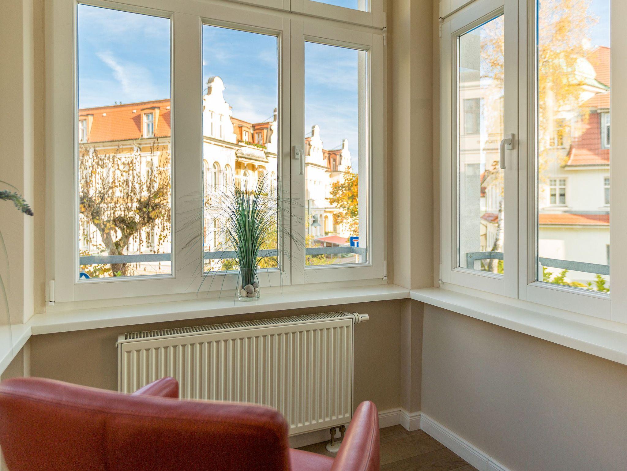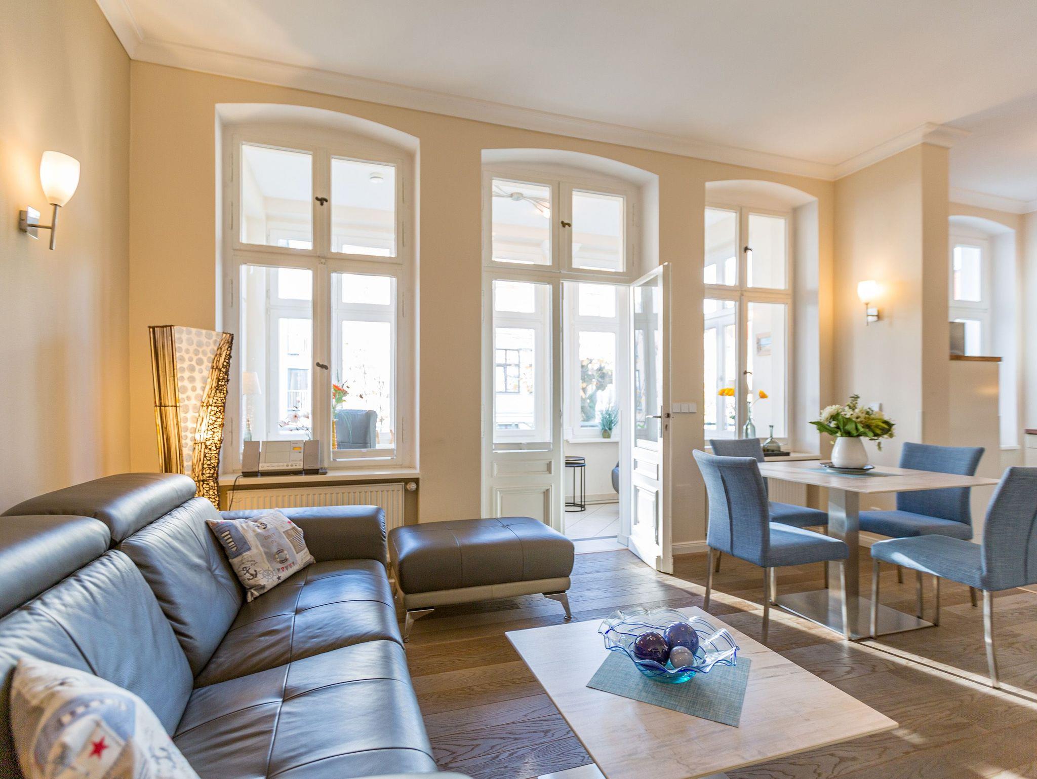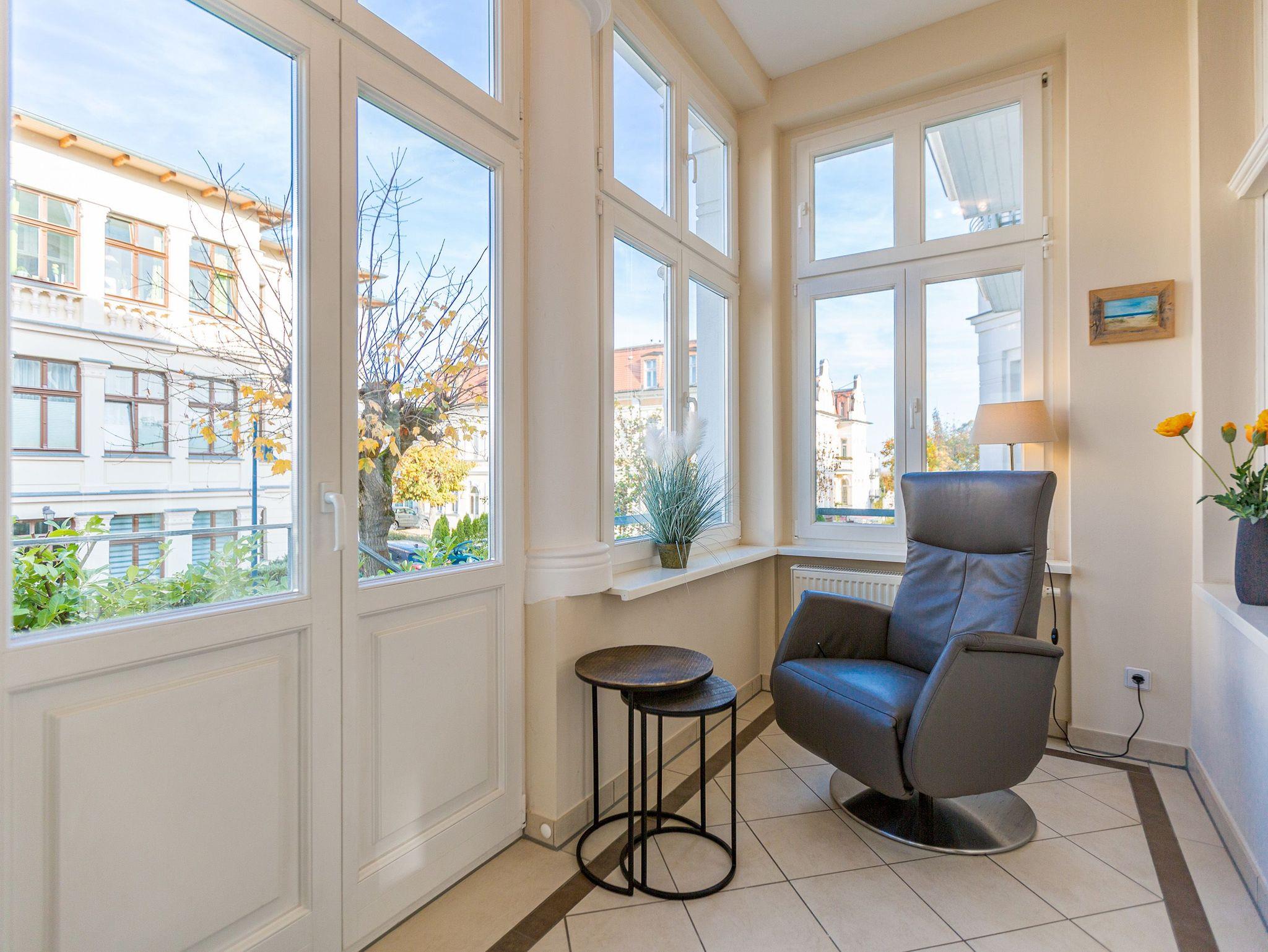 Genießen Sie modernen Komfort und stilvolle Ausstattung im Schloss am Meer, nur 80 m vom Strand in Ahlbeck entfernt.