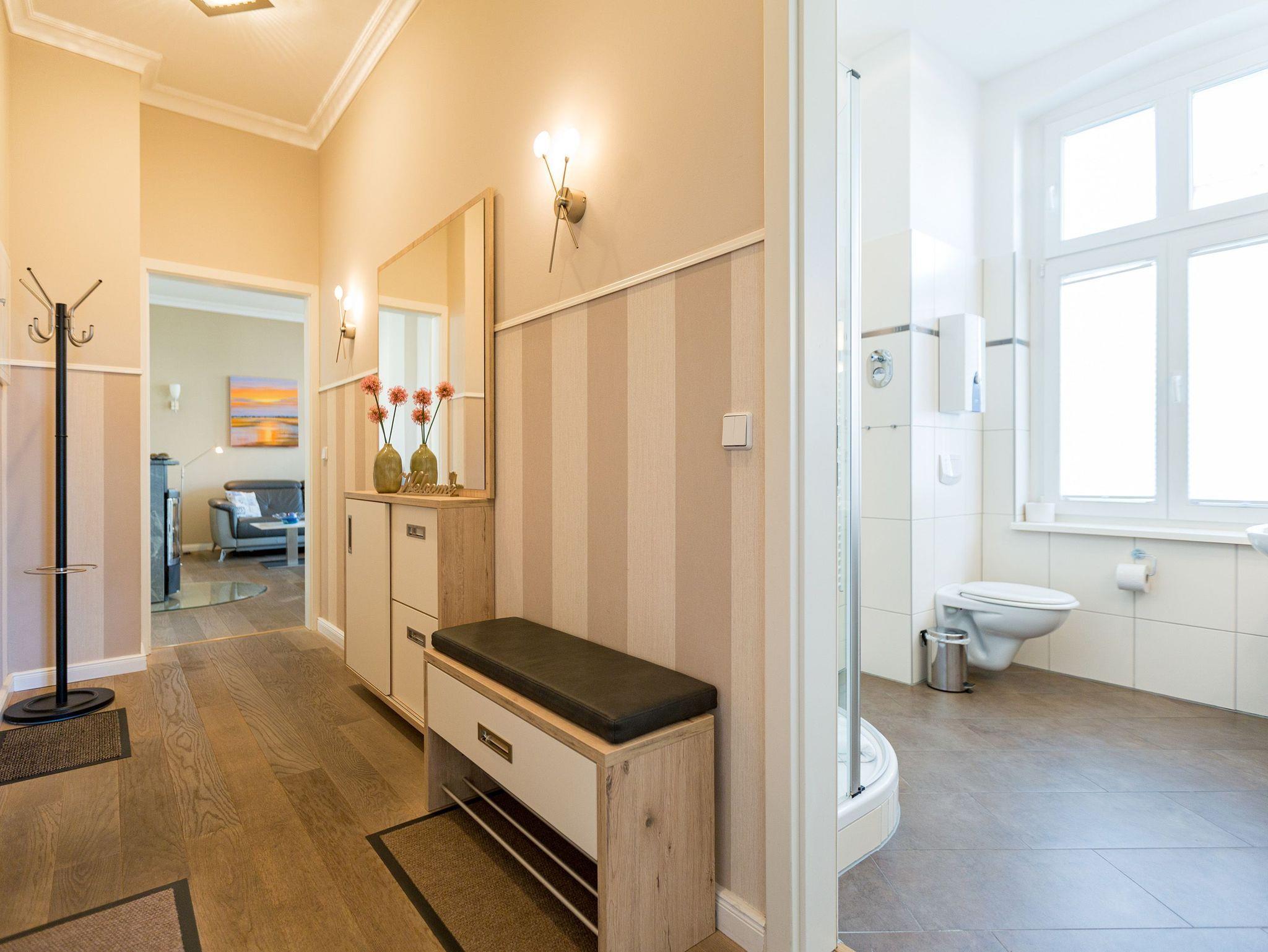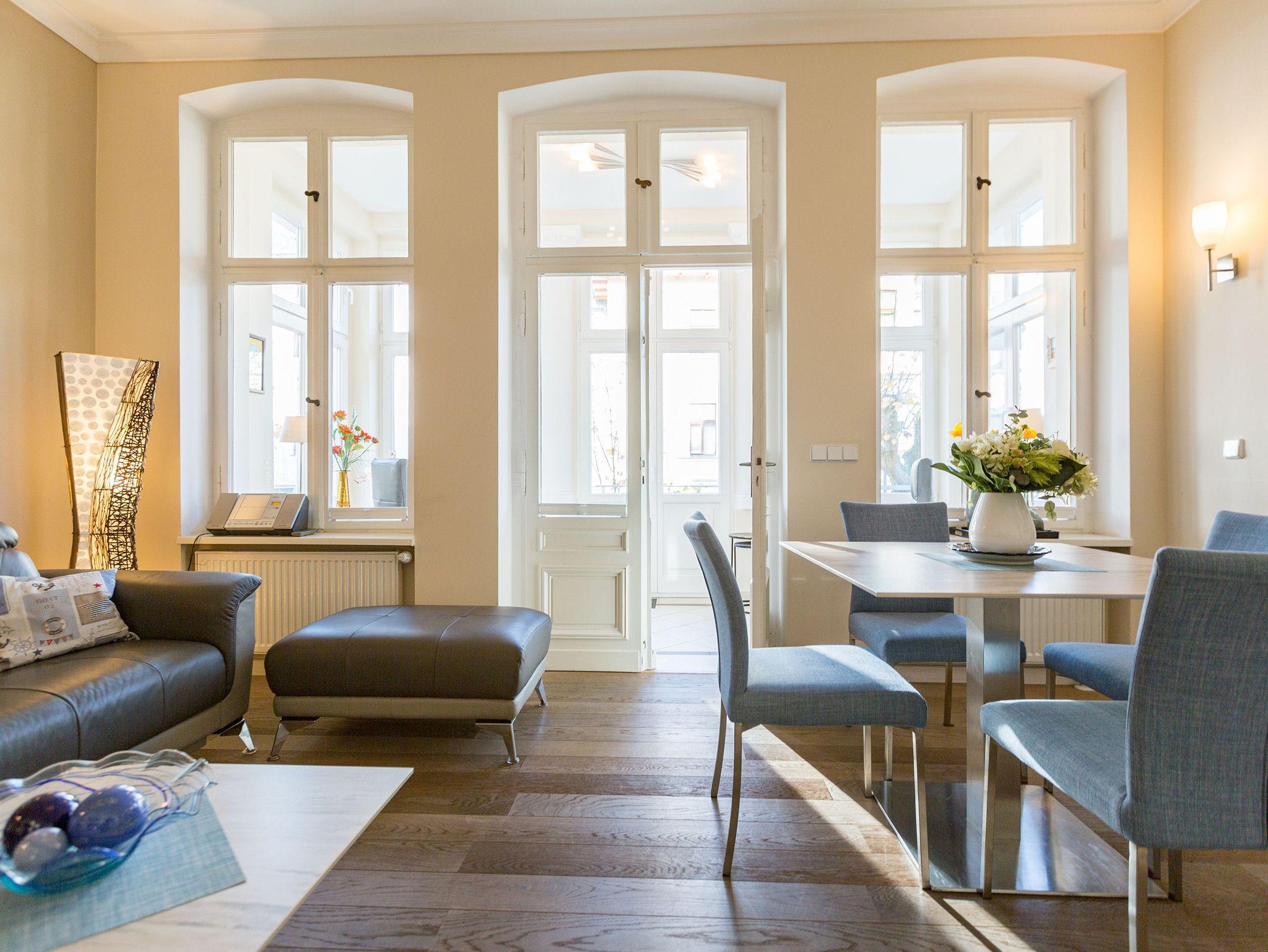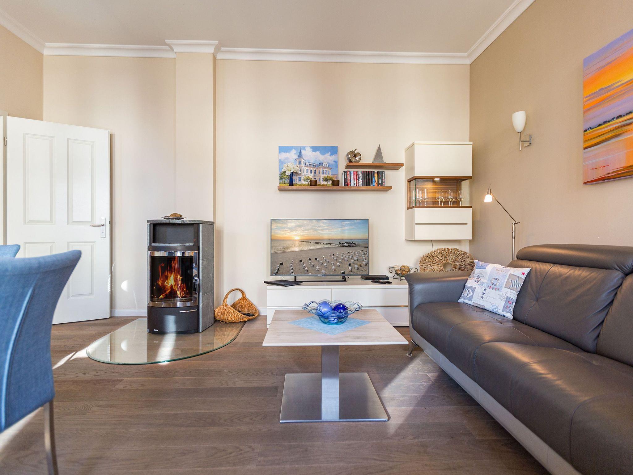 Modernes Apartment Schloss am Meer in Ahlbeck, 80 m vom Strand, mit Kamin, zwei Terrassen und kostenfreiem WLAN.