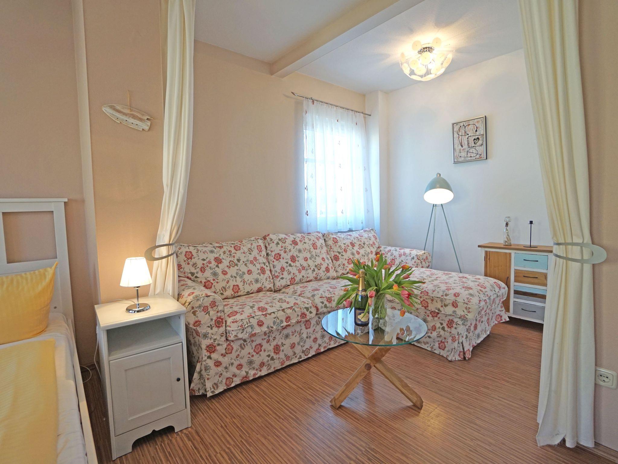 Gemütliche 1,5-Zimmerwohnung in Ahlbeck mit Garten, Parkplatz und Nähe zum Strand, ideal für erholsamen Ostseeurlaub.